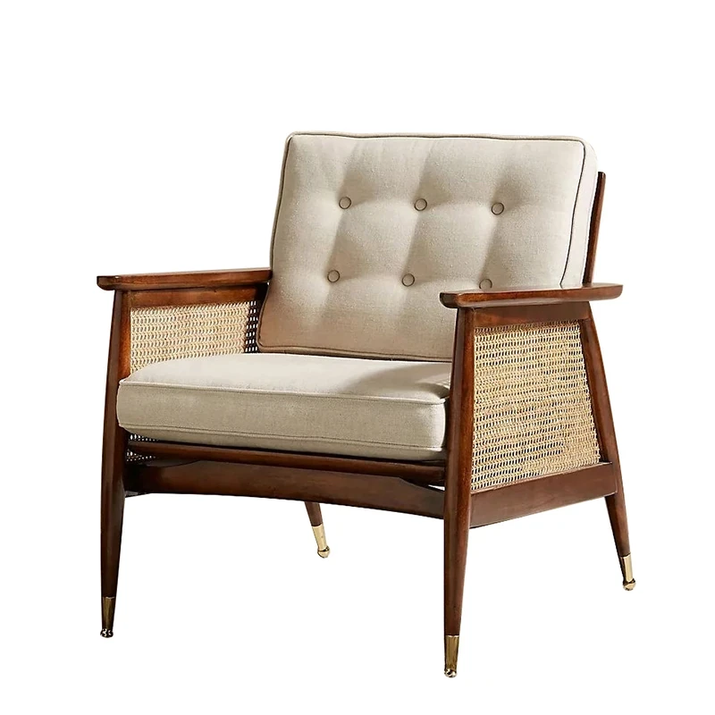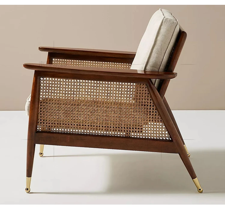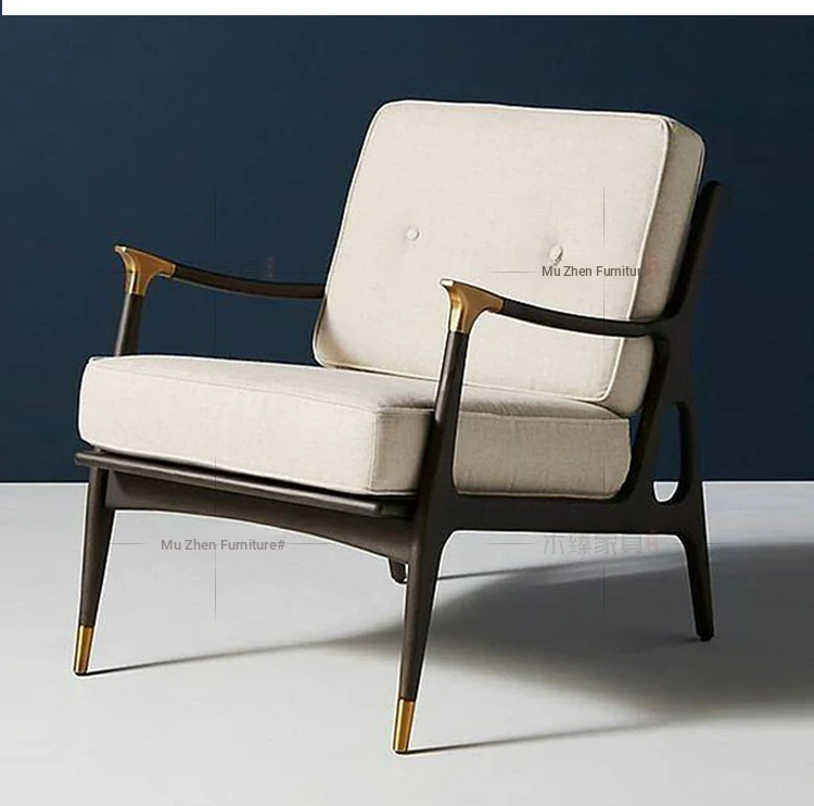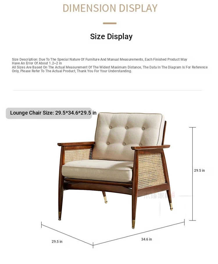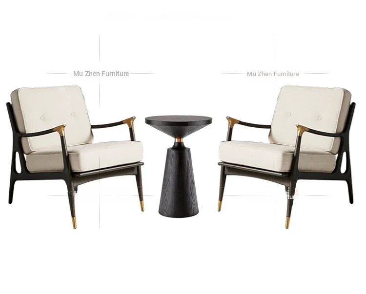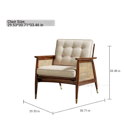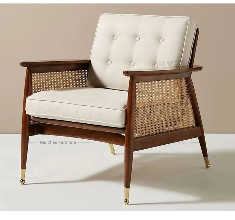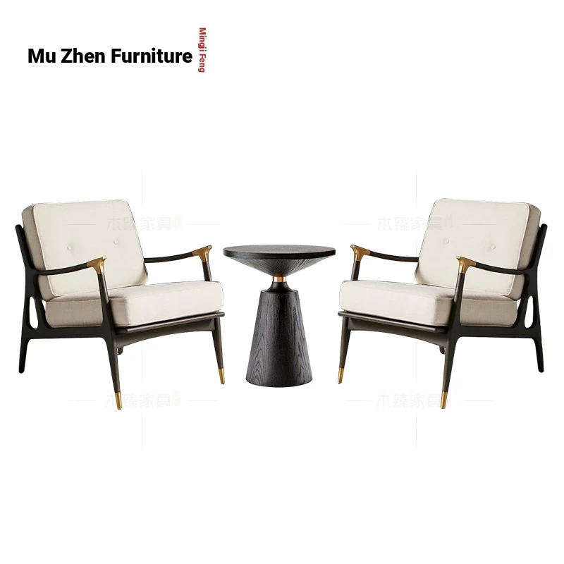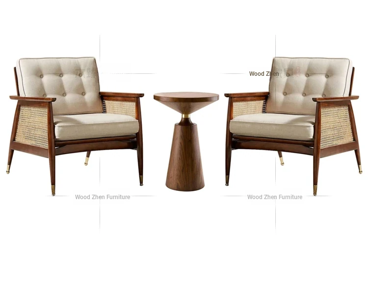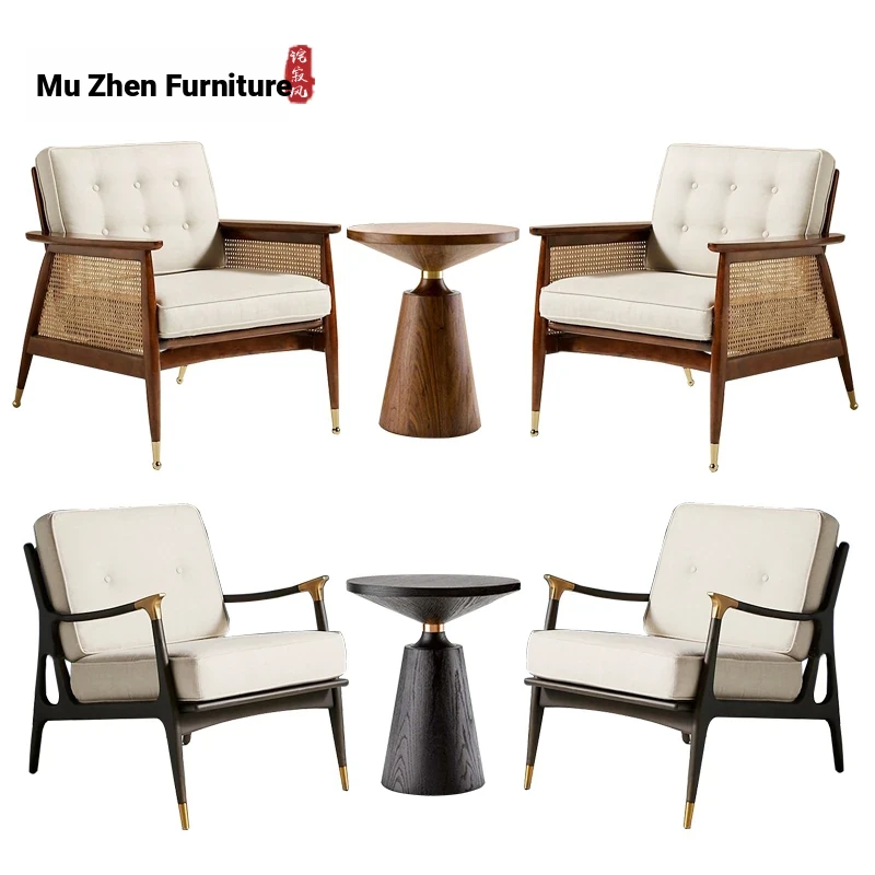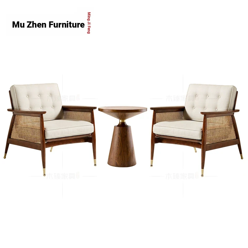 New Chinese Style Solid Wood Sofa Chair Set - 3-Piece Wabi-Sabi Rattan Lounge Chairs for Hotels and Clubs - Natural Wood Single Armchair
