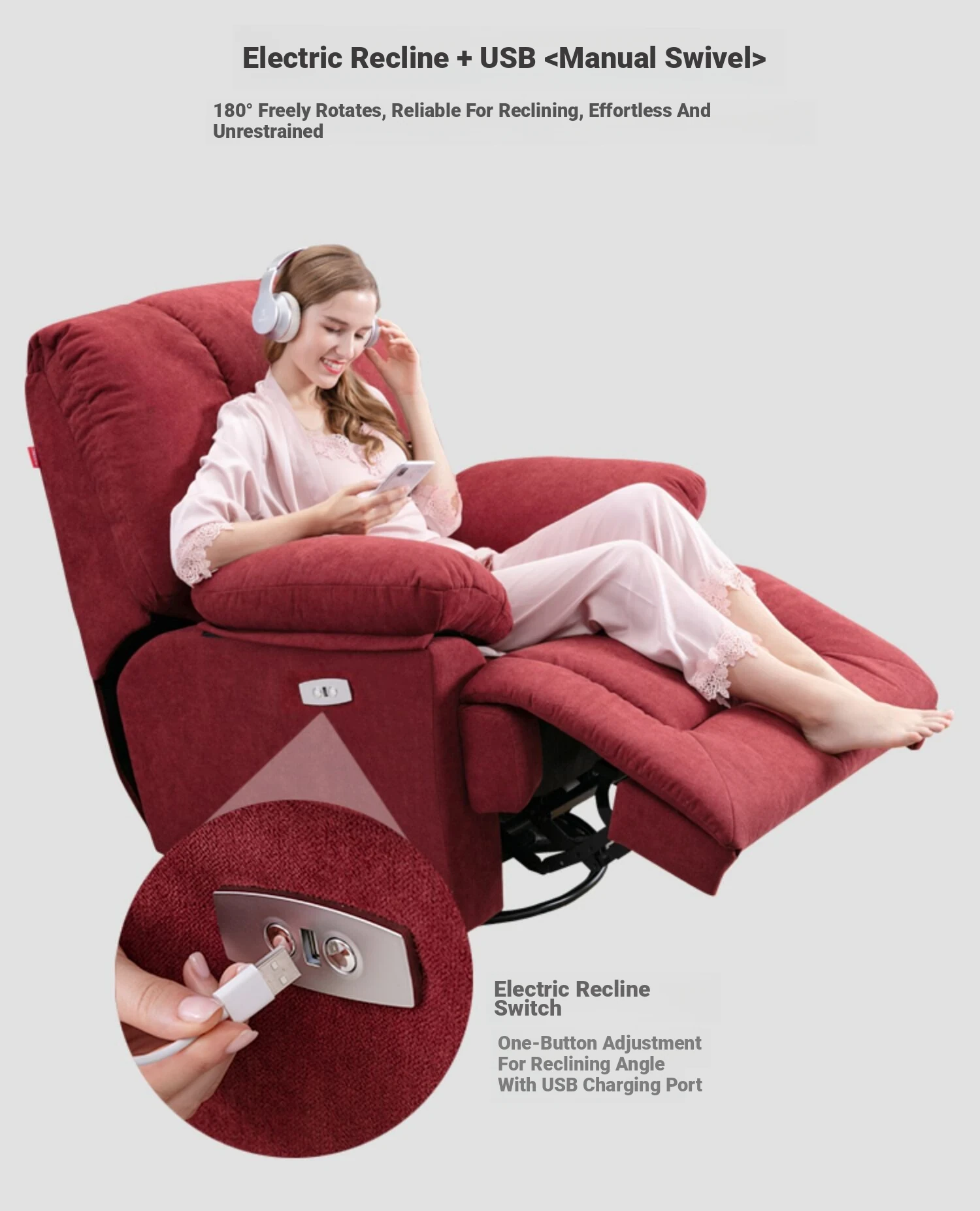 New Luxury European Style Electric Reclining Sofa - Versatile Fabric and Leather Single Seat for Home Theater, Ideal for Relaxation and Leisure!