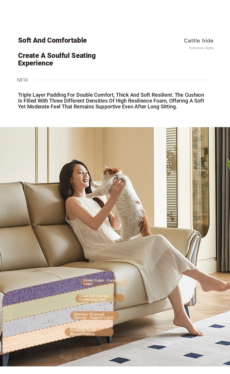 111.42 in three-person dual-function [Upgraded Version] thickened top layer cowhide