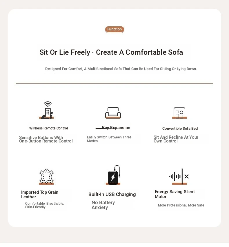 New Modern Minimalist Functional Sofa - Creamy Leather Wall-Mounted Space Capsule Electric Sofa for Living Room