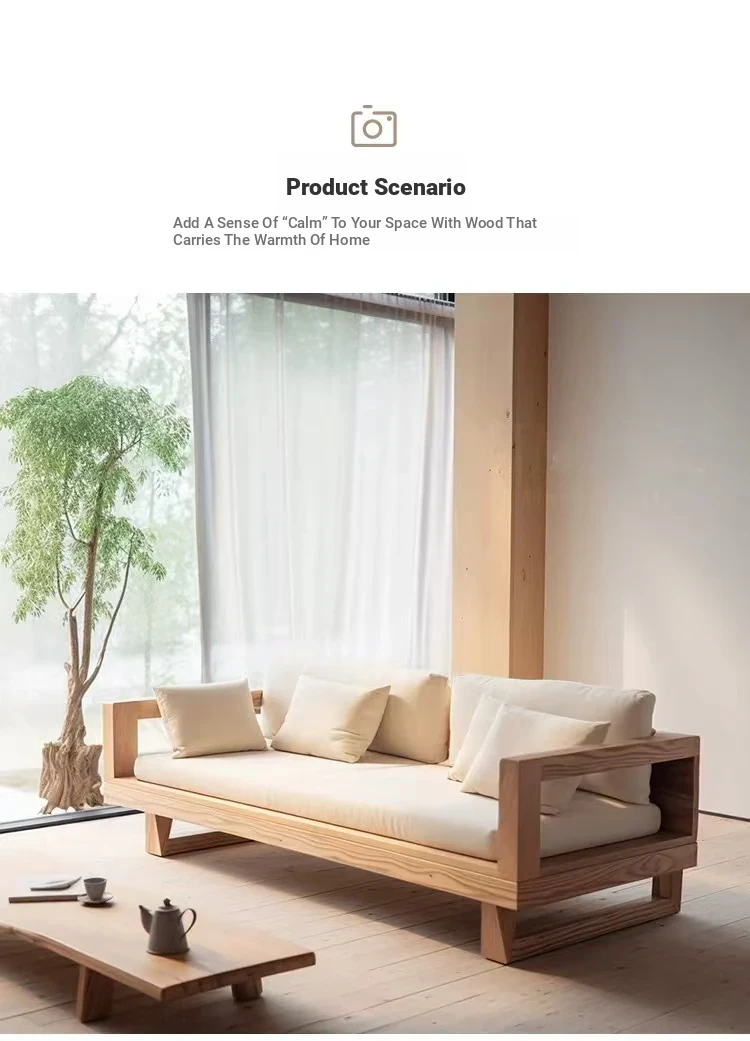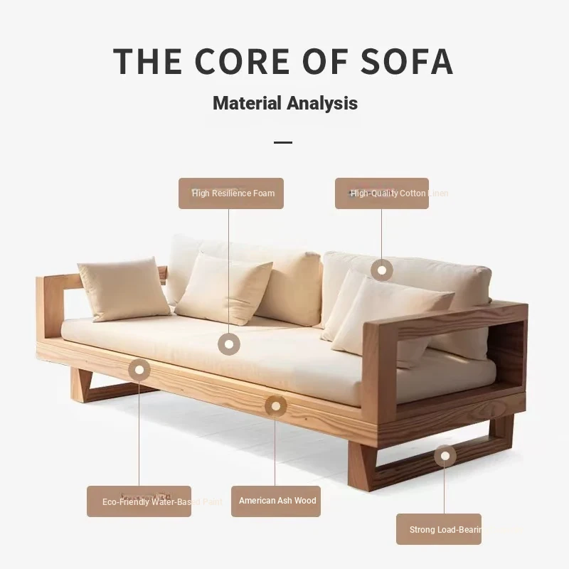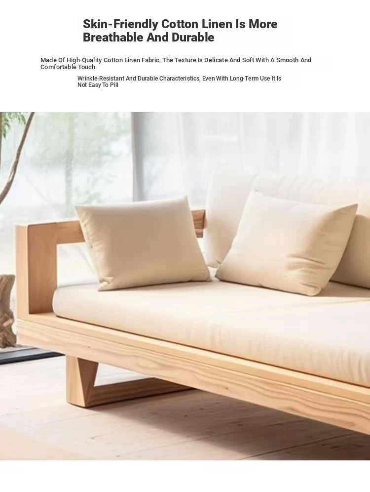 Nordic Japanese Style Solid Wood Sofa for Small Living Rooms - Minimalist Modern Ash Wood, Removable and Washable, Perfect for Year-Round Comfort