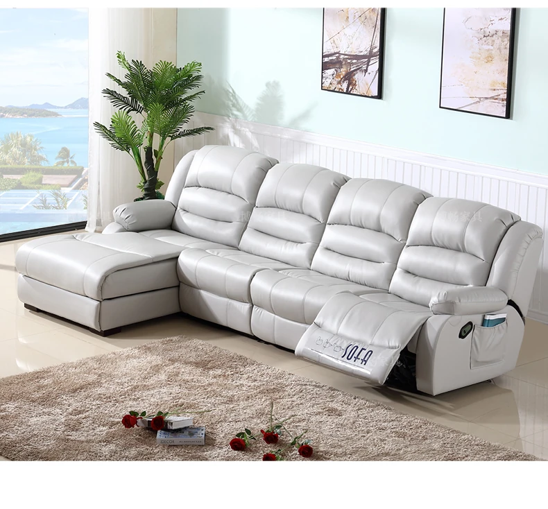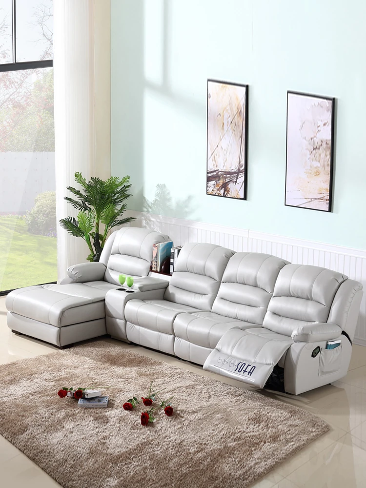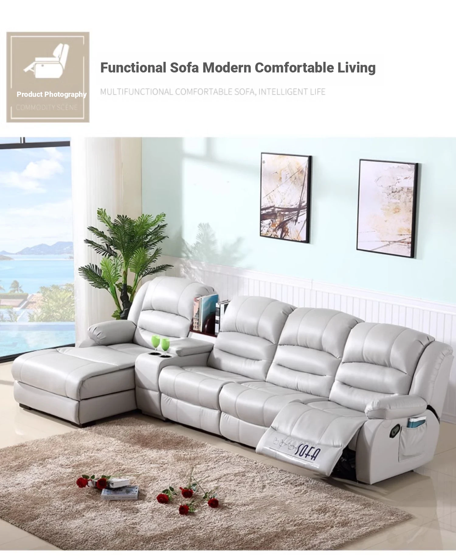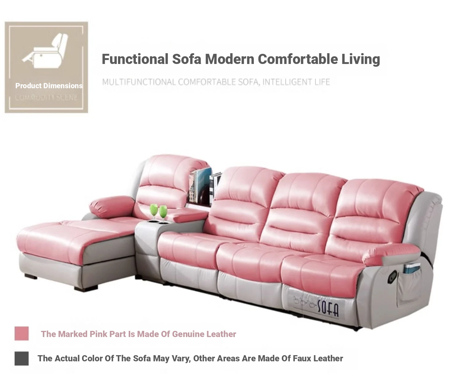 Premium Genuine Leather Corner Sofa with Modern Minimalist Design - Luxurious Space-Saving Electric Chaise Lounge with Top-Grain Cowhide, Perfect for Your Living Room.