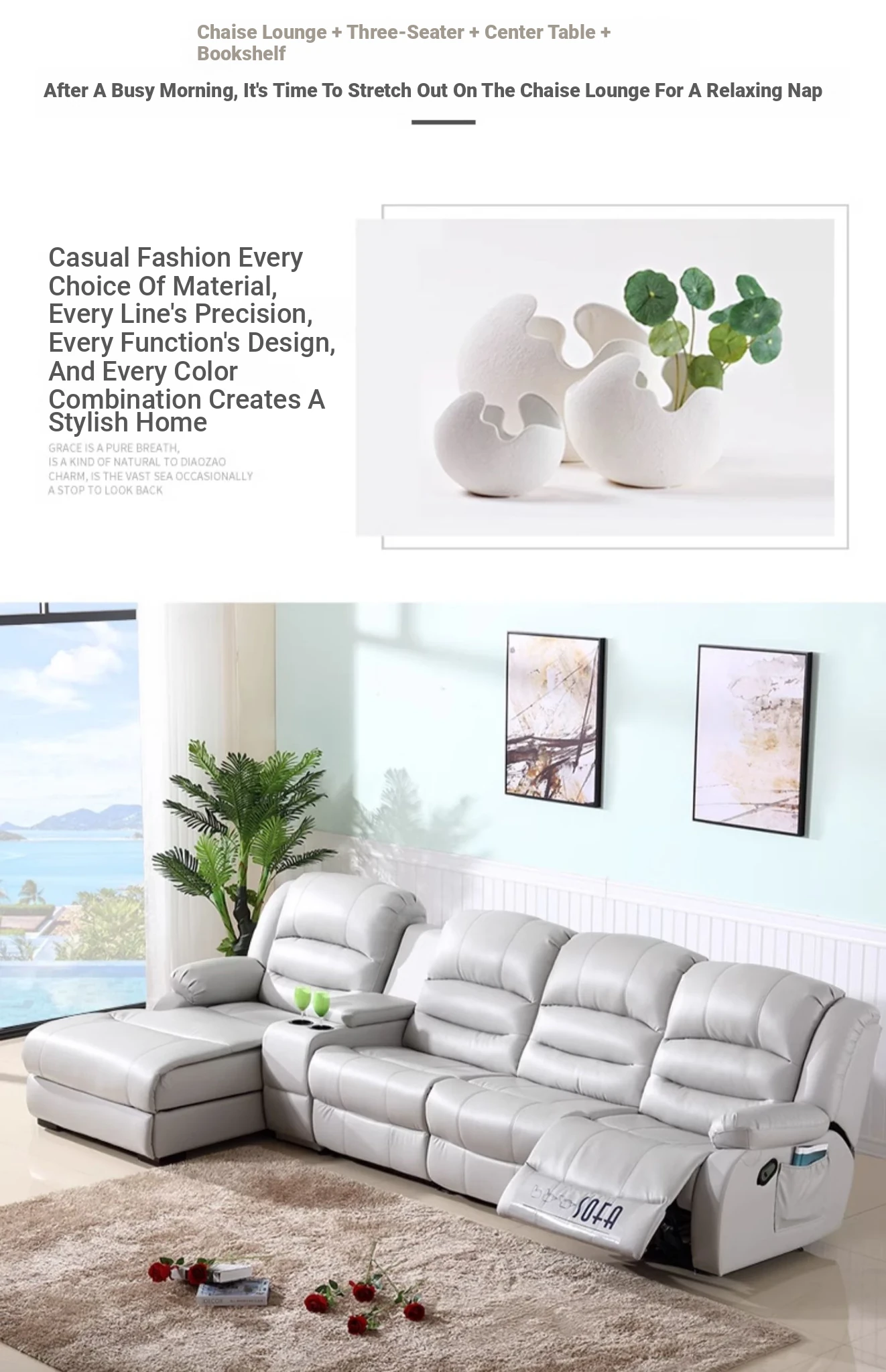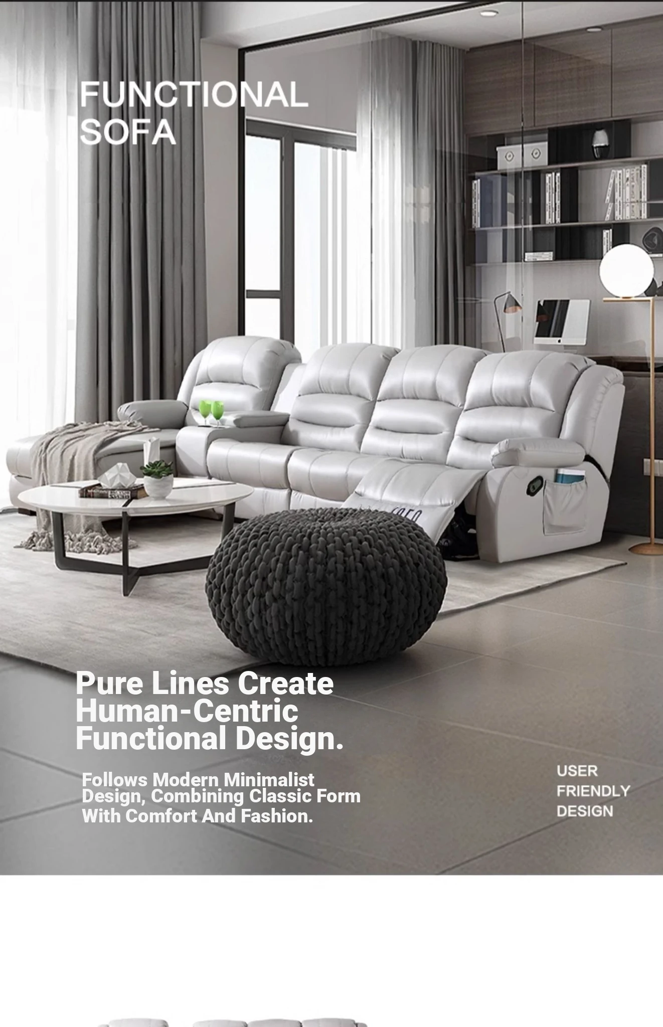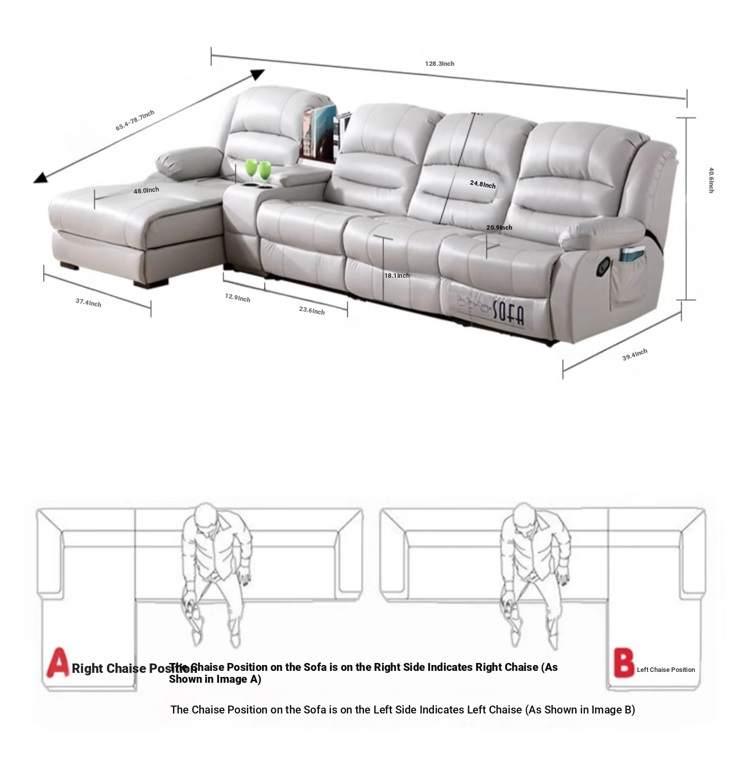 Premium Genuine Leather Corner Sofa with Modern Minimalist Design - Luxurious Space-Saving Electric Chaise Lounge with Top-Grain Cowhide, Perfect for Your Living Room.