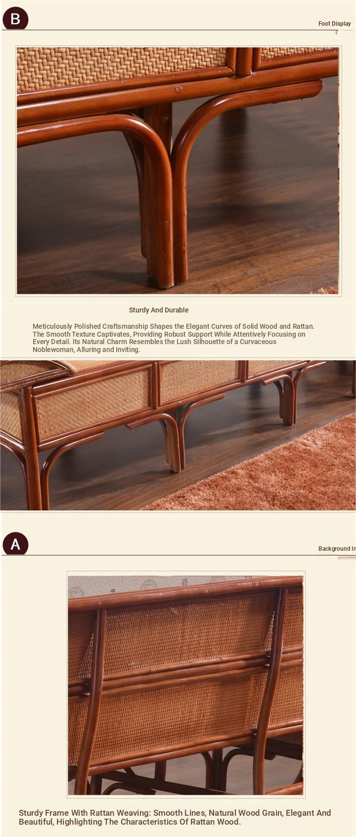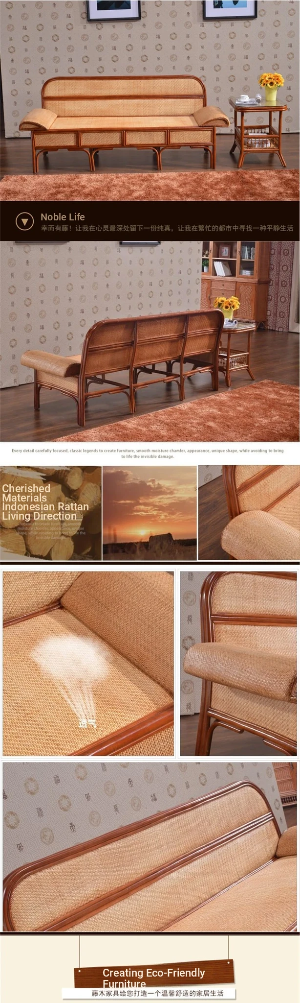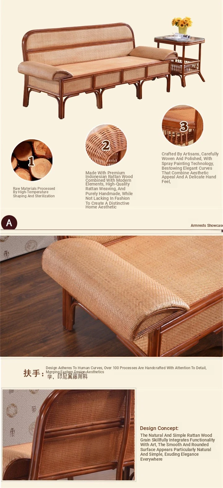 Rattan Daybed Sofa - Traditional Chinese Rattan Furniture for Three, Perfect for Relaxation and Lounging, Stylish Chaise Lounge for Your Home or Garden