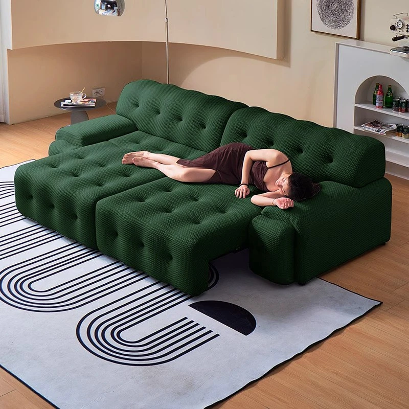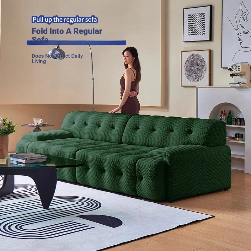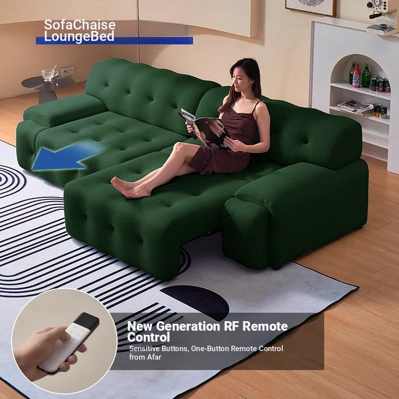 Rockfort Electric Sofa Bed - Versatile Living Room Furniture with Space-Saving Design for Small Apartments, featuring Retractable Functionality and Stylish Green Fabric Upholstery.