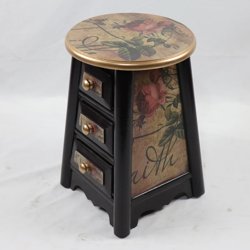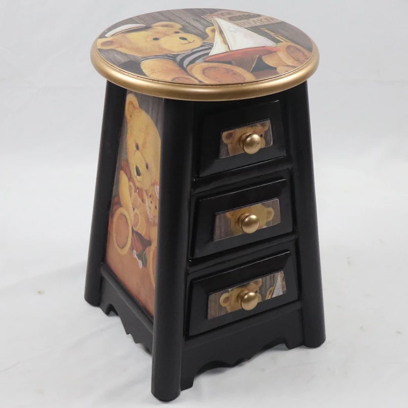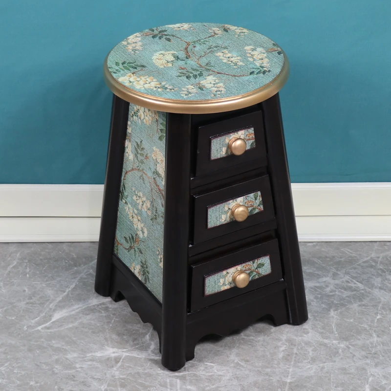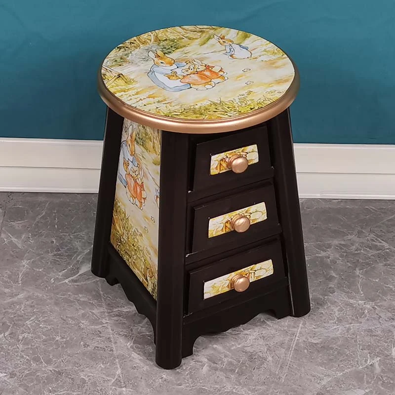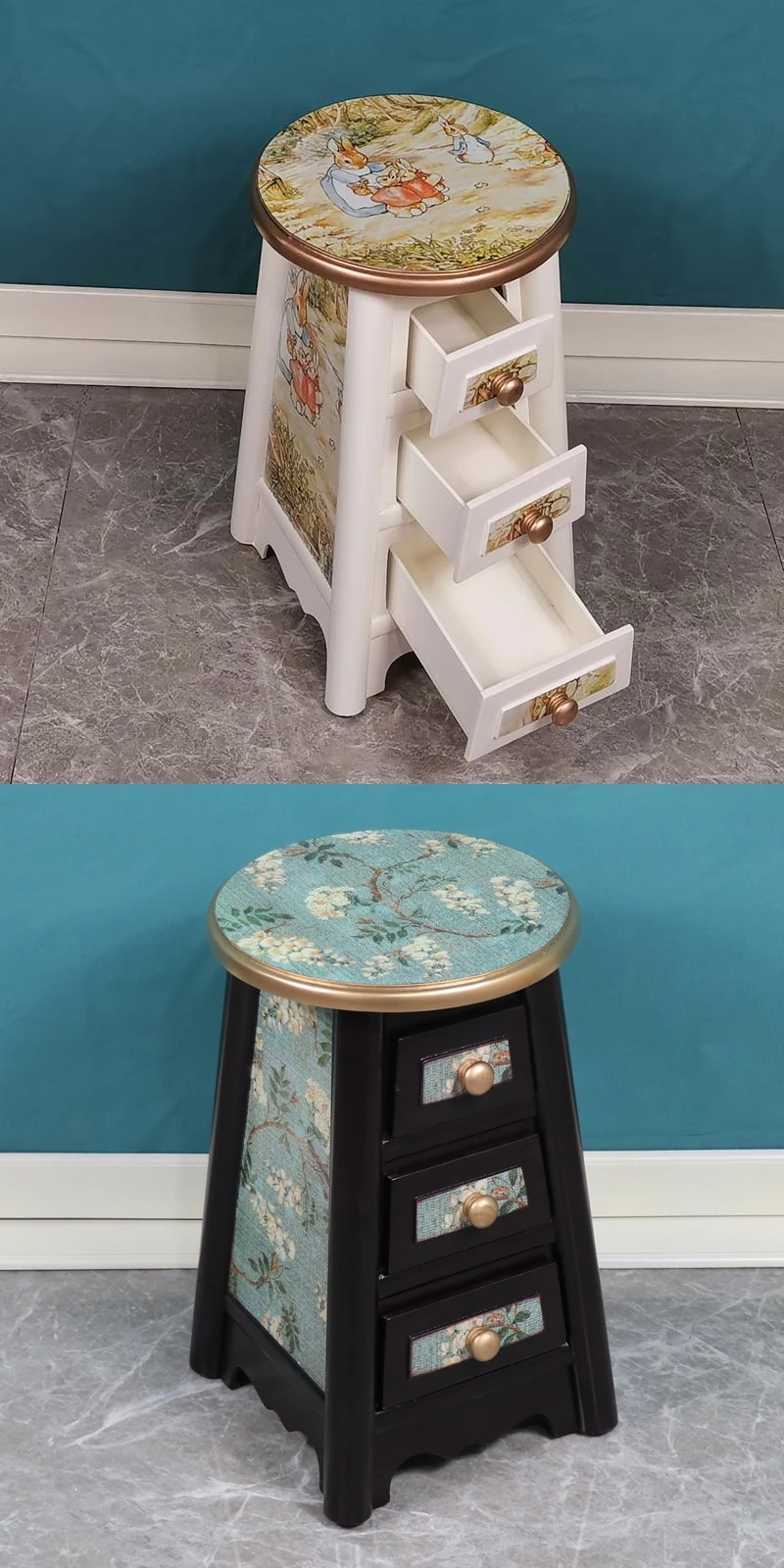 Stylish Minimalist Bedroom Vanity Stool - Creative Solid Wood Small Round Stool with Storage and Three Drawers for Adults, Perfect for Home Use