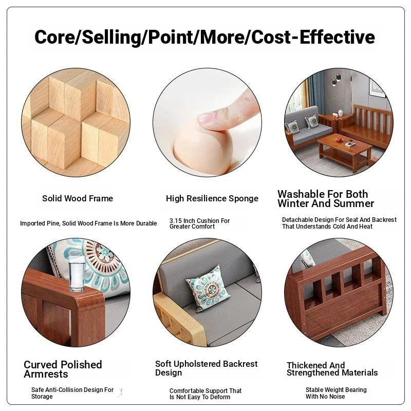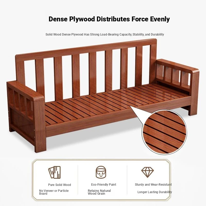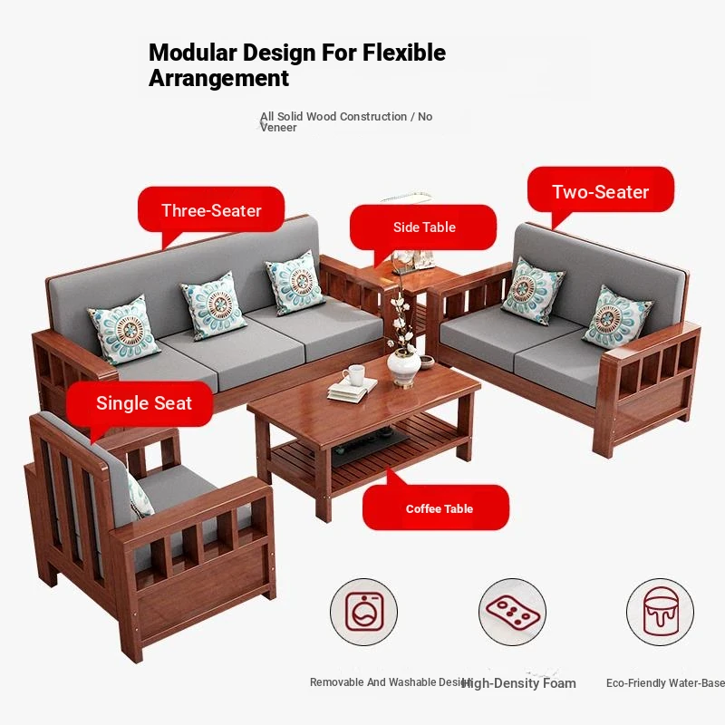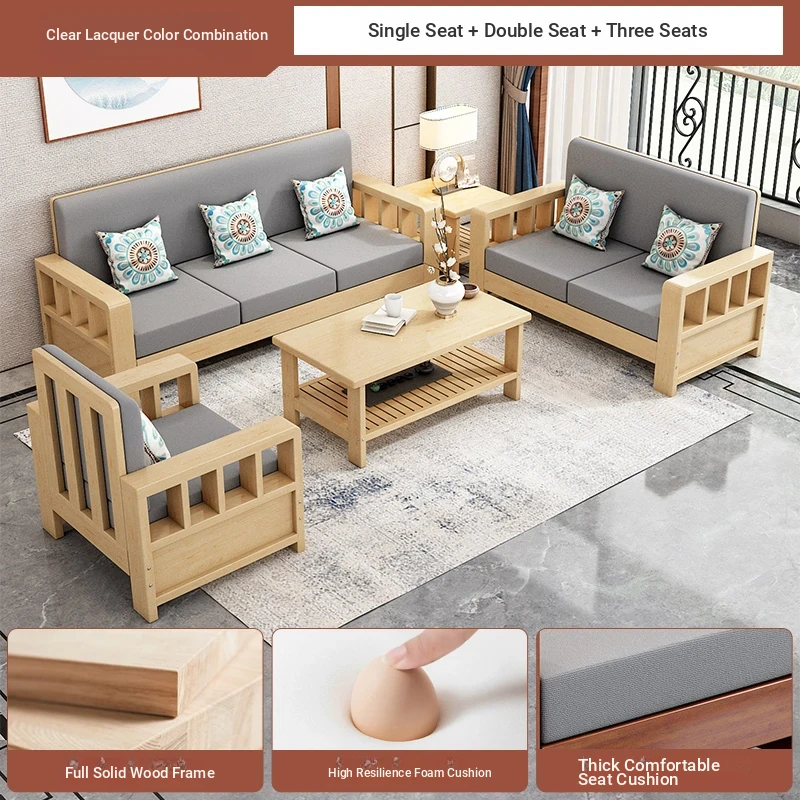 "Stylish New Chinese-Style Solid Wood Sofa Set for Small Living Rooms - 3-Seat Combination 0032024, Perfect for Cozy Farmhouse Aesthetics"