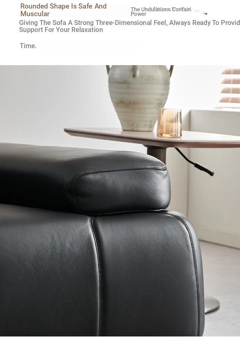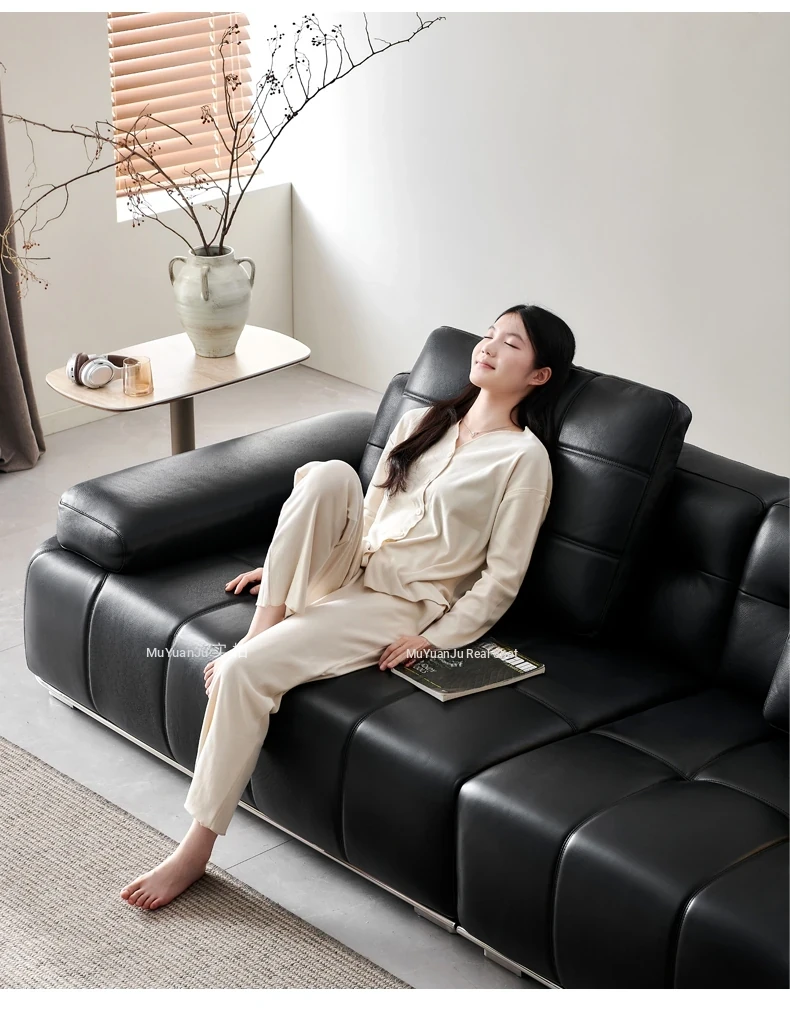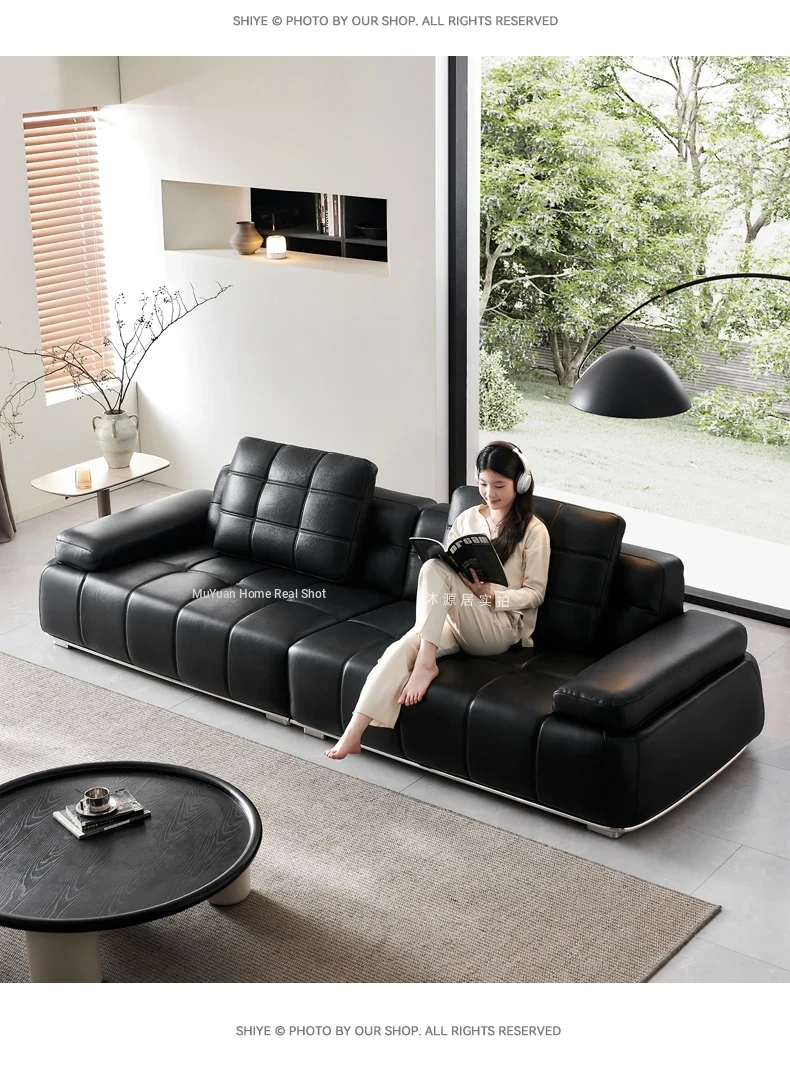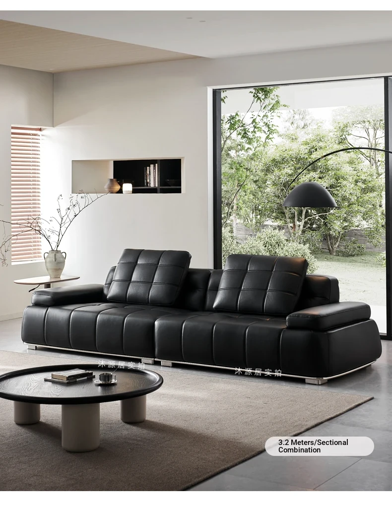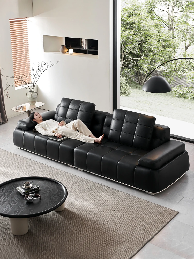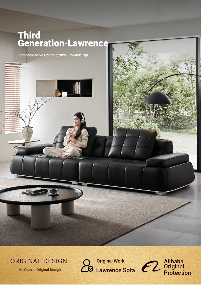 Third Generation Lawrence Genuine Leather Sofa - Italian Designer, Stylish Black High-End 4-Seater for Modern Living Rooms