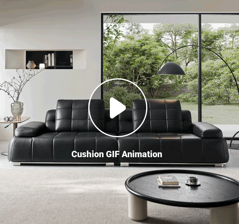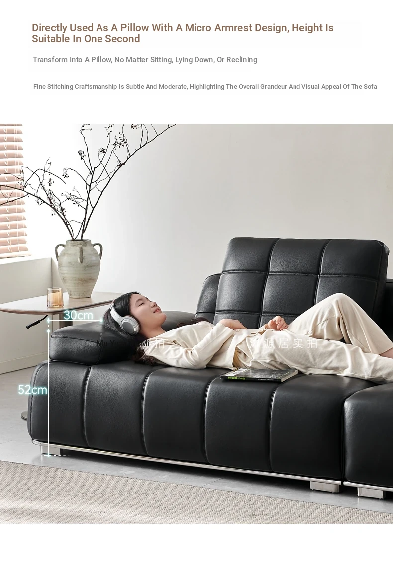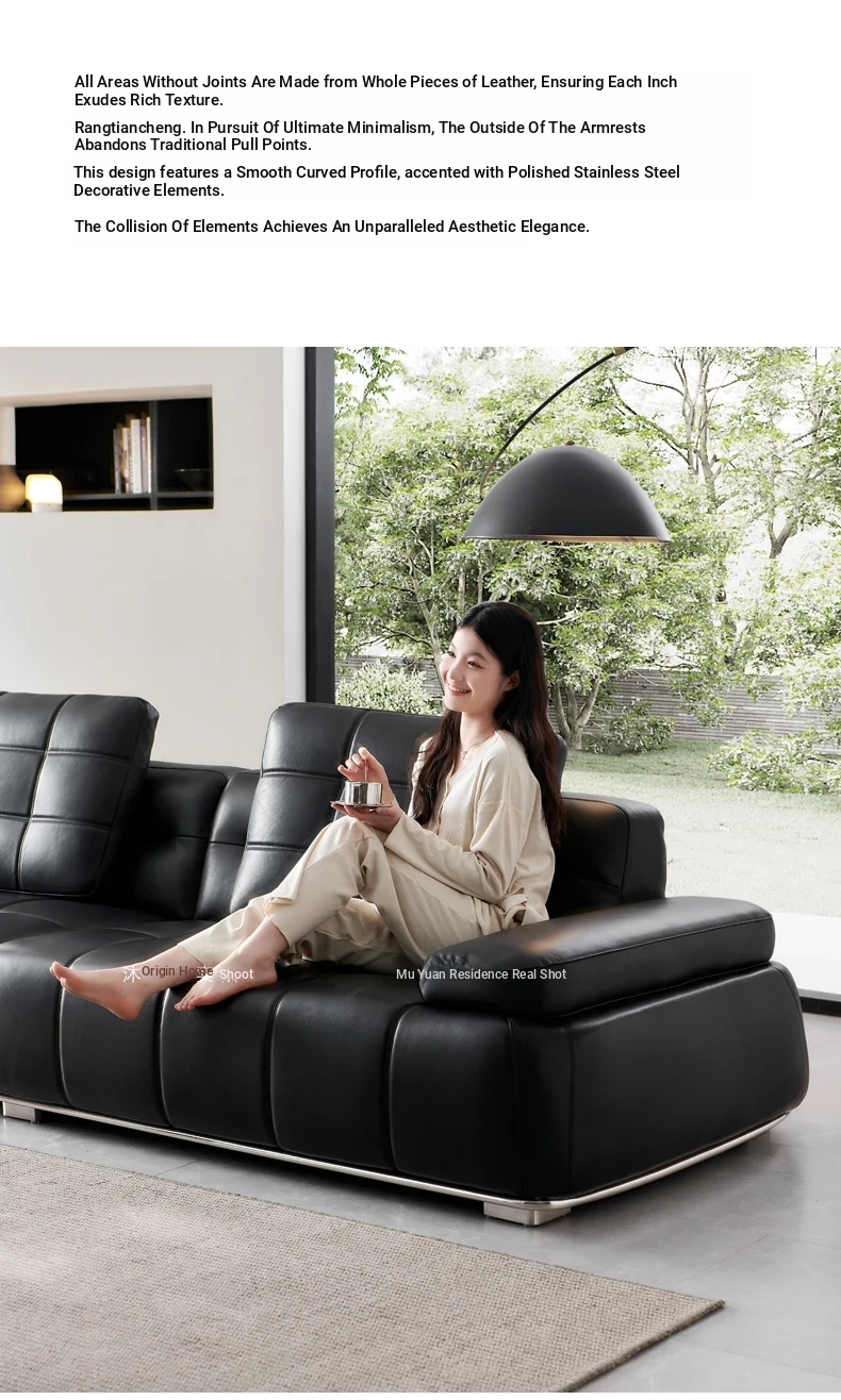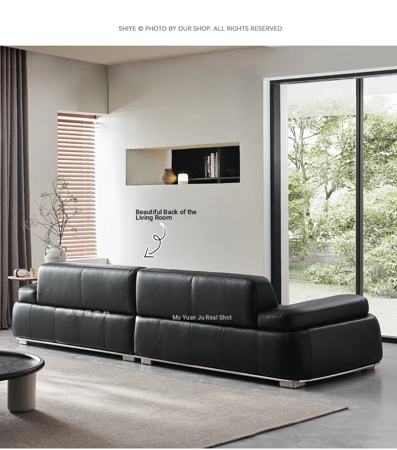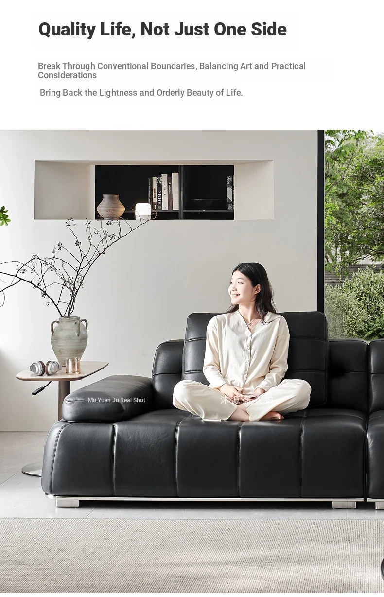 Third Generation Lawrence Genuine Leather Sofa - Italian Designer, Stylish Black High-End 4-Seater for Modern Living Rooms