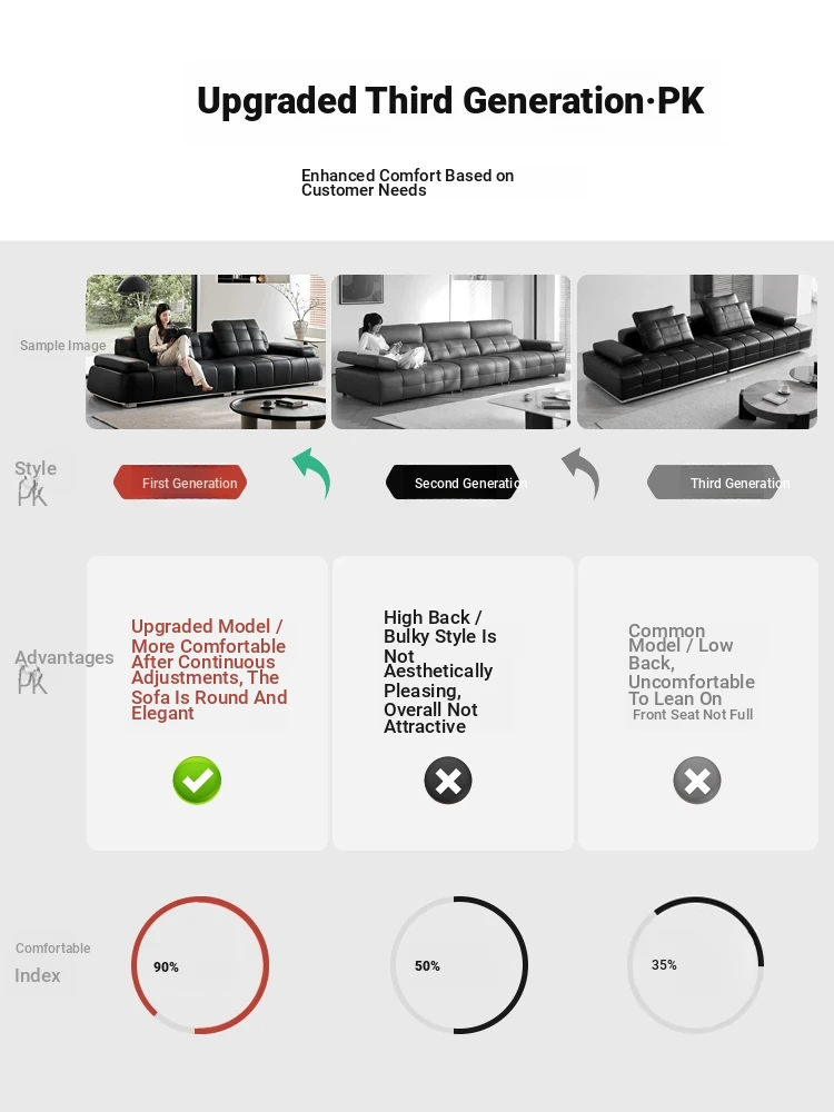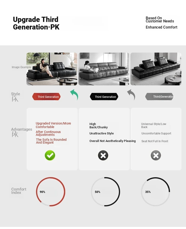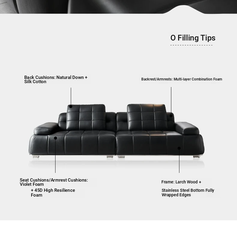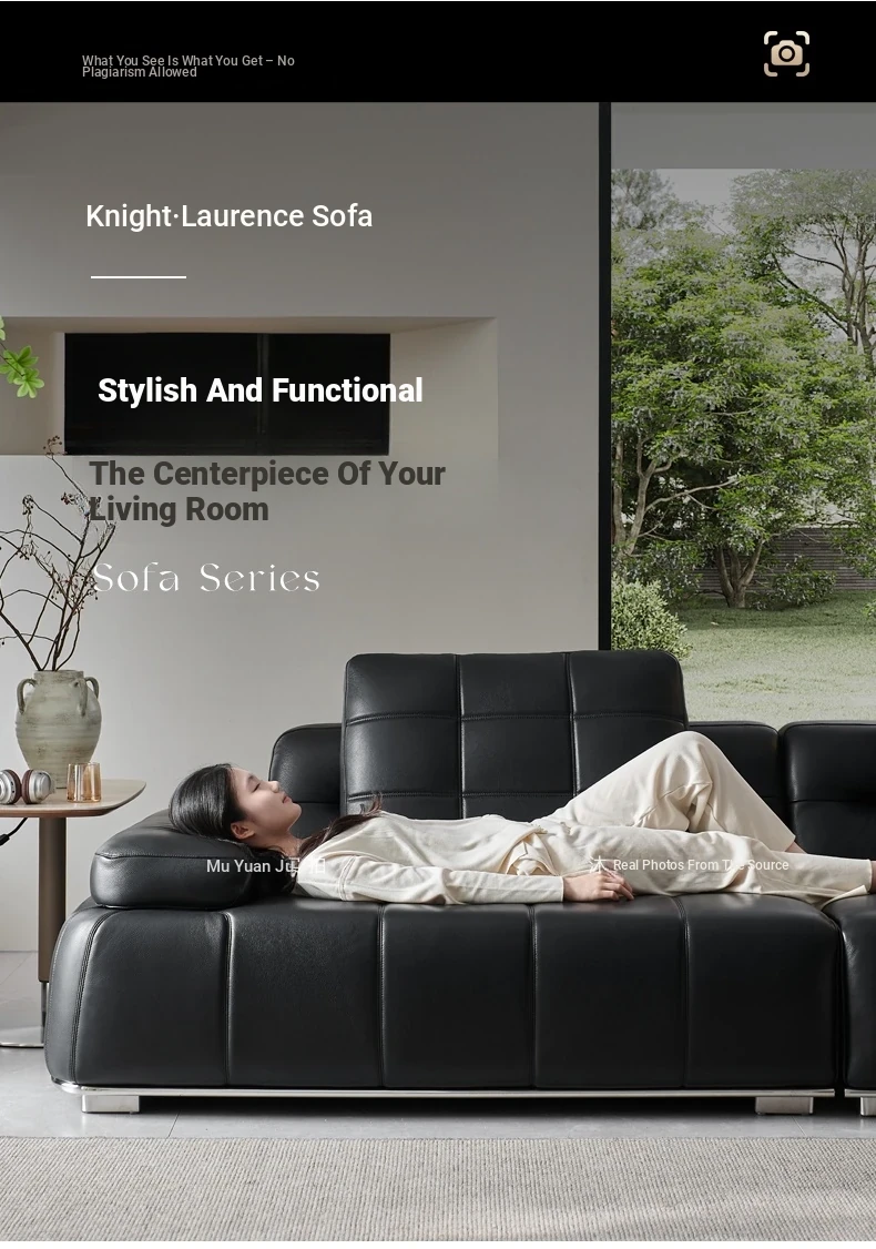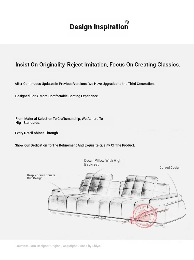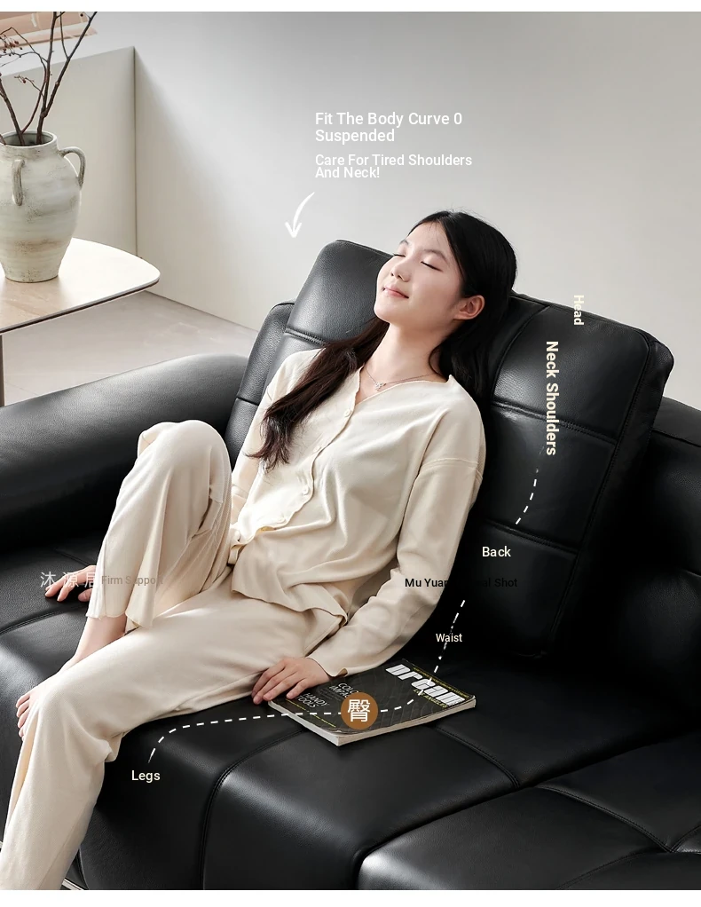 Third Generation Lawrence Genuine Leather Sofa - Italian Designer, Stylish Black High-End 4-Seater for Modern Living Rooms