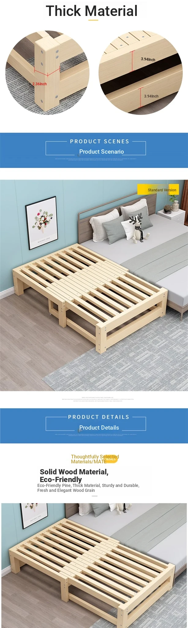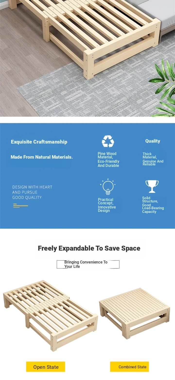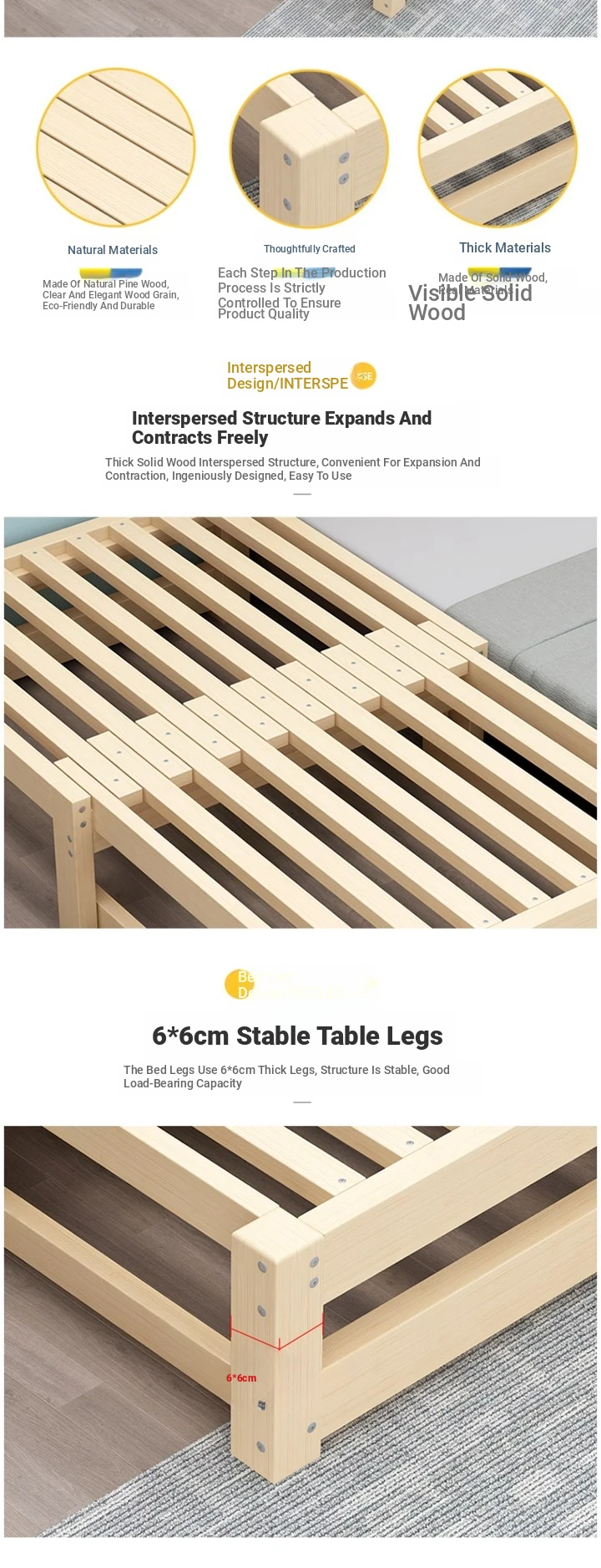 Versatile Folding Solid Wood Sofa Bed - Space-Saving Tatami Expandable Bed for Balconies and Small Bedrooms, Easy Pull-Out Design for Convenient Use