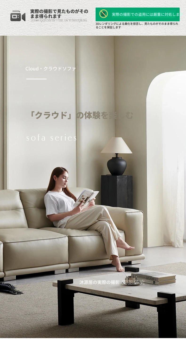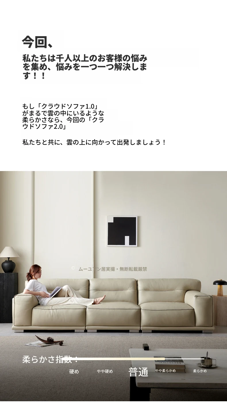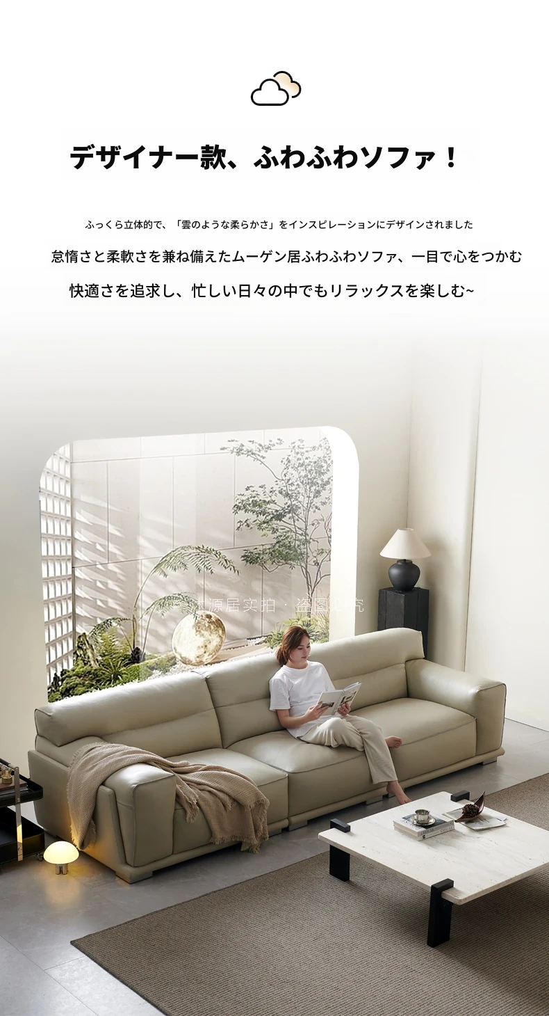 2025年新作!雲のように柔らかい本革ソファ - モダンでシンプル、小さなリビングにぴったりな一体型のトップグレード牛革ソファ。快適さとスタイルを両立させた、あなたのリビングに最適な選択です!
