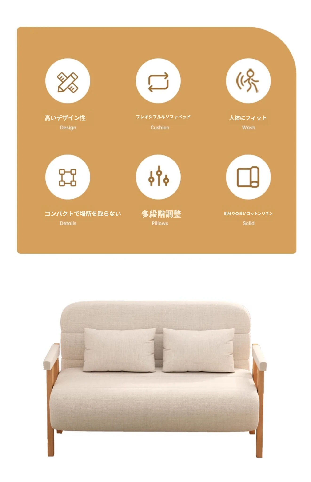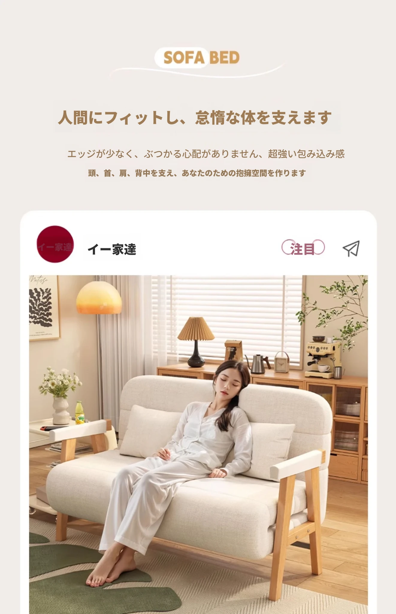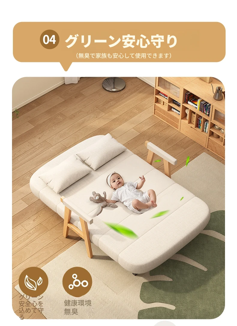 2025年新作!省スペースの実木折りたたみソファベッド - 小さな部屋に最適な一人用、リビングやバルコニーで使える多機能デザイン!快適なひとときをお届けします。