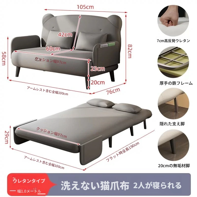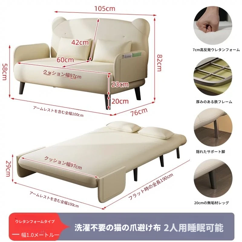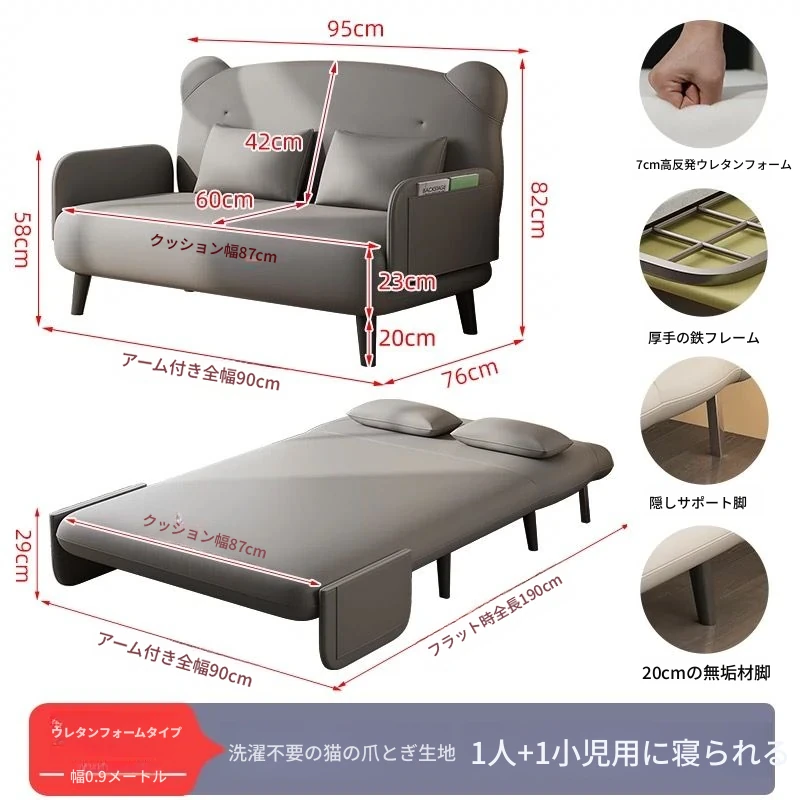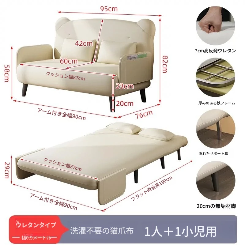 2025年新款!単身用折りたたみ2WAYソファベッド - 小型住宅に最適!バルコニーや子供の昼寝にも使える多機能デザインで、リラックスした時間を提供します。