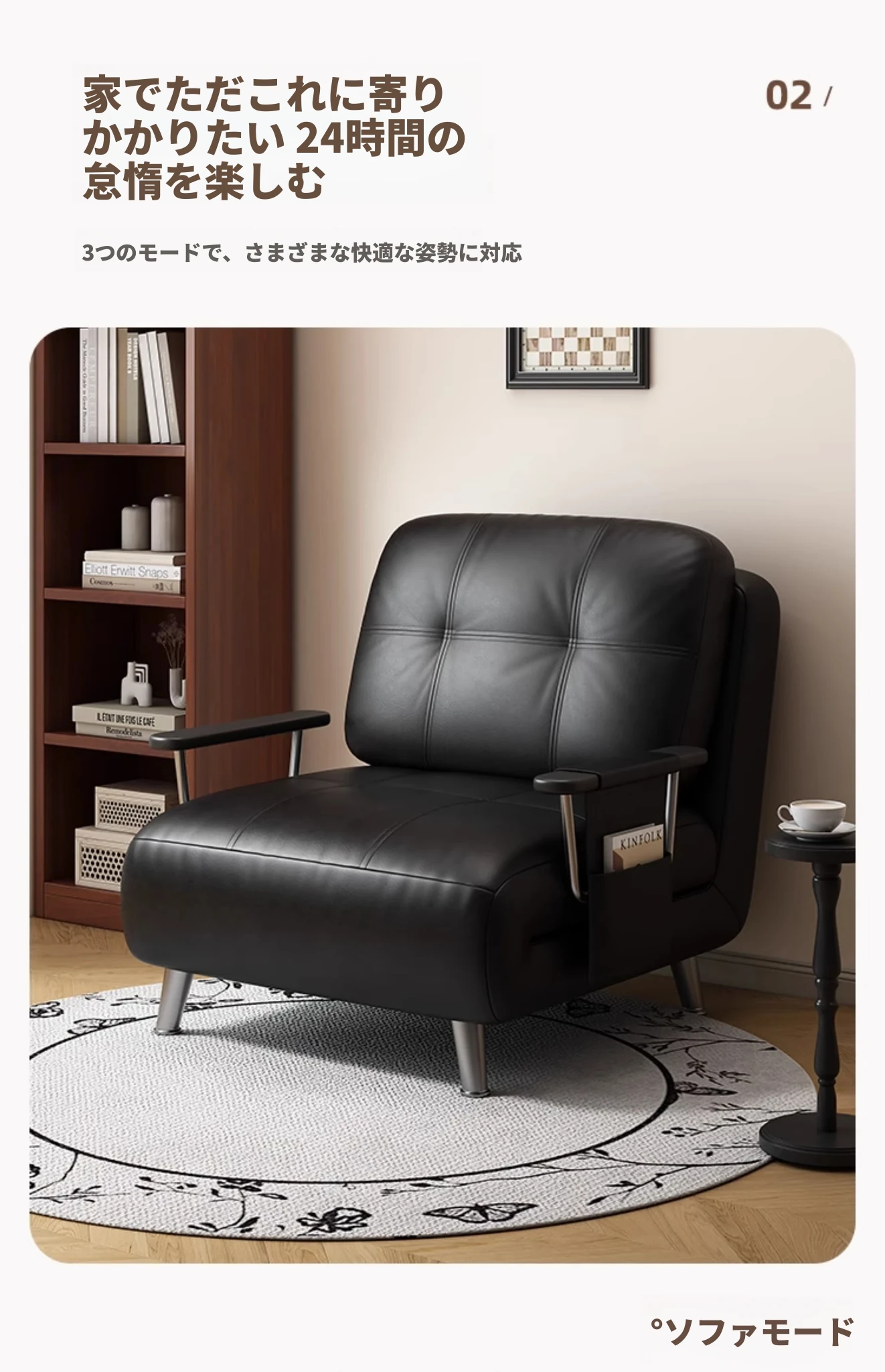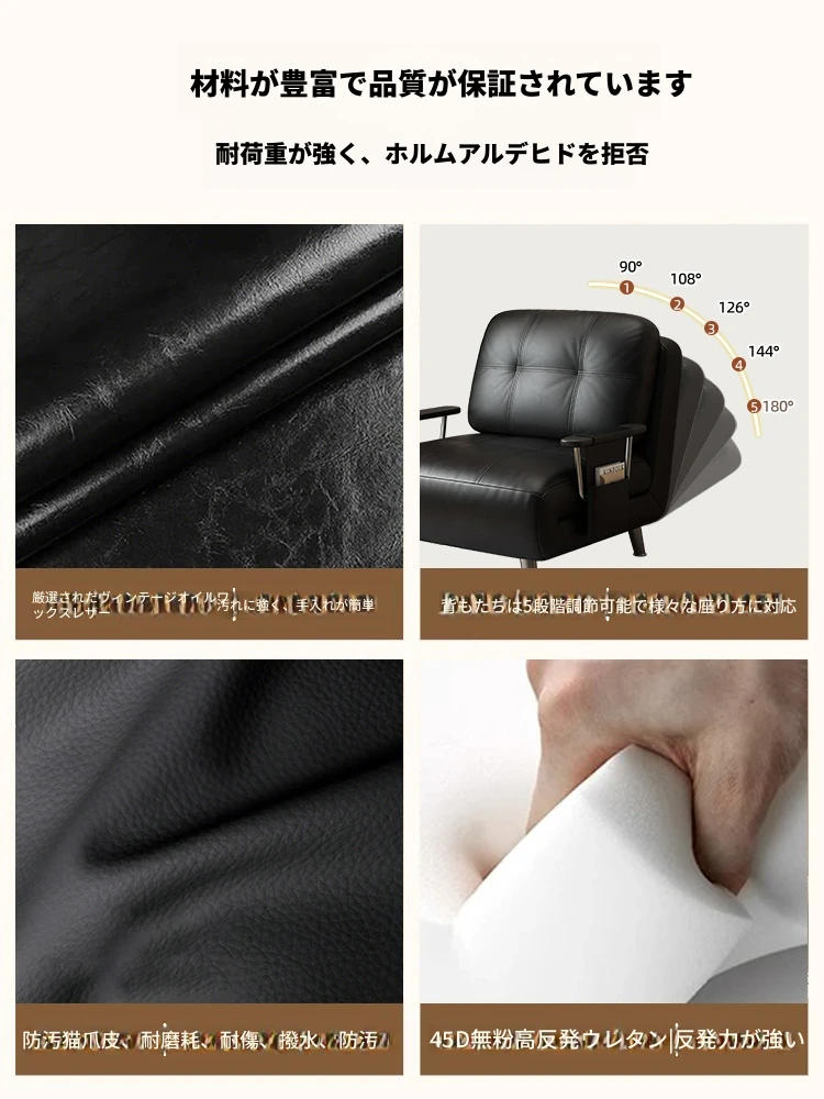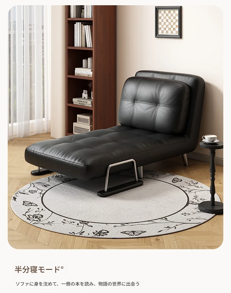 【防汚高級ブラックキャットスクラッチレザー丨天然ラテックス】1.0mソファベッド