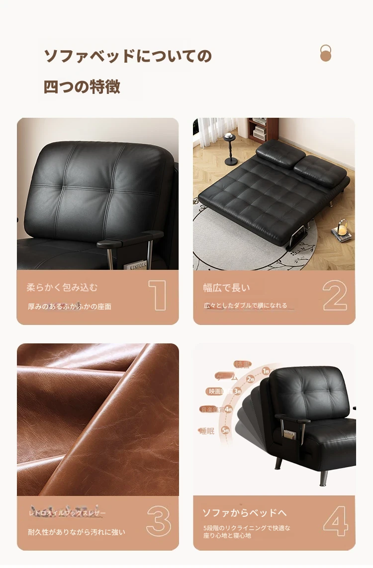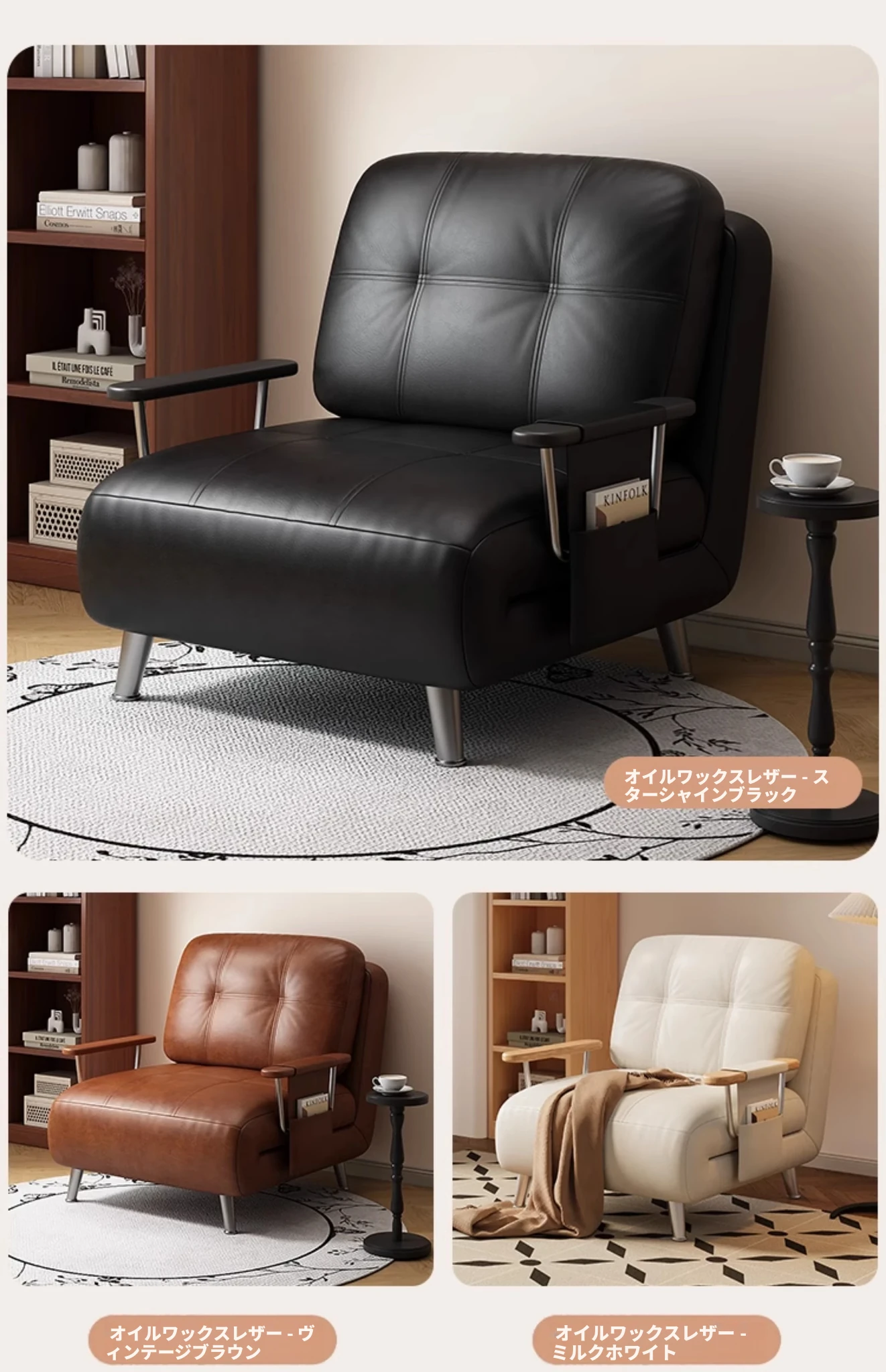 【選りすぐりの星耀ブラックオイルワックスレザー丨天然ラテックス】1.0mソファベッド