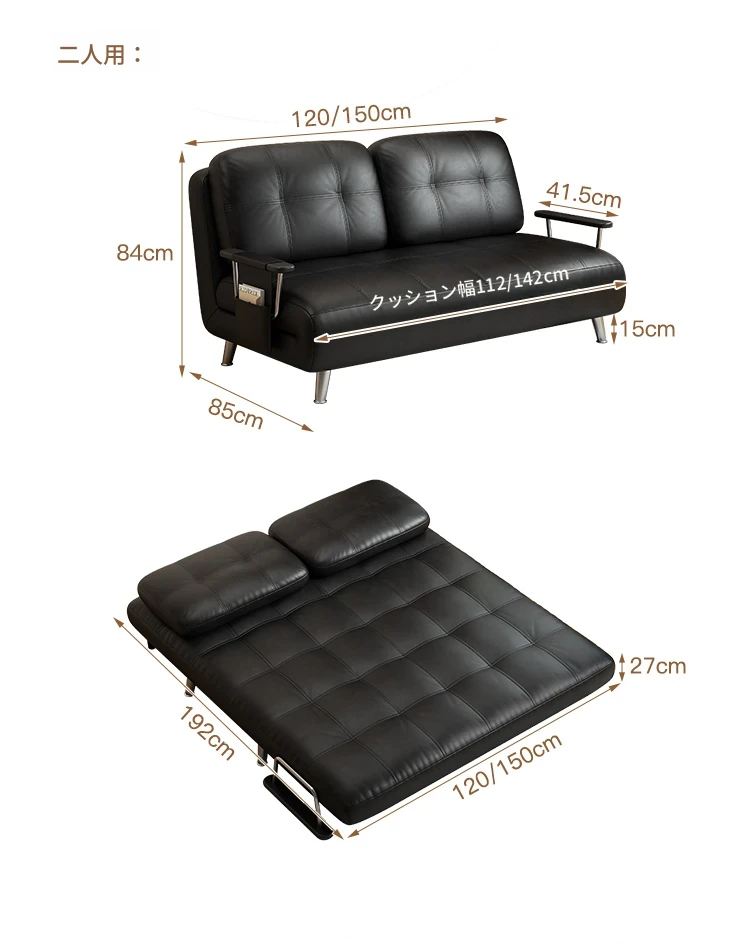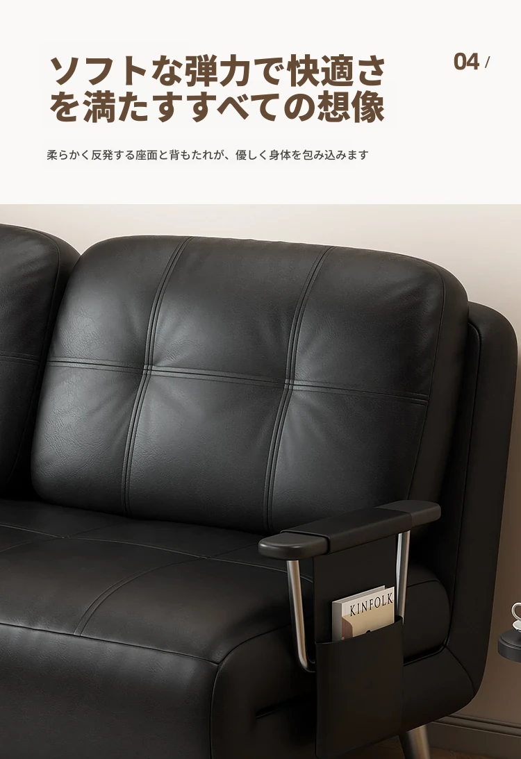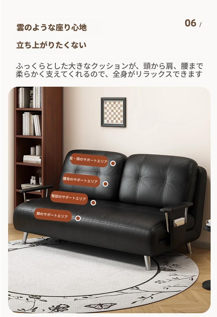 【防汚高級ブラックキャットスクラッチレザー丨天然ラテックス】0.8mソファベッド