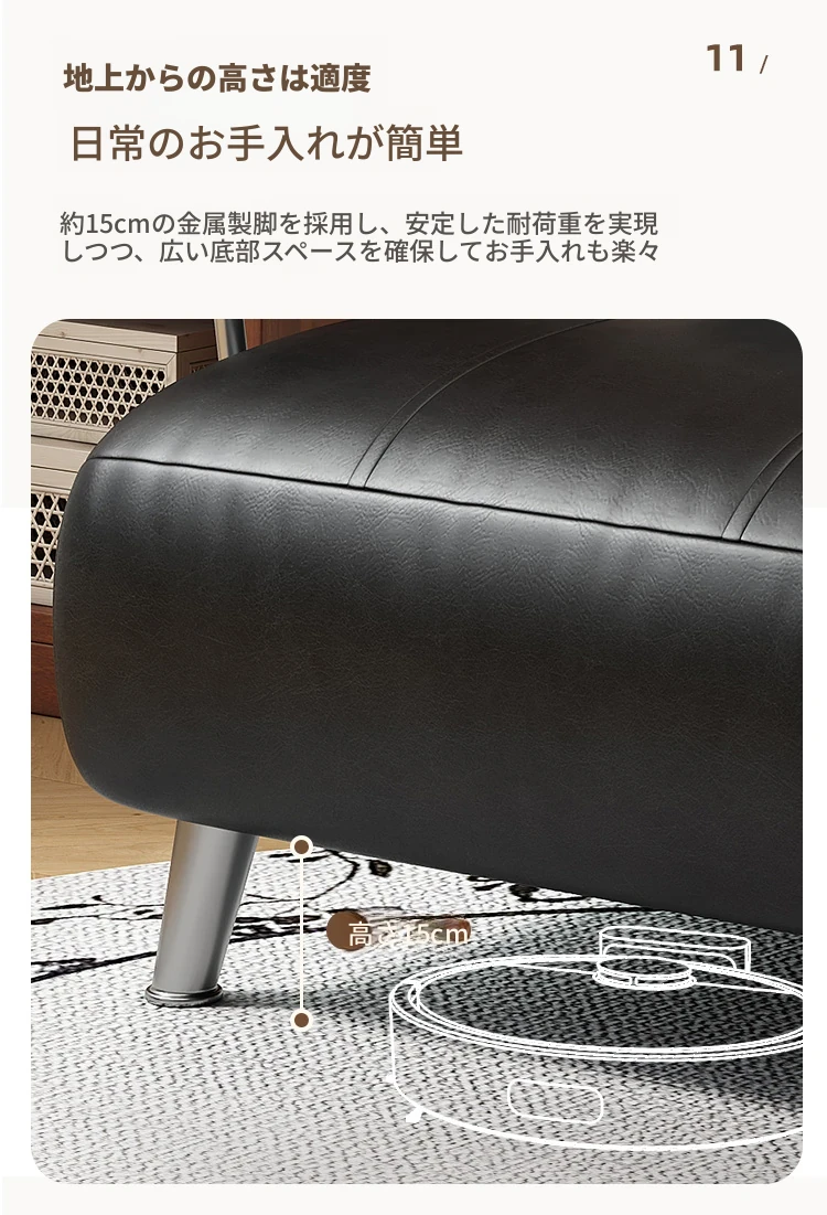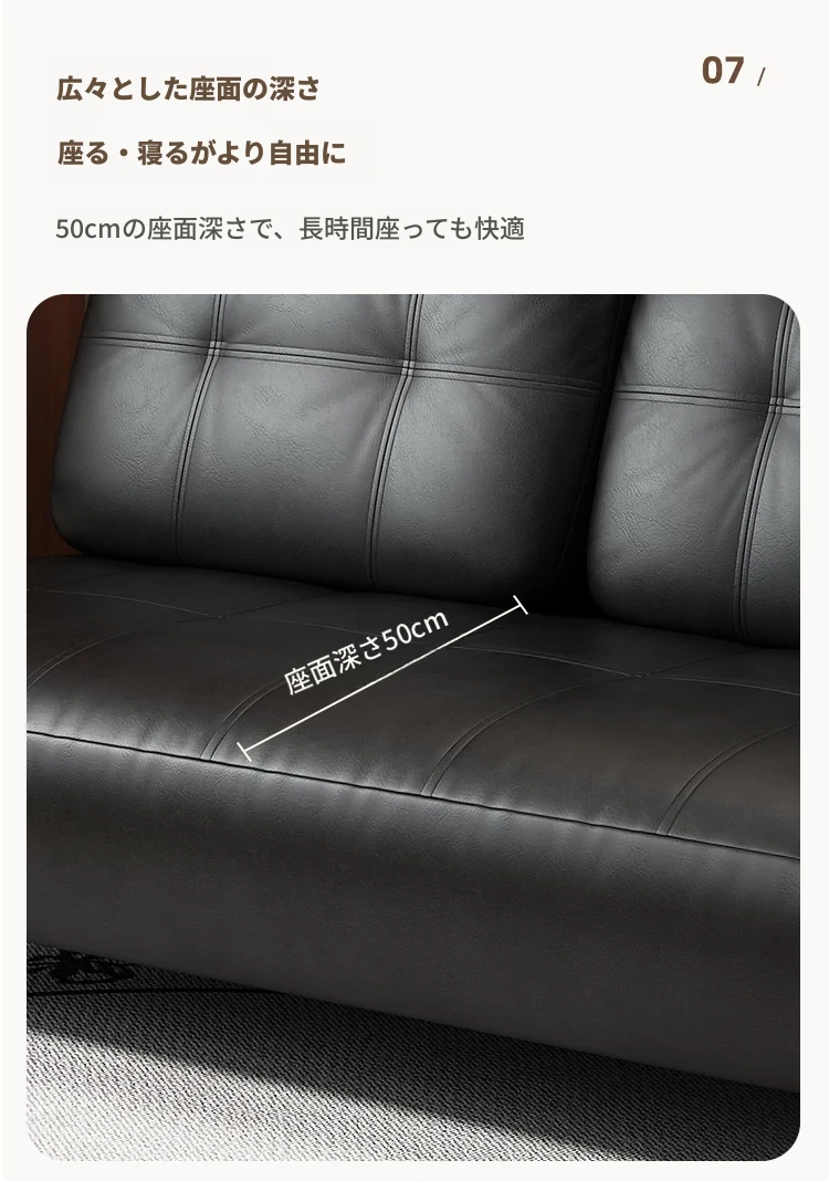 【防汚高級ブラックキャットスクラッチレザー丨粉なしスポンジ】1.0mソファベッド