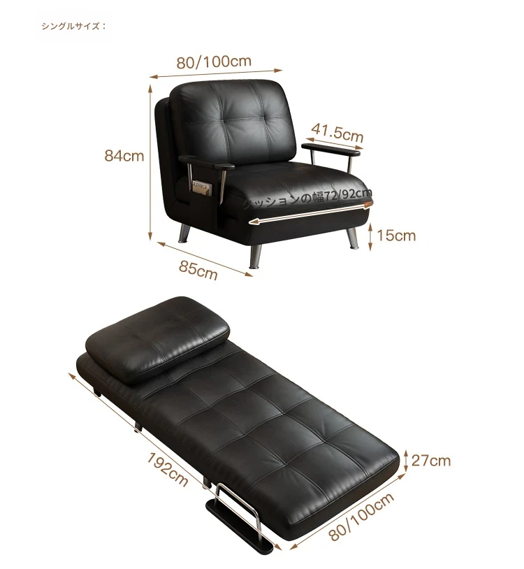 【防汚高級ブラックキャットスクラッチレザー丨脊椎保護ココナッツ】0.8mソファベッド