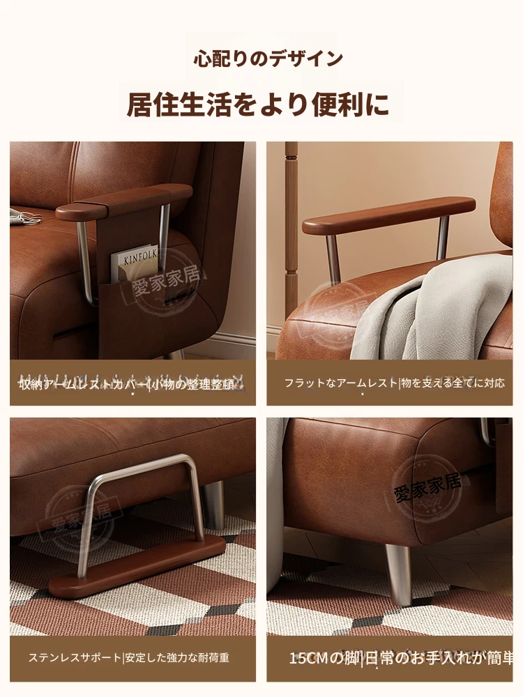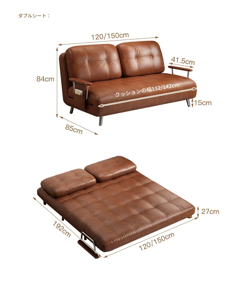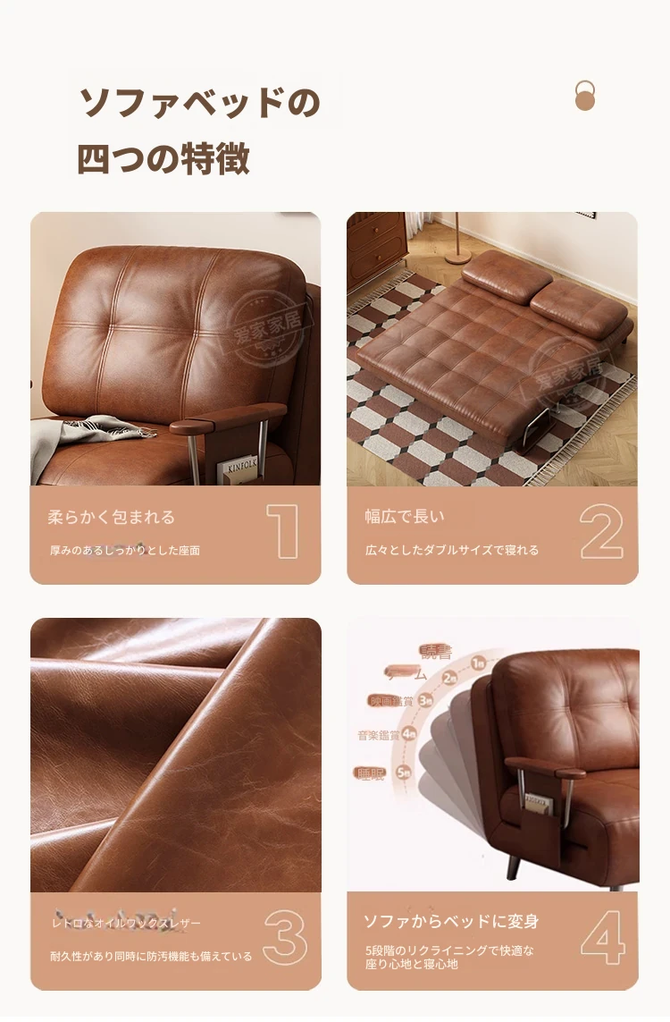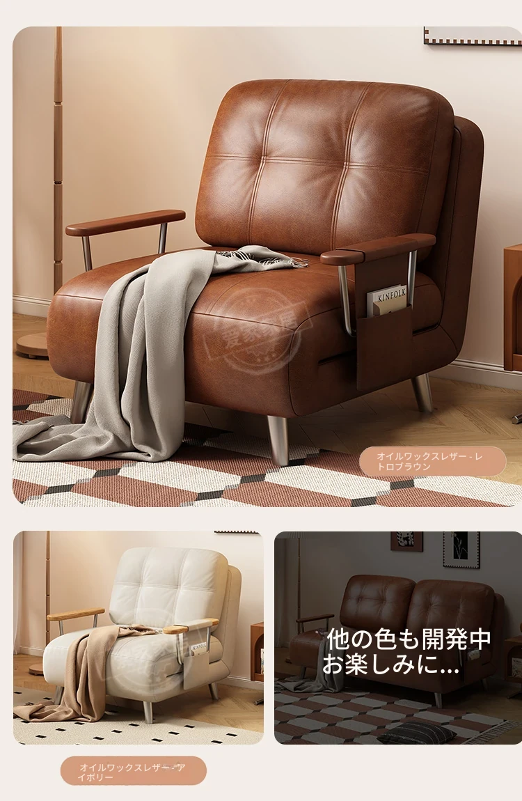 【選りすぐりのホワイトオイルワックスレザー丨無粉スポンジ】1.0mソファベッド