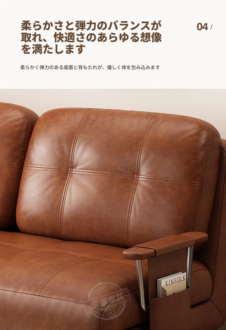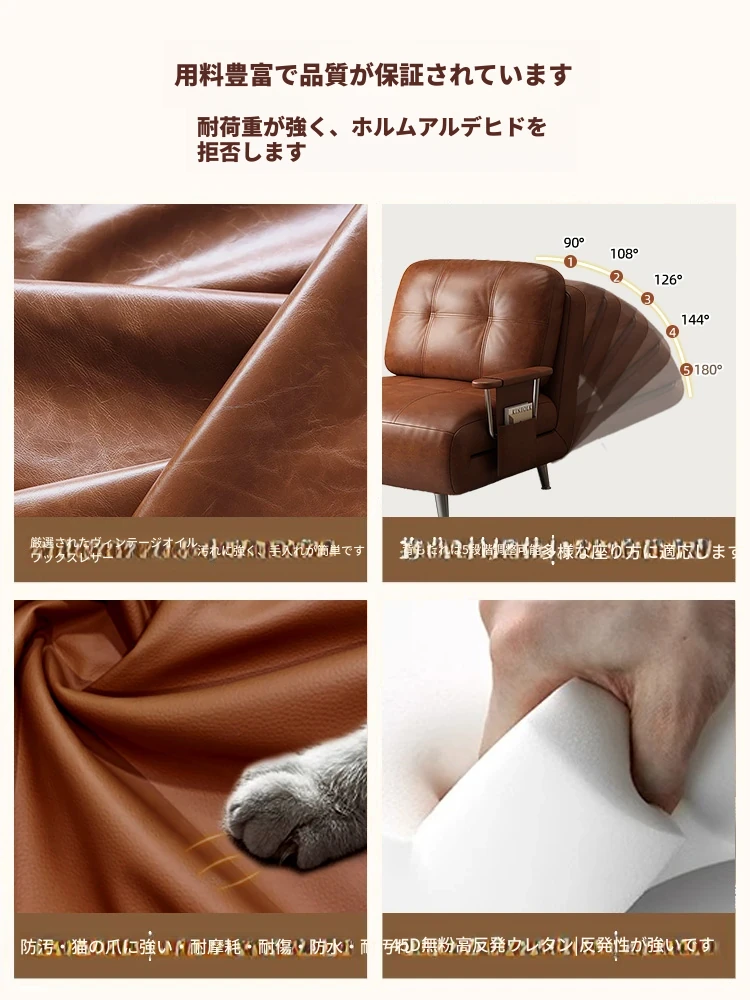 【選りすぐりのヴィンテージオイルワックスレザー丨無粉スポンジ】1.0mソファベッド