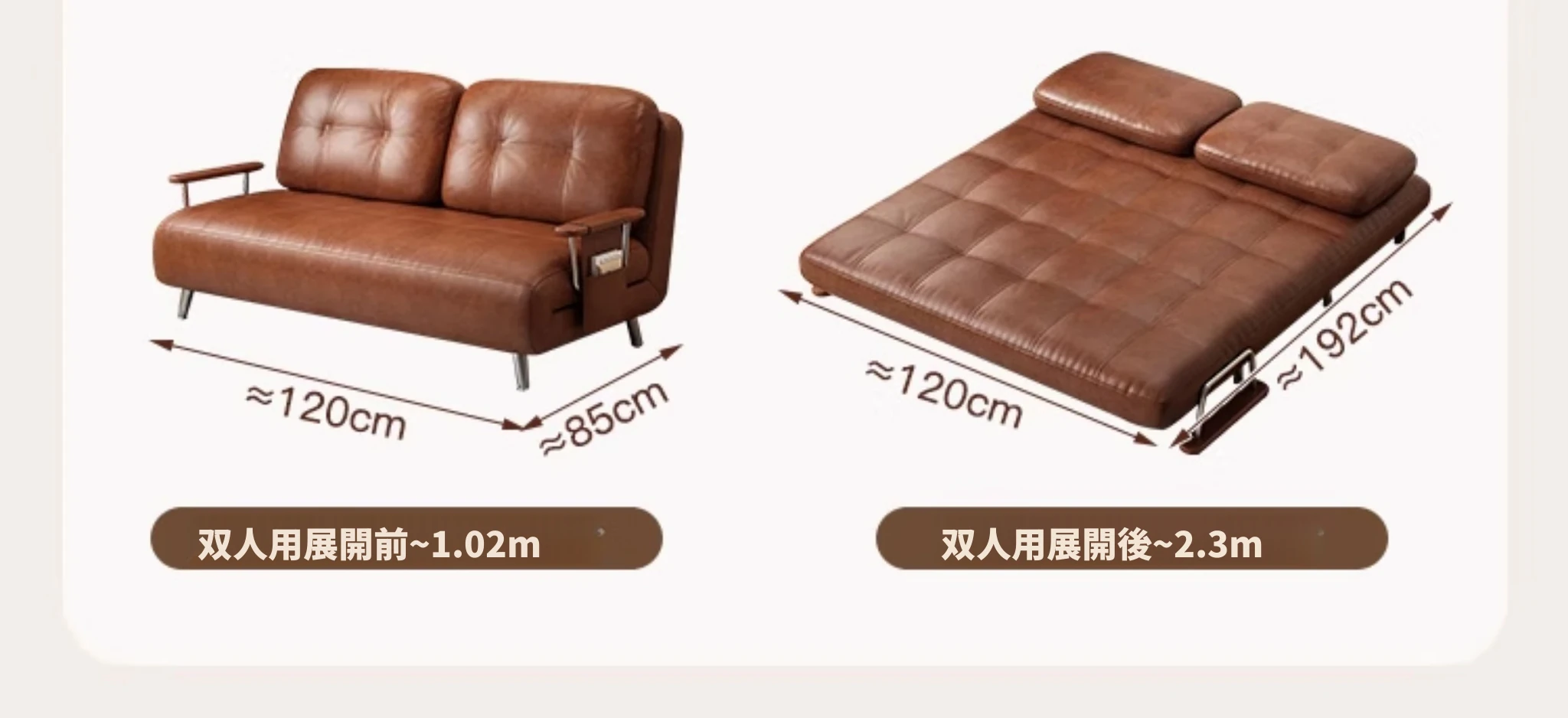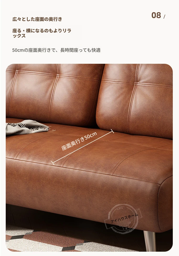 【選りすぐりのホワイトオイルワックスレザー丨天然ラテックス】0.8mソファベッド