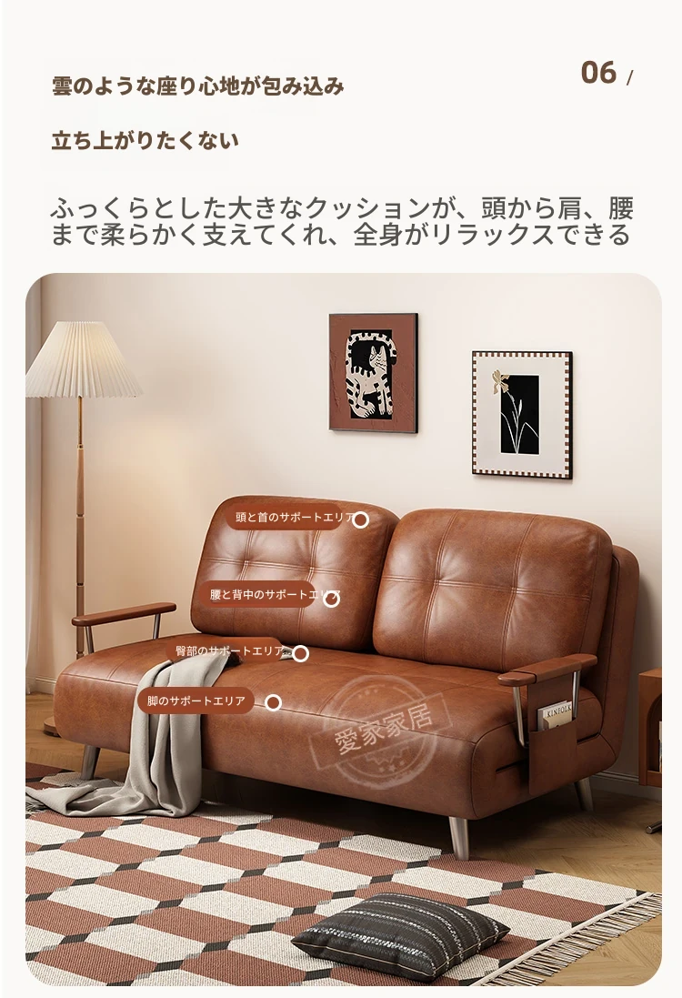 【選りすぐりのヴィンテージオイルワックスレザー丨天然ラテックス】0.8mソファベッド