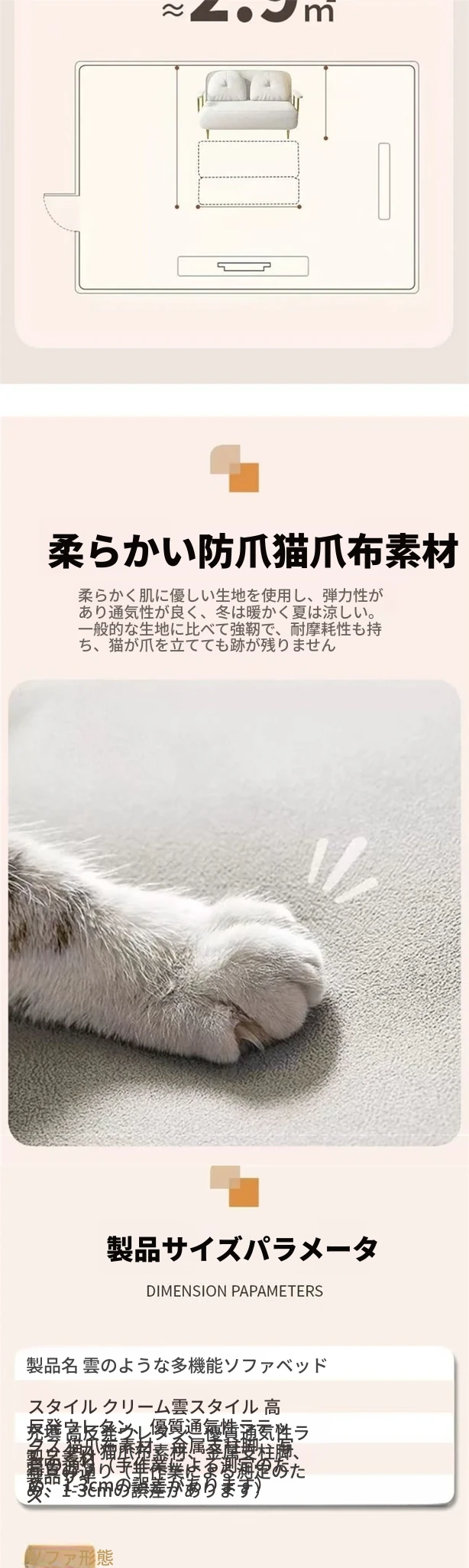 2025年新作!人気の折りたたみソファベッド✨ダブルサイズのクリーム風デザイン、雲のような居心地の良さでリビングを彩ります。ラウンジスペースに最適な、まったりくつろげるソファです!