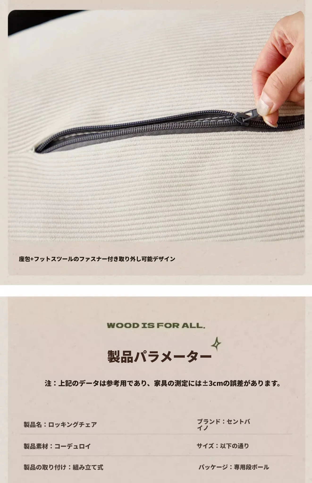 アイボリー(コーデュロイ生地)【洗濯可能】
