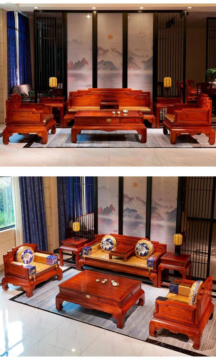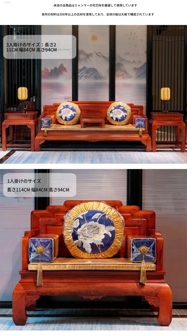 明清風格 中華古典紅木ソファセット - 高級ミャンマー花梨大果紫檀使用!優雅なデザインで華やかなリビング空間を演出します。あなたの家に文化と伝統をもたらす、洗練された家具です。