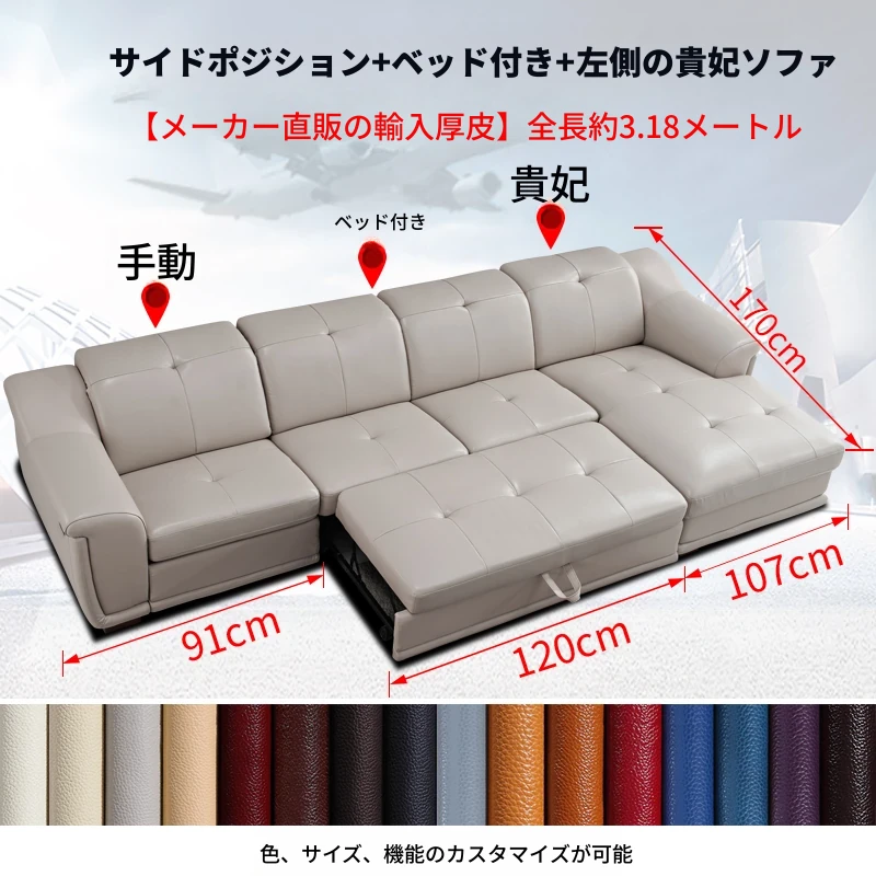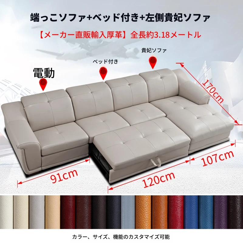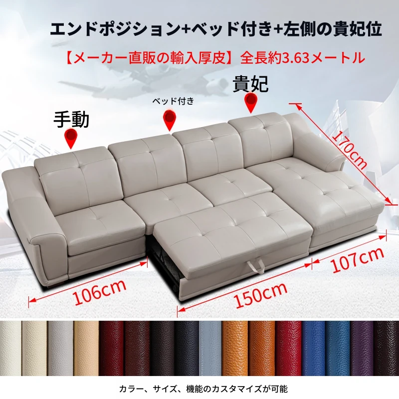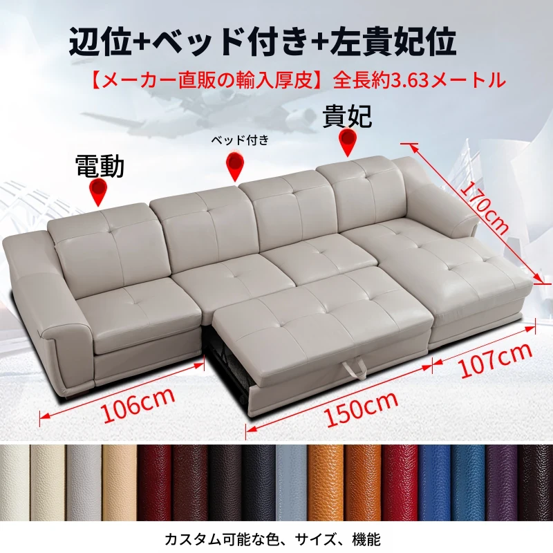 ボーチャン多機能本革ソファベッド - 現代的でシンプルなデザイン、リビングルームや大小の部屋に最適!快適な頭等クラスのスマートキャビン電動ソファで、贅沢なリラックスタイムをお楽しみください。