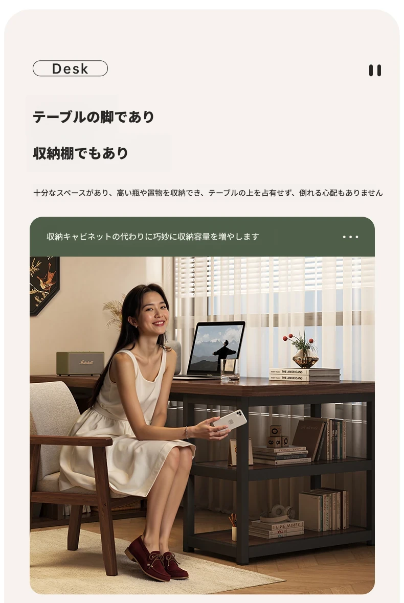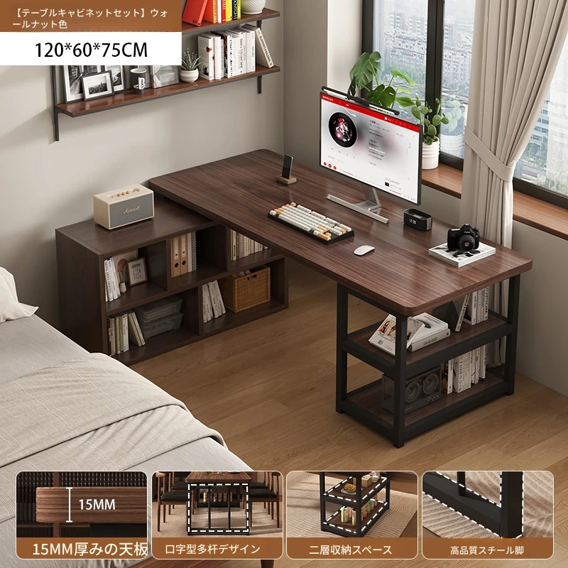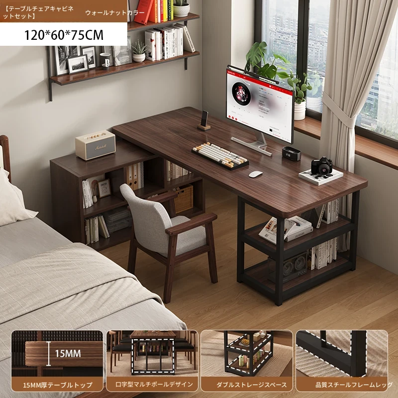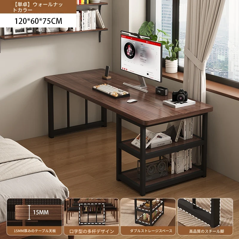 【新型ストレージ単テーブル❤口字型スチール脚】ブラックウォールナット色120*60cm