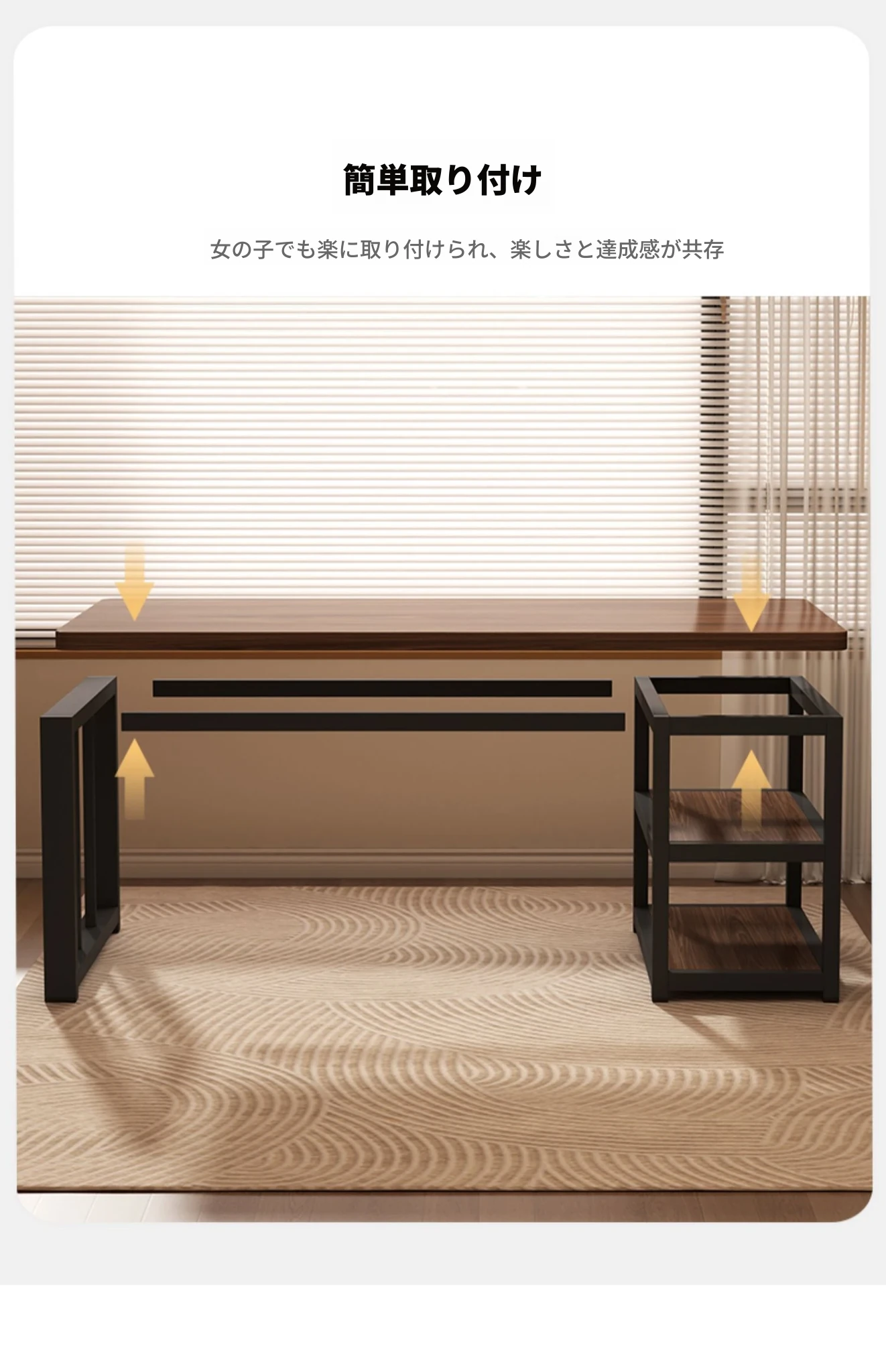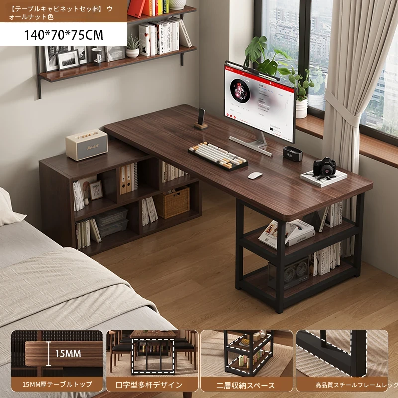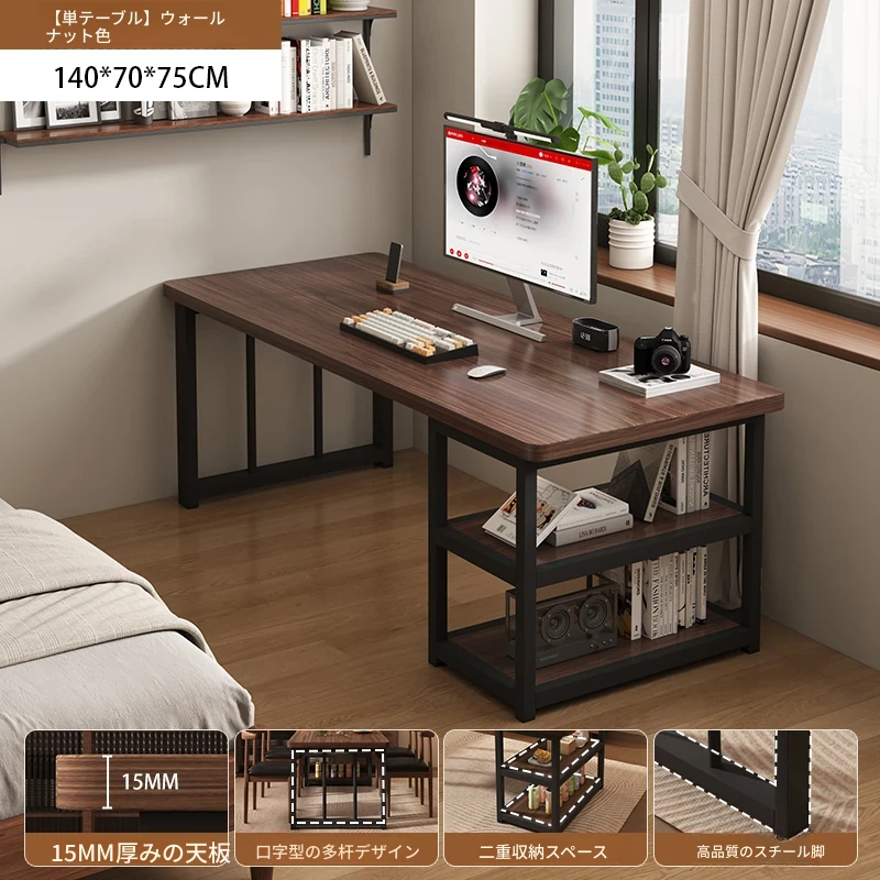【新型ストレージ単テーブル❤口字型スチール脚】ブラックウォールナット色140*70cm