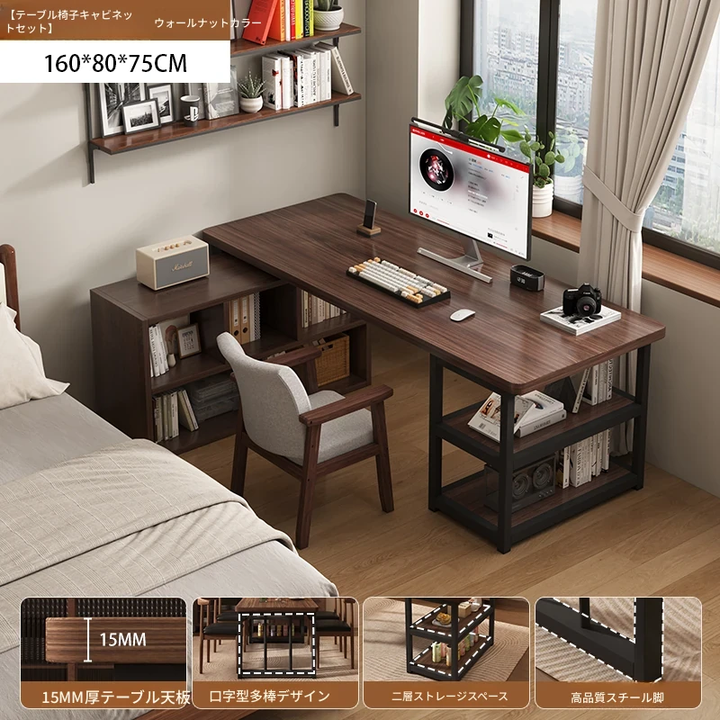 【新型ストレージ単テーブル❤口字型スチール脚】ブラックウォールナット色160*80cm