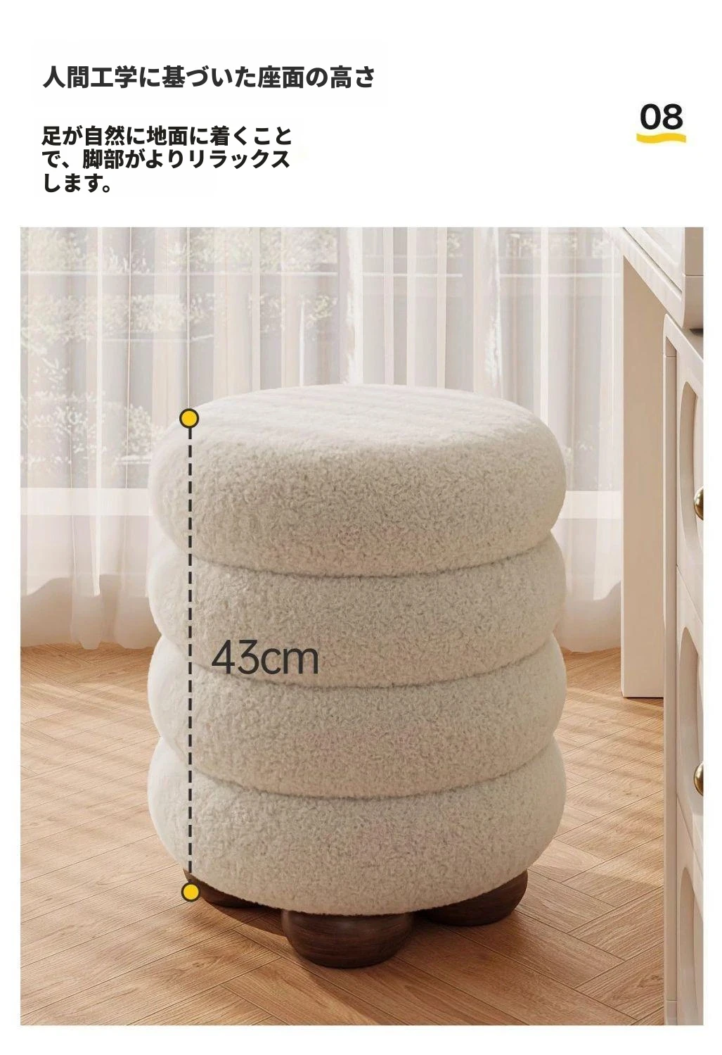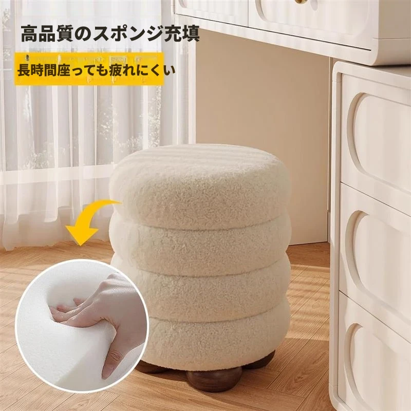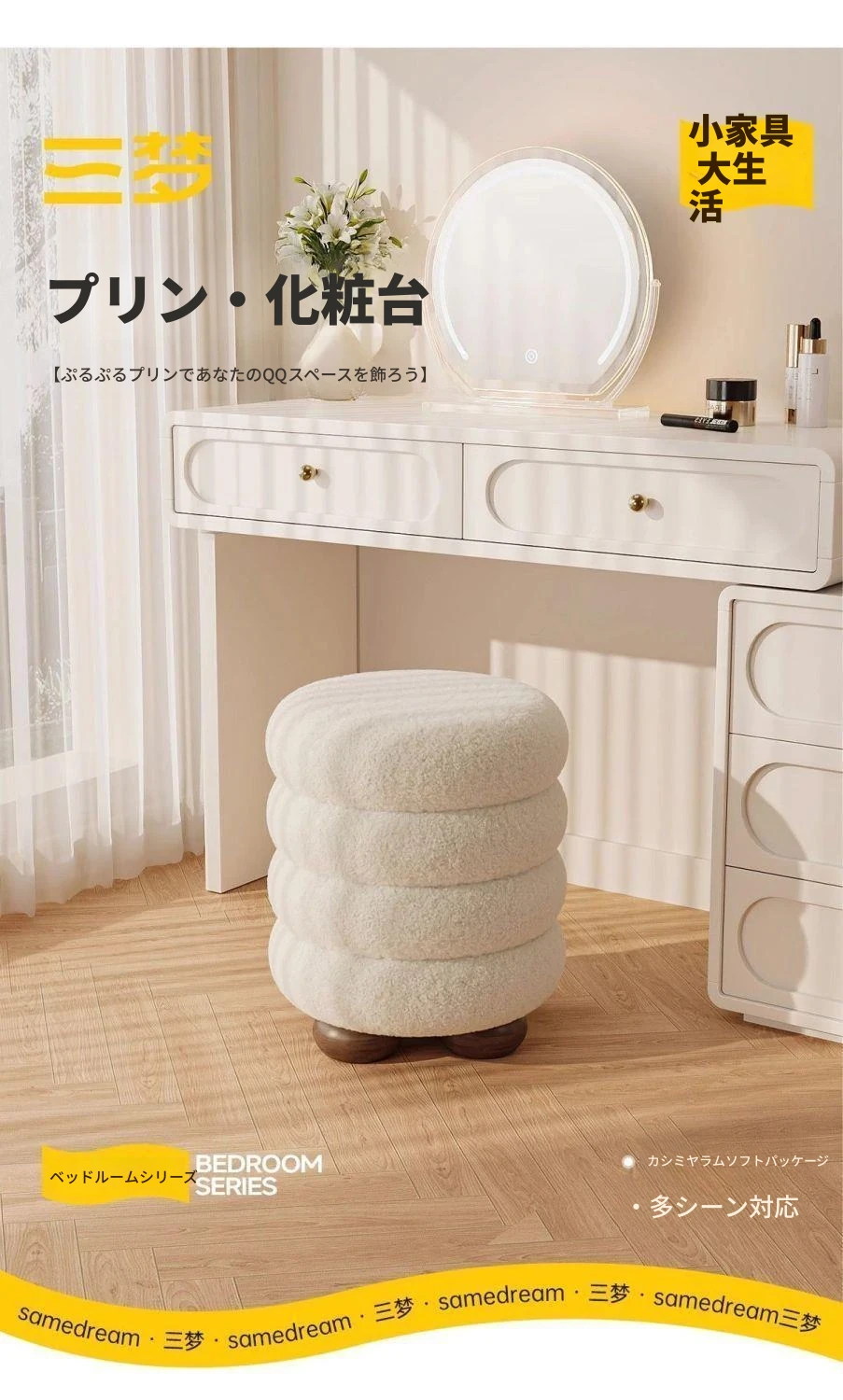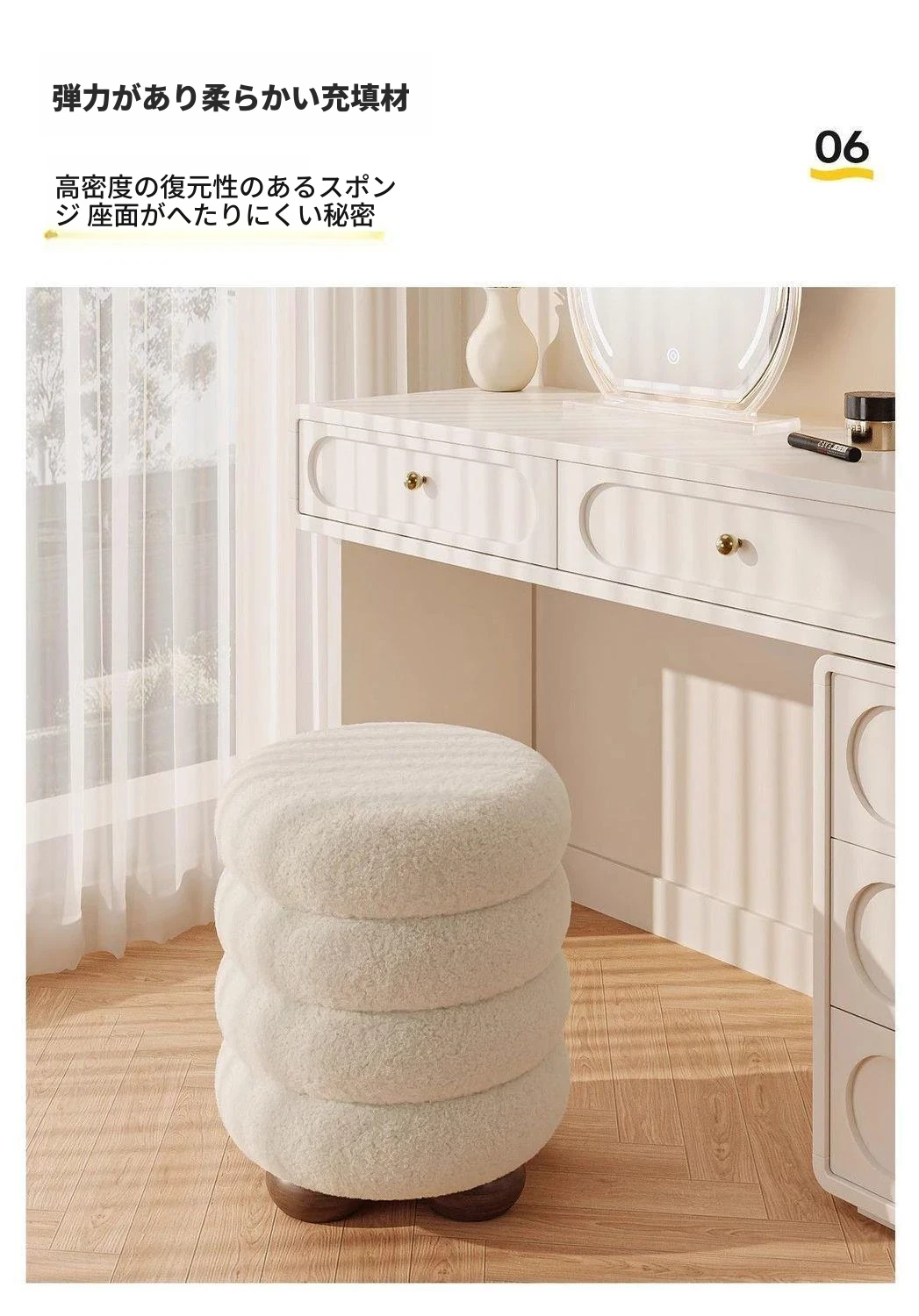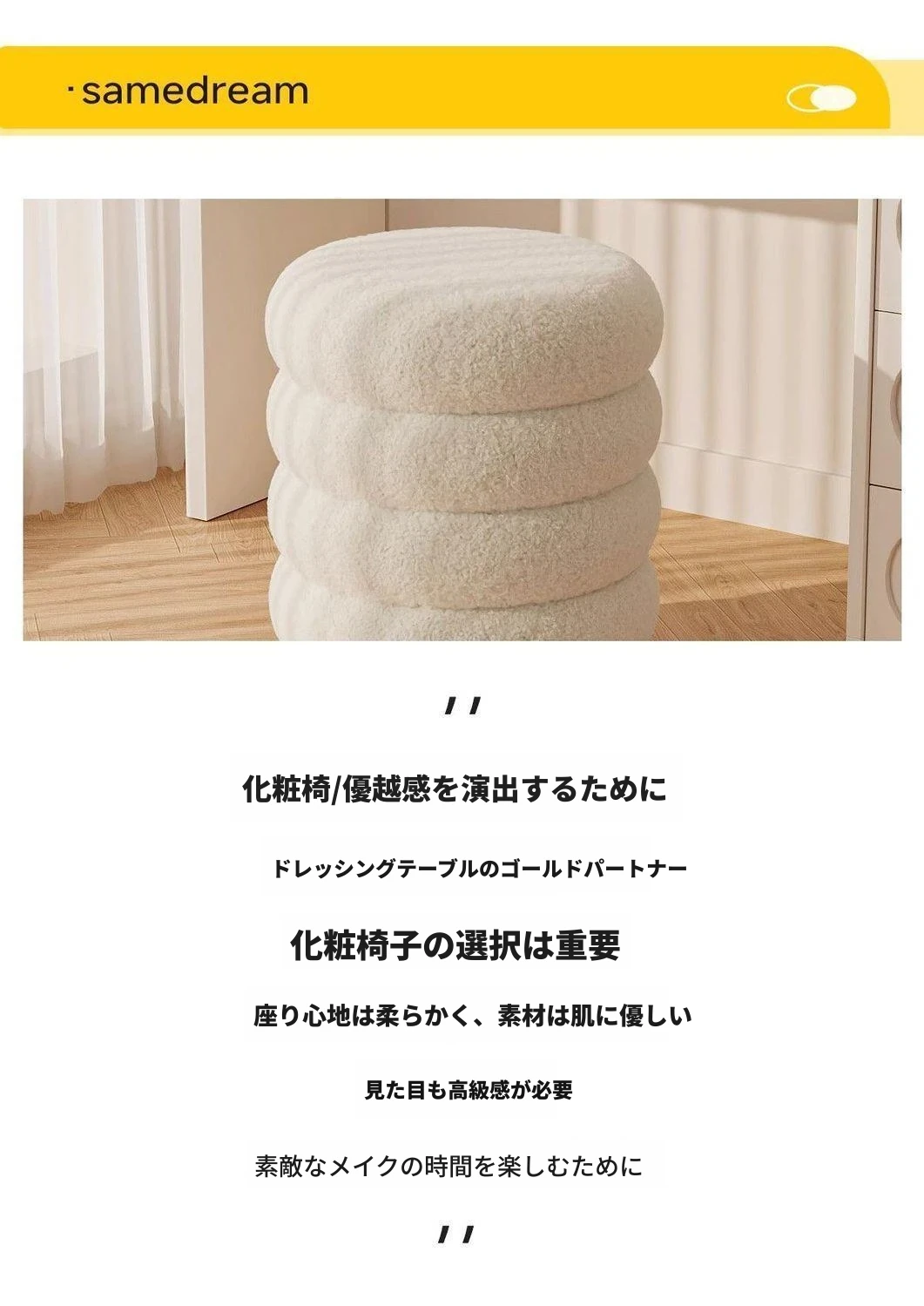 クリーミーガールズ 化粧台セット ふわふわラウンドスツール 自宅用メイクアップ 高級感あふれるおしゃれなデザイン 羊毛ファー使用 寝室にぴったりのトレンディなアイテム