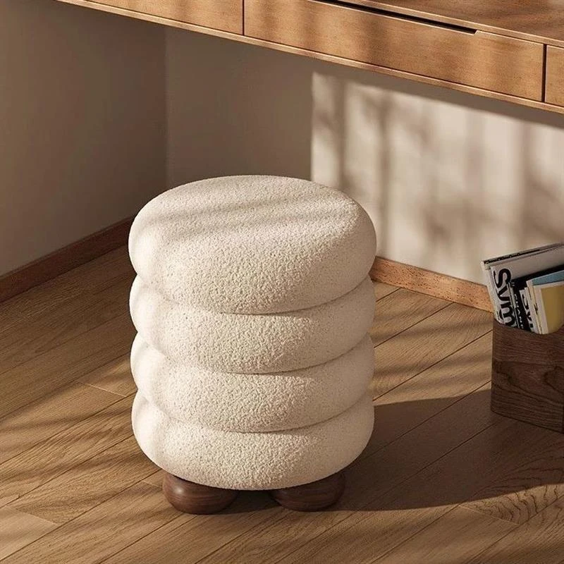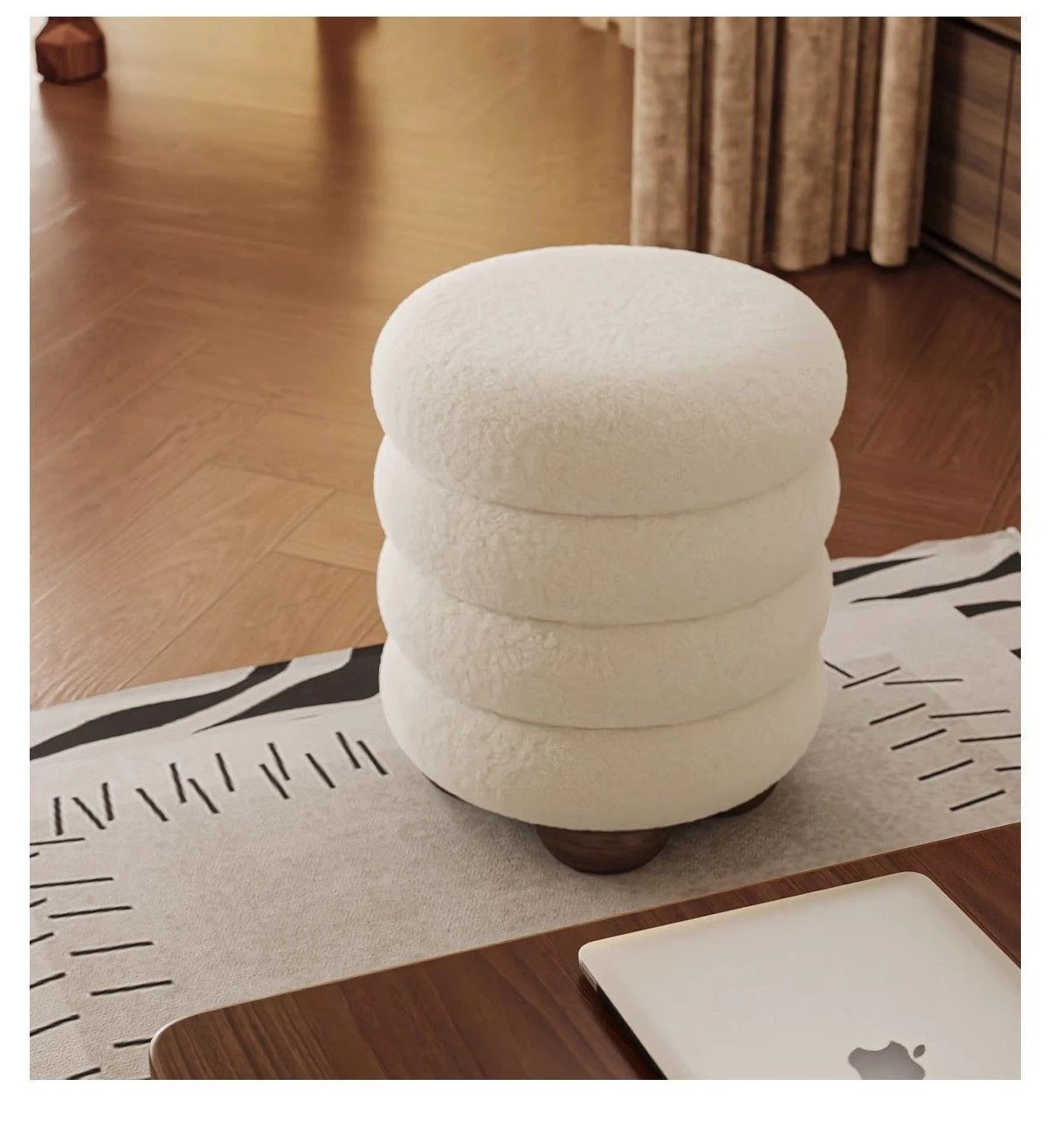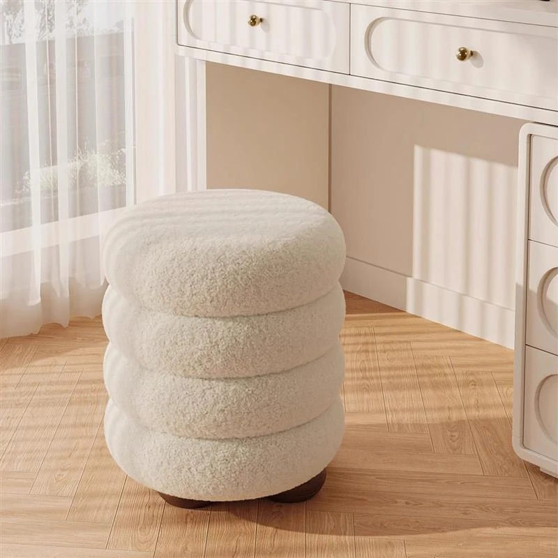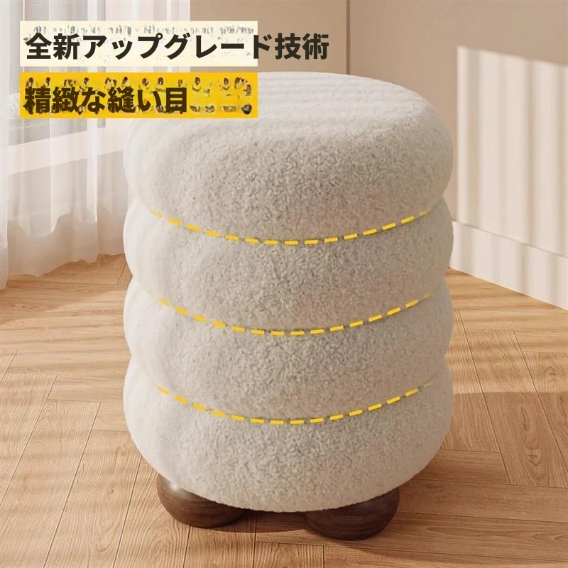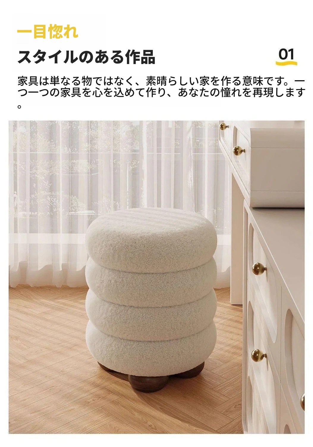 クリーミーガールズ 化粧台セット ふわふわラウンドスツール 自宅用メイクアップ 高級感あふれるおしゃれなデザイン 羊毛ファー使用 寝室にぴったりのトレンディなアイテム
