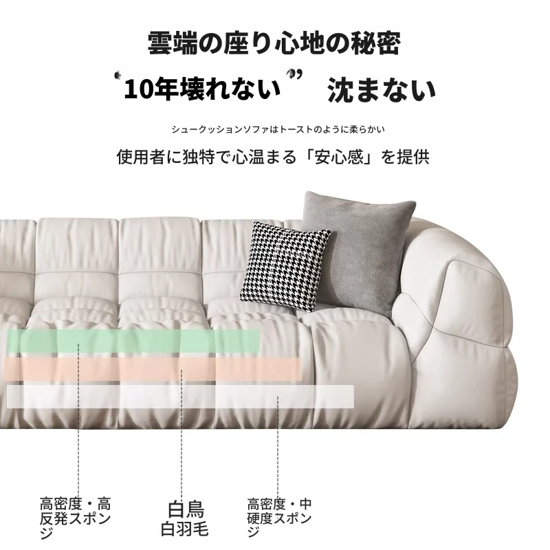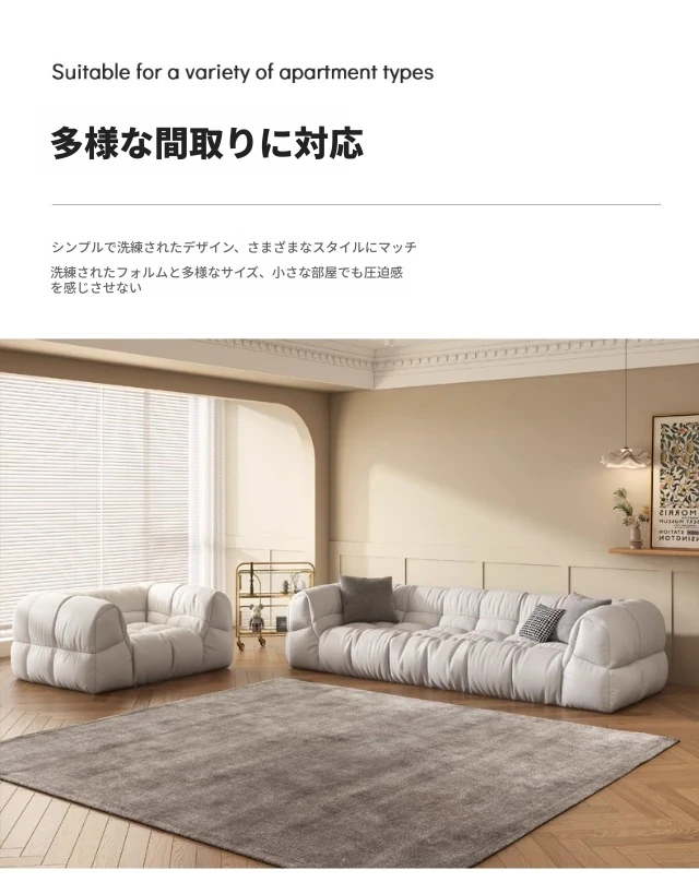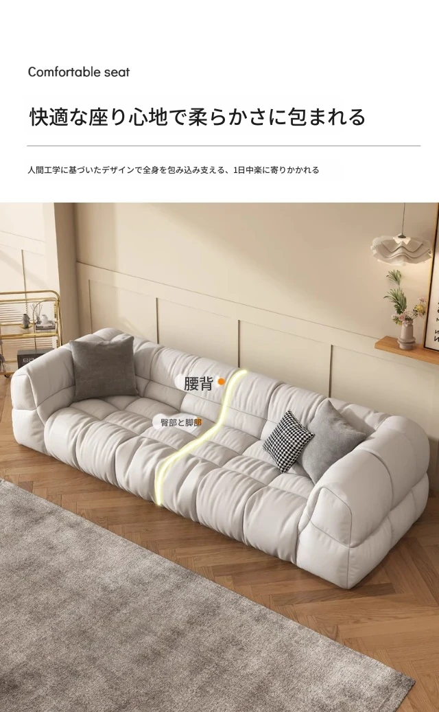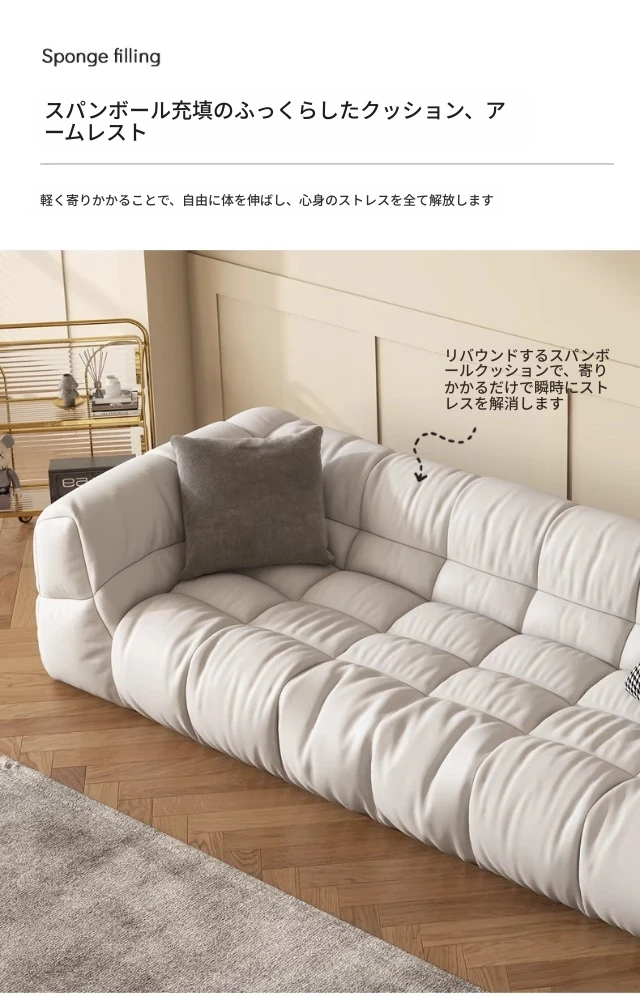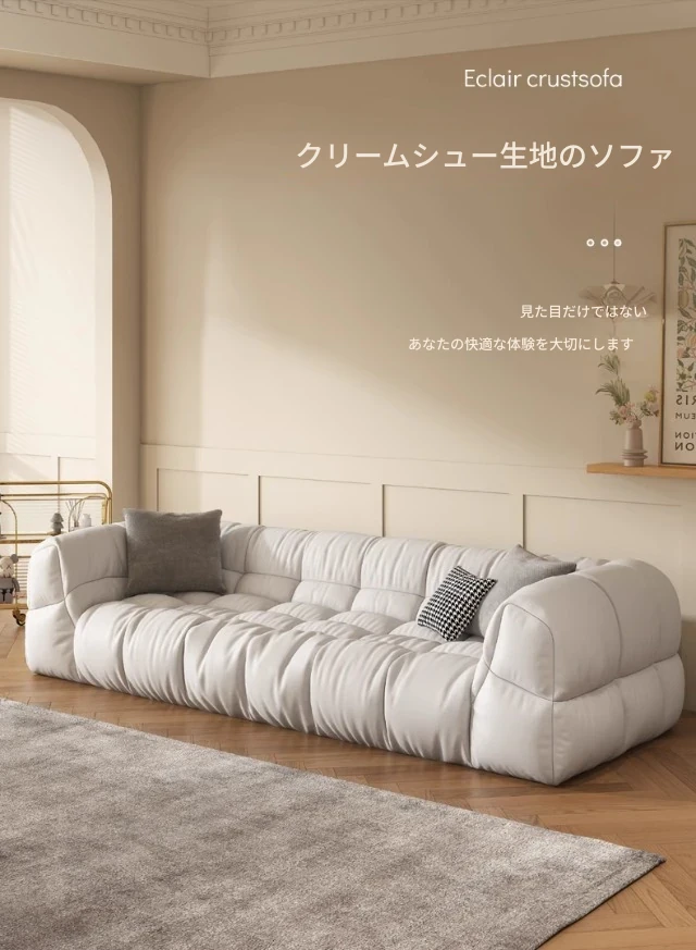 クリーム風のソファ、シンプルでモダンなデザイン。フレンチスタイルのプフで、3人、4人、5人掛けにも対応。貴妃スタイルの直線的なスクエア型、雲のような柔らかさを実現。快適な寝室にぴったりです!