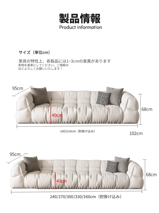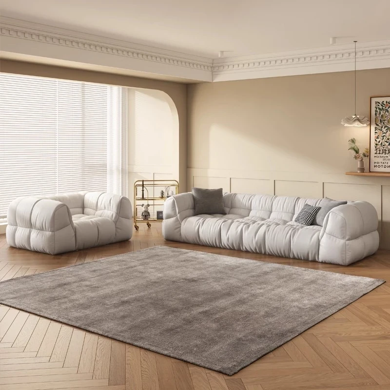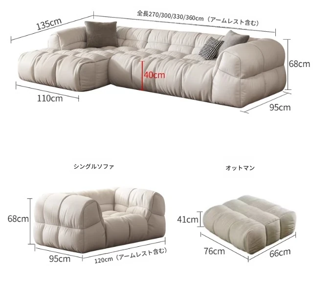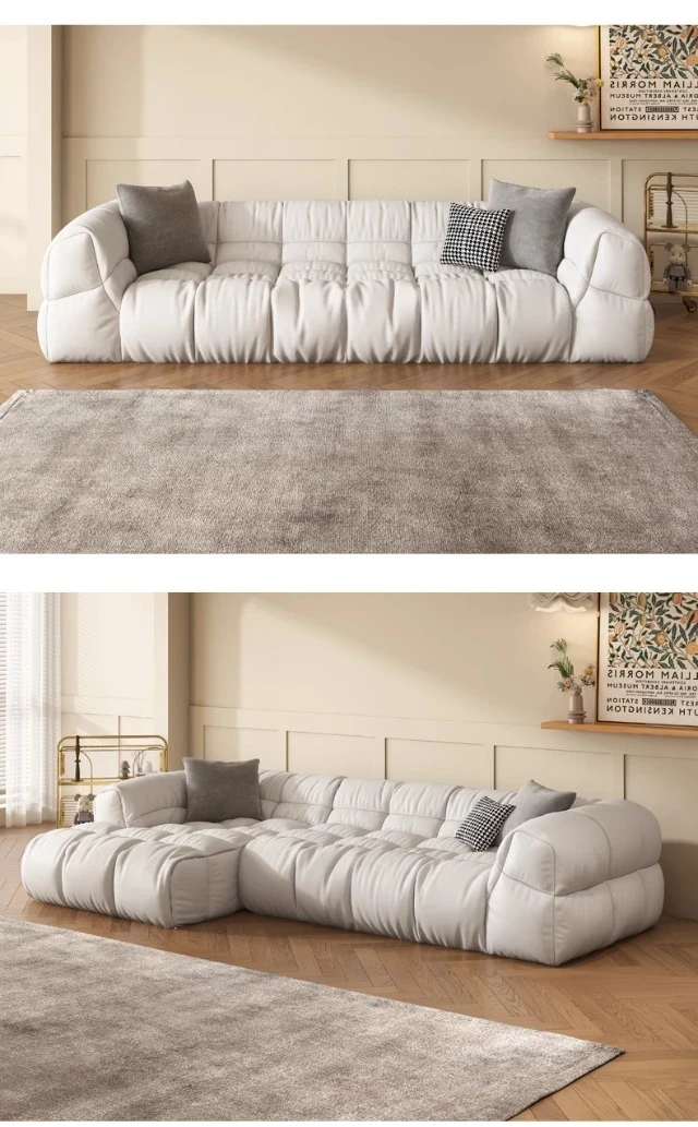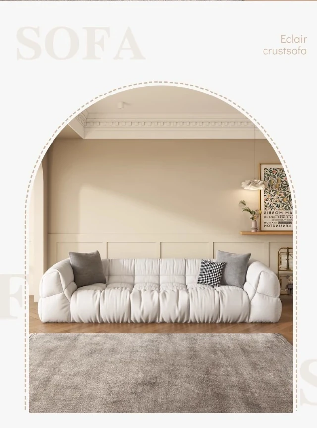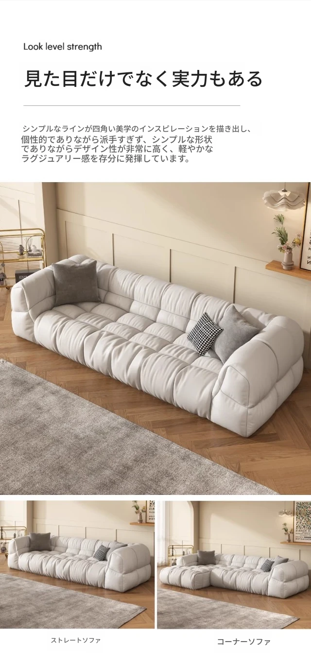 クリーム風のソファ、シンプルでモダンなデザイン。フレンチスタイルのプフで、3人、4人、5人掛けにも対応。貴妃スタイルの直線的なスクエア型、雲のような柔らかさを実現。快適な寝室にぴったりです!