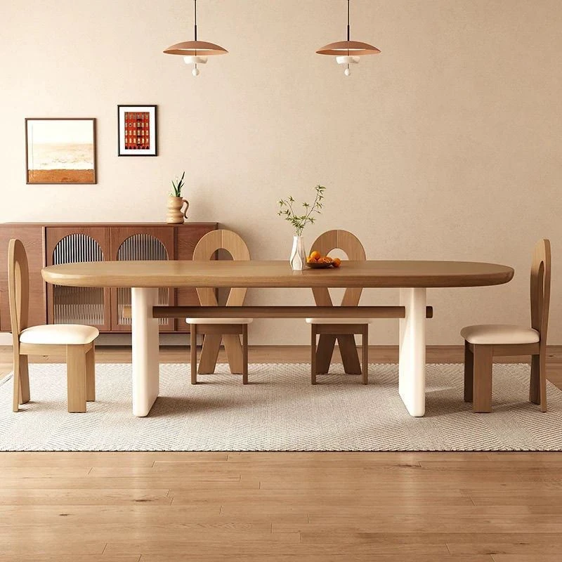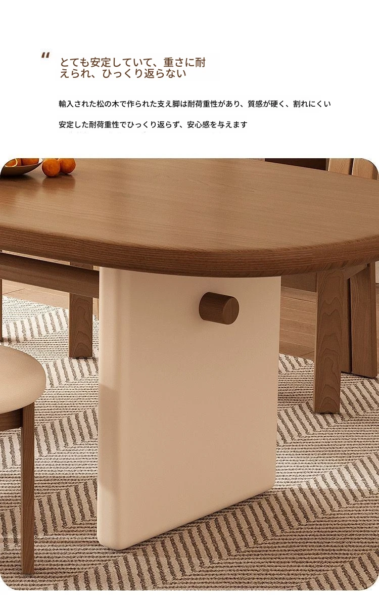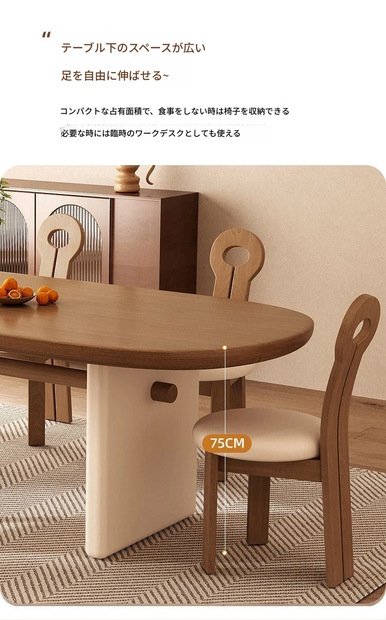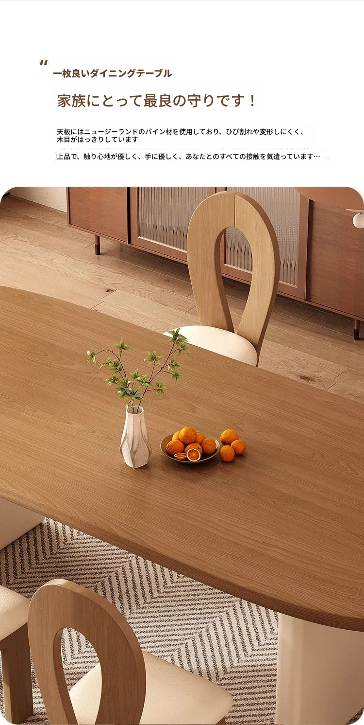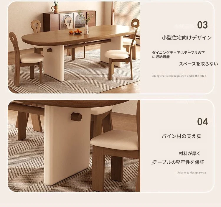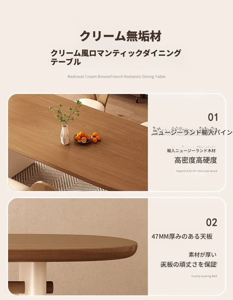 クリーム風味の無垢材オーバルダイニングテーブル&チェアセット - フレンチアンティークデザインのデザイナー作業台、オフィス会議テーブルとしても最適!