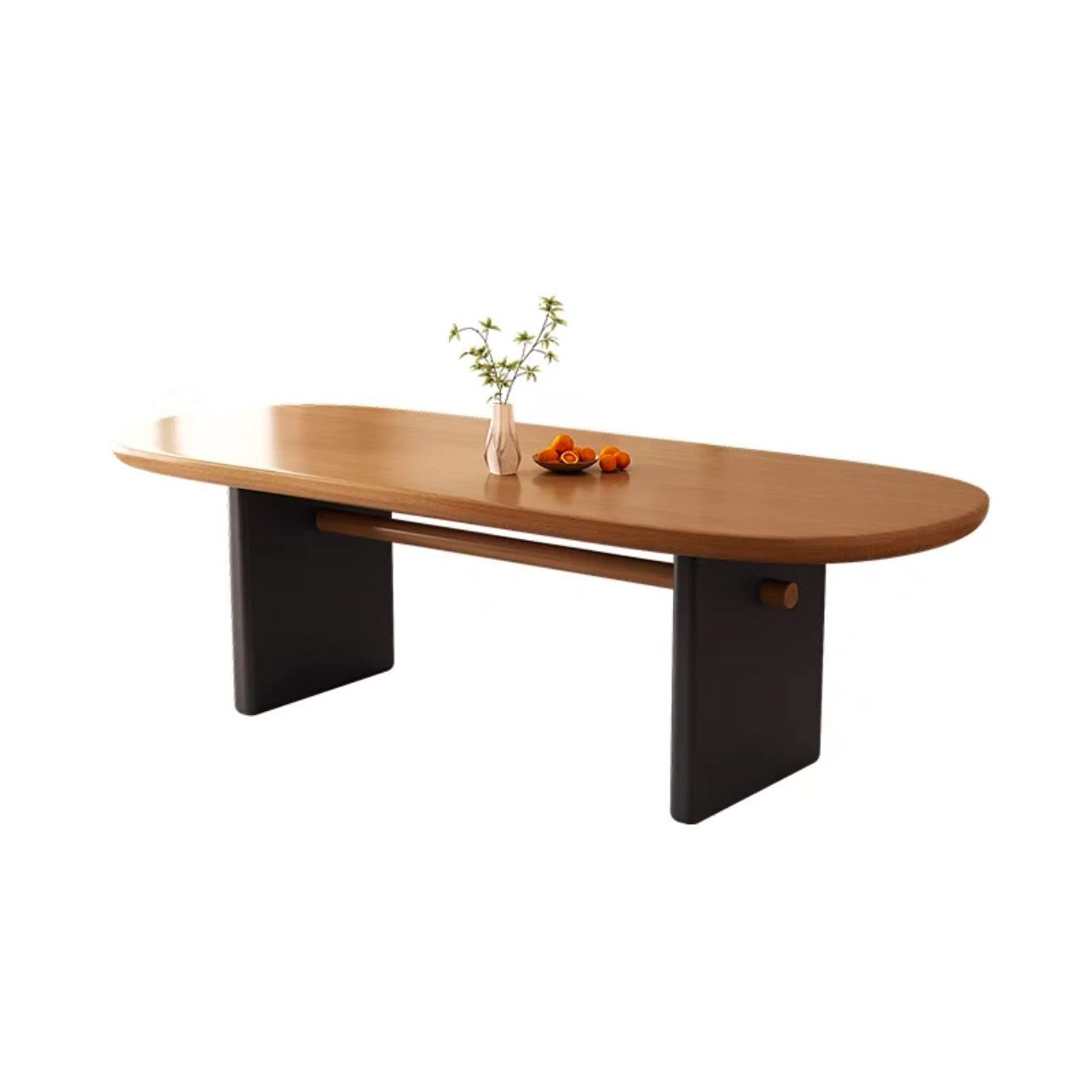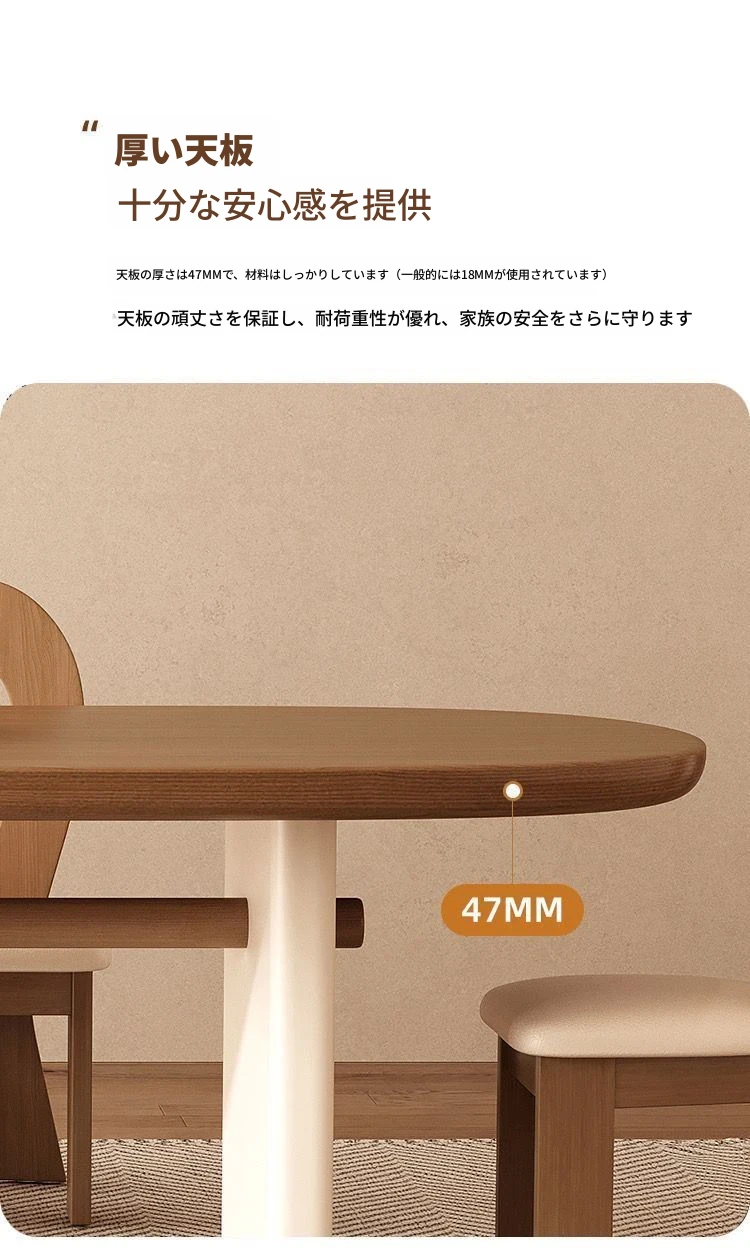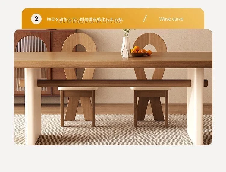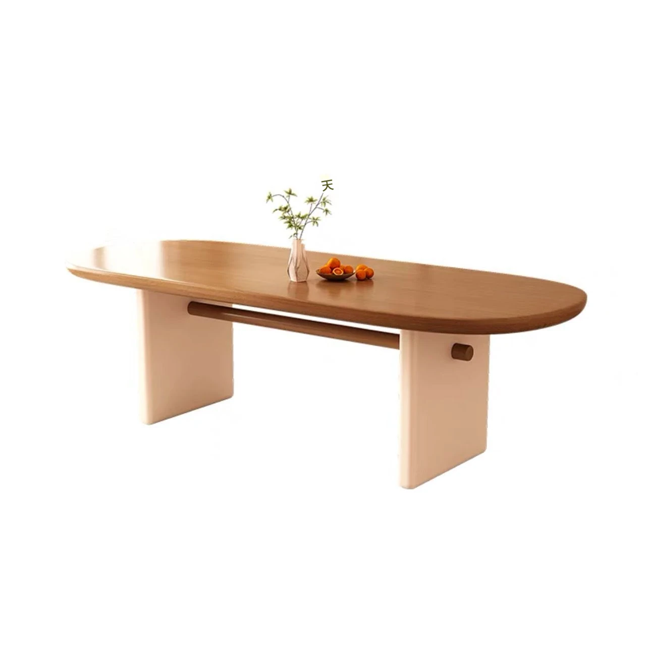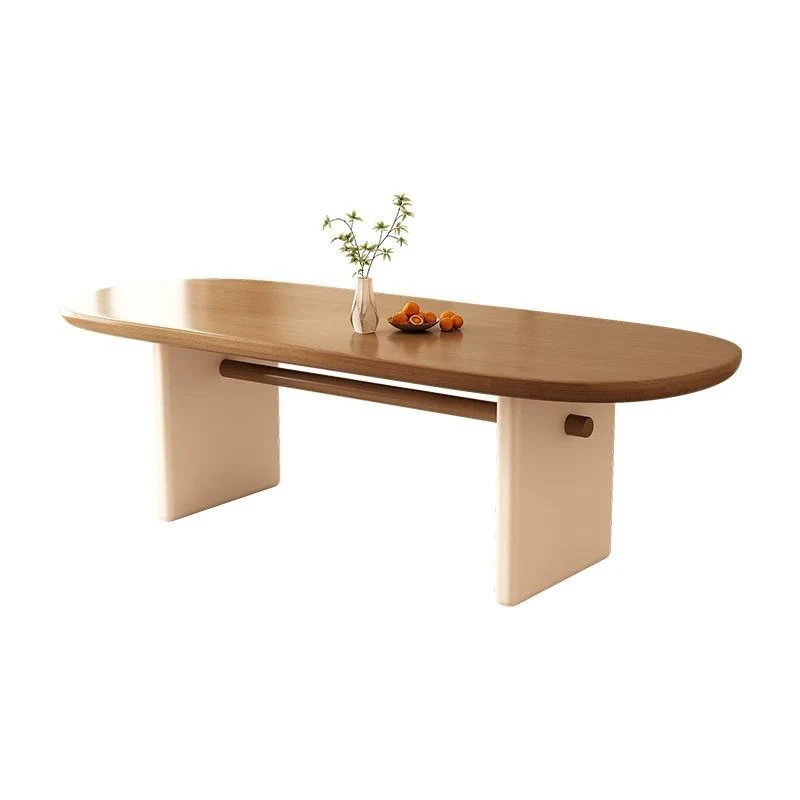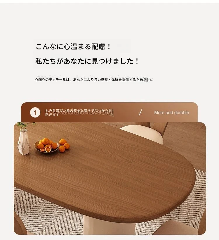 クリーム風味の無垢材オーバルダイニングテーブル&チェアセット - フレンチアンティークデザインのデザイナー作業台、オフィス会議テーブルとしても最適!