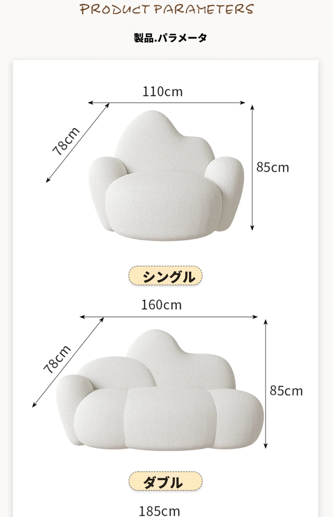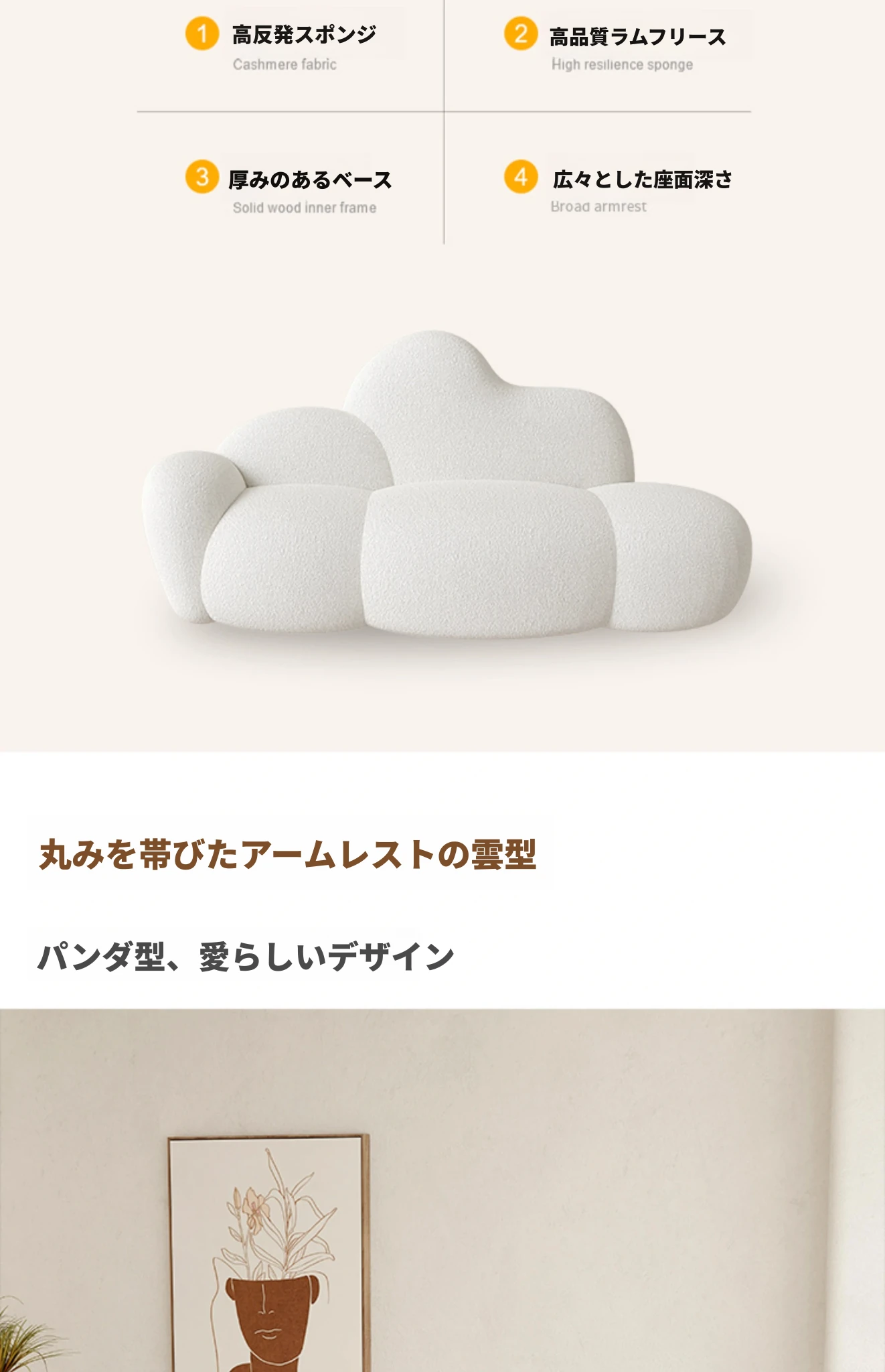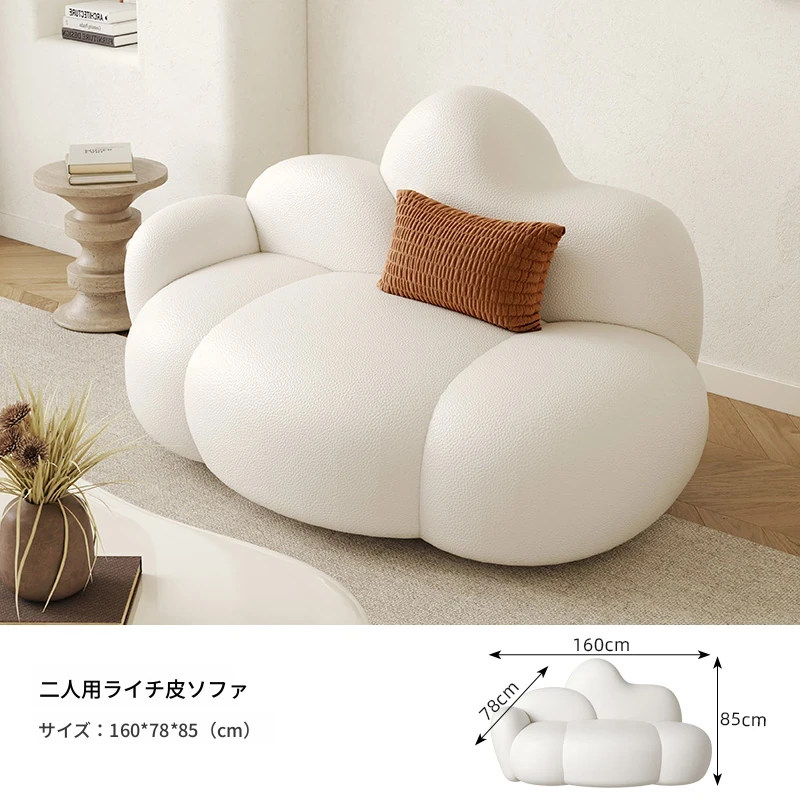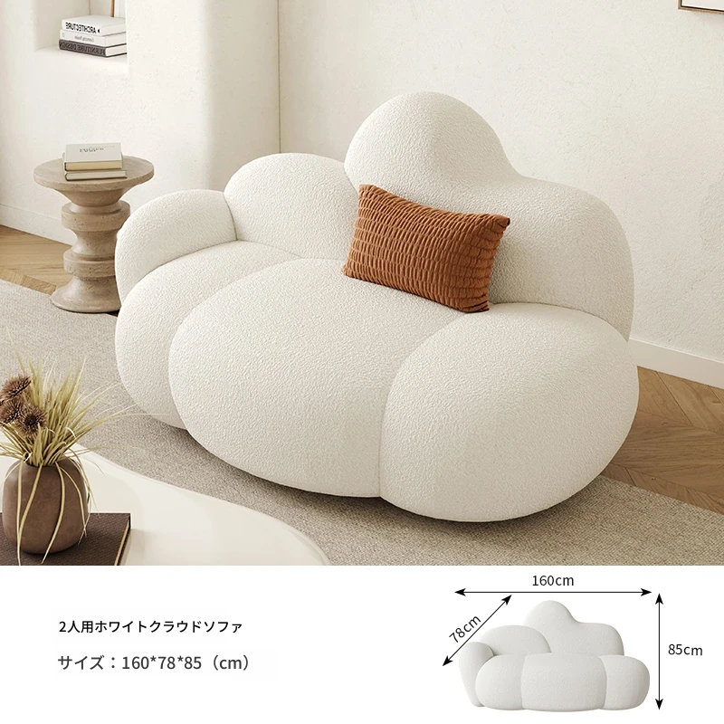 ミルクホワイト:二人用ホワイトクラウドソファ【160*78*85】 ラムフリース