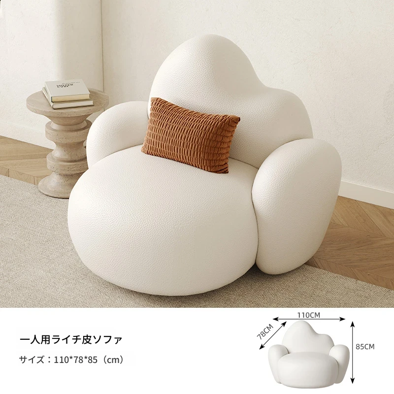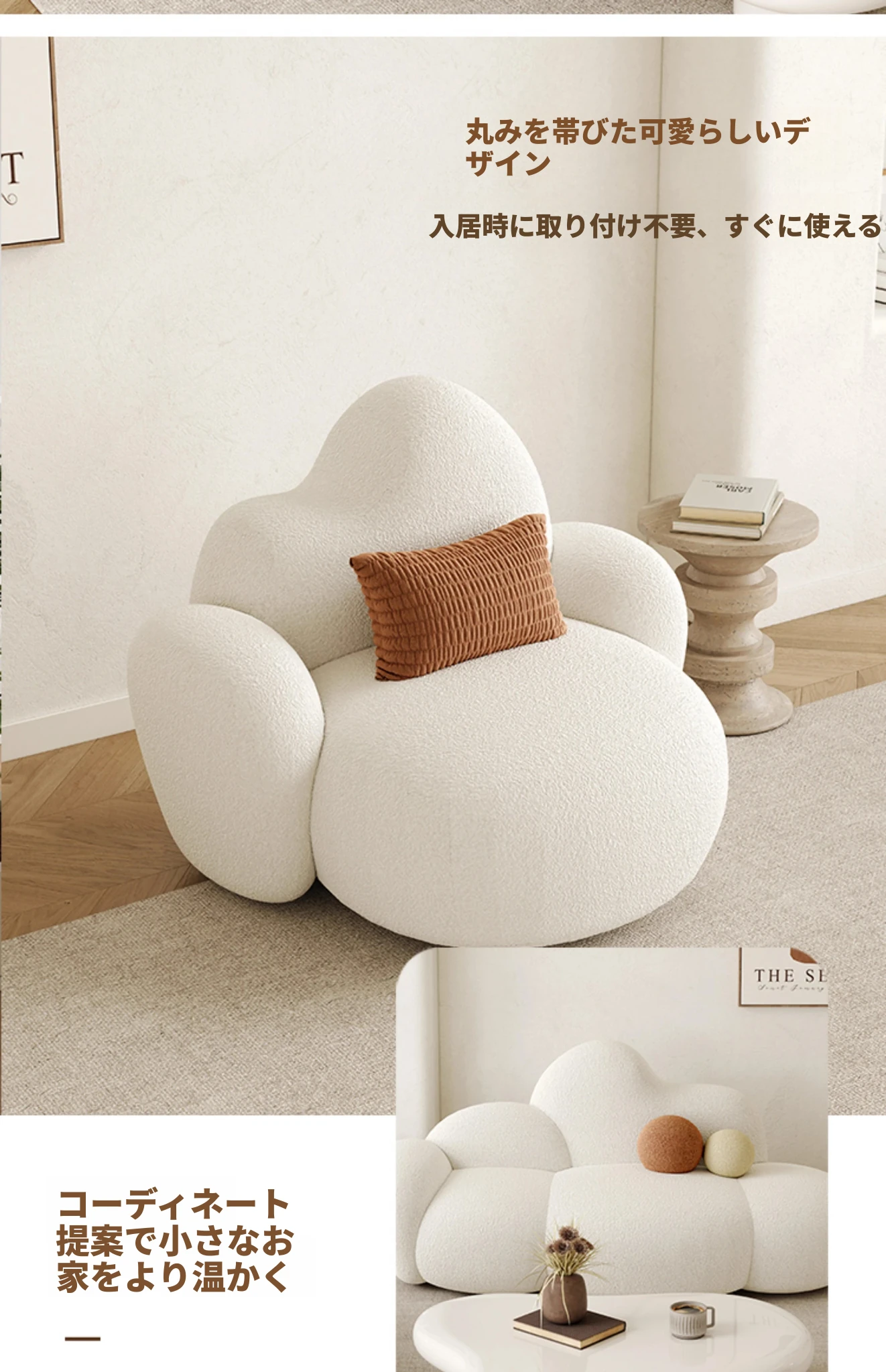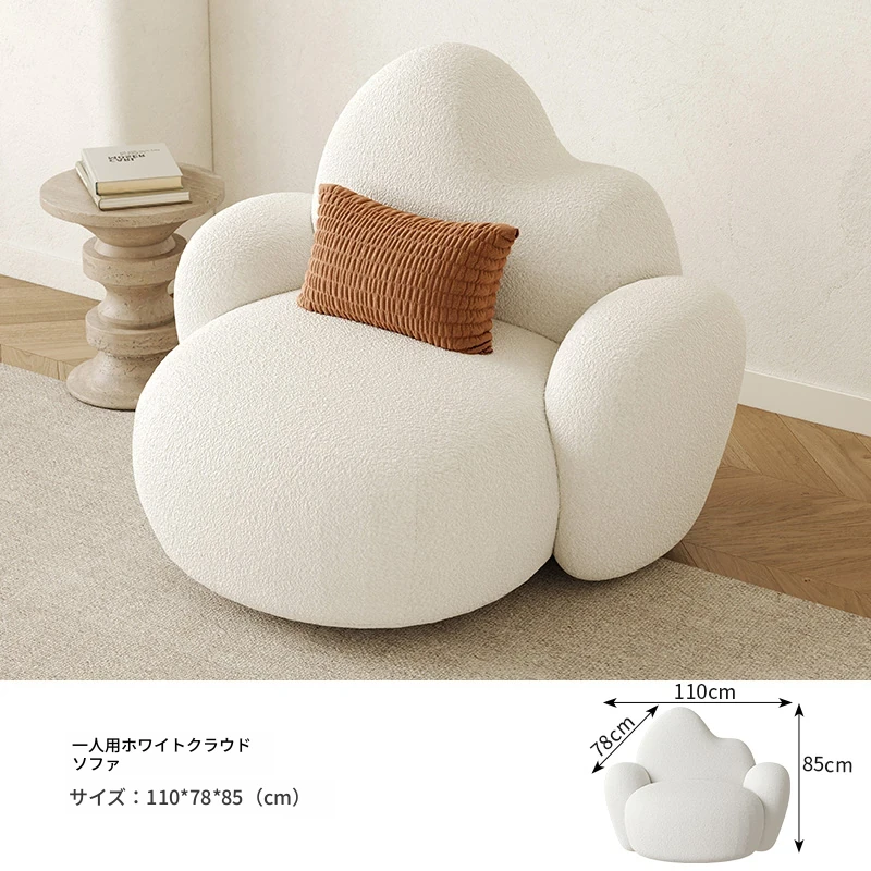 ミルクホワイト:一人用ホワイトクラウドソファ【110*78*85】 ラムフリース