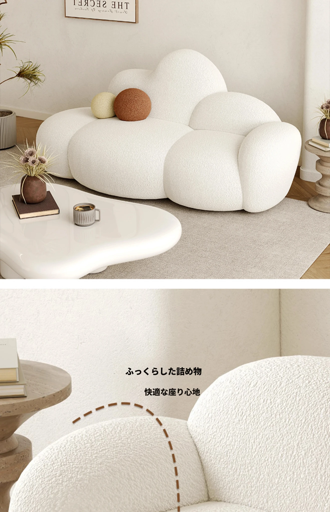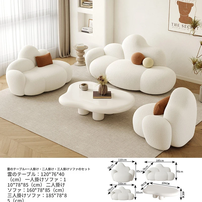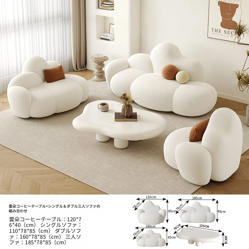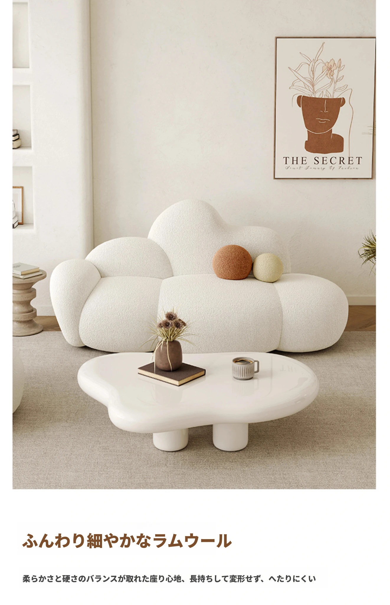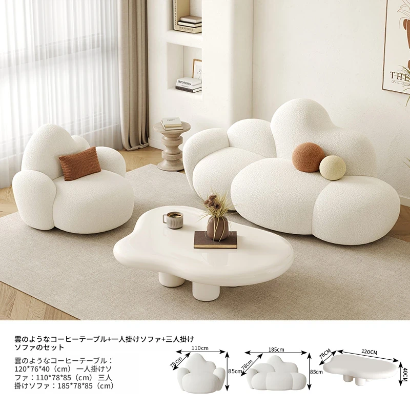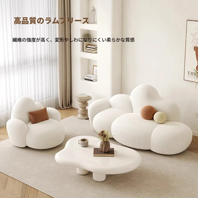 雲朵テーブル+一人用+三人用ソファの組み合わせ デフォルトミルクホワイトのラムフリース