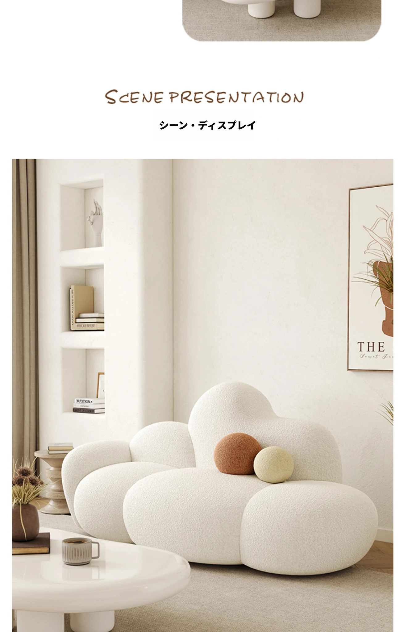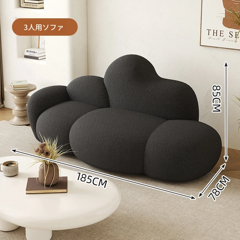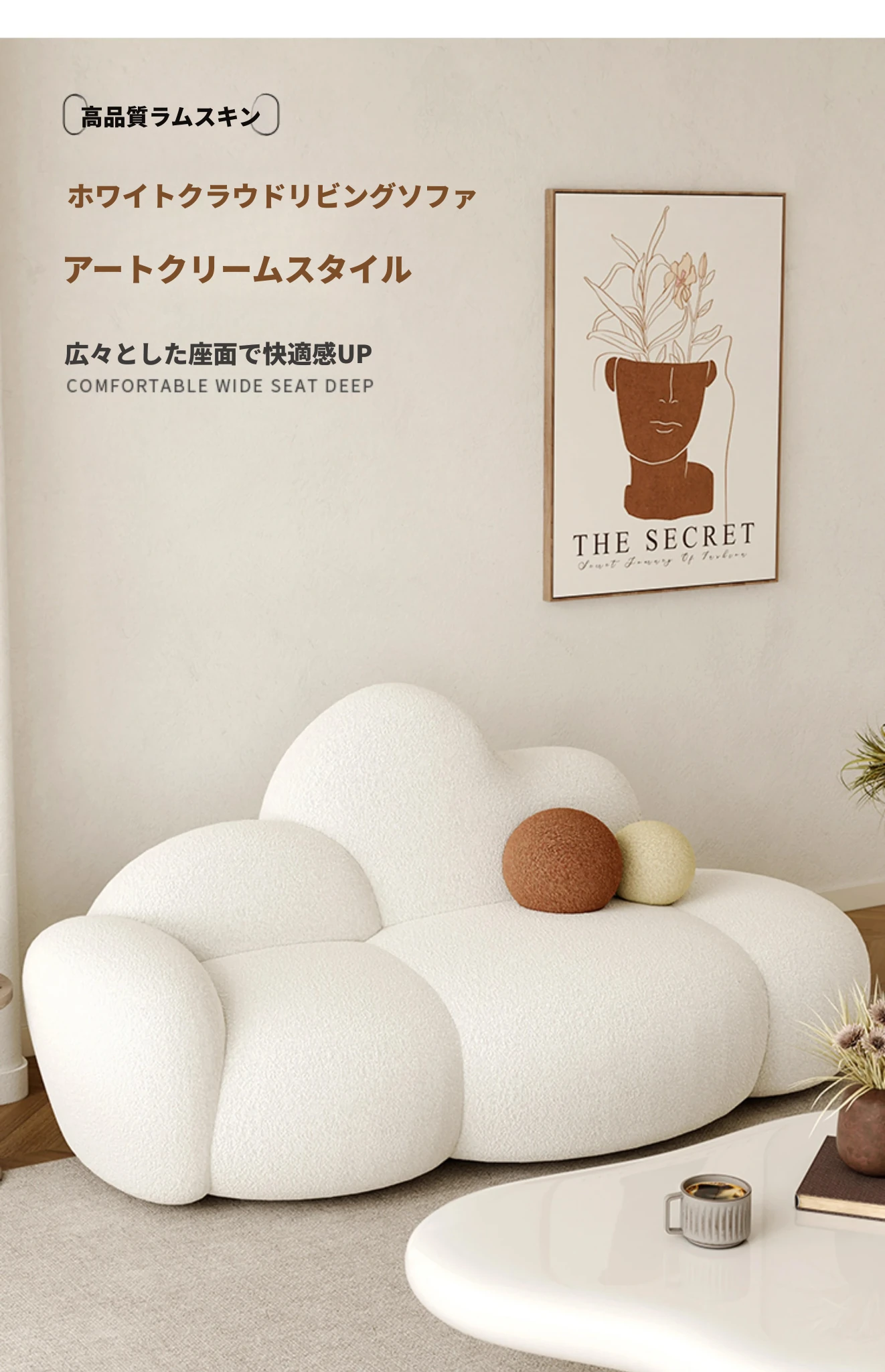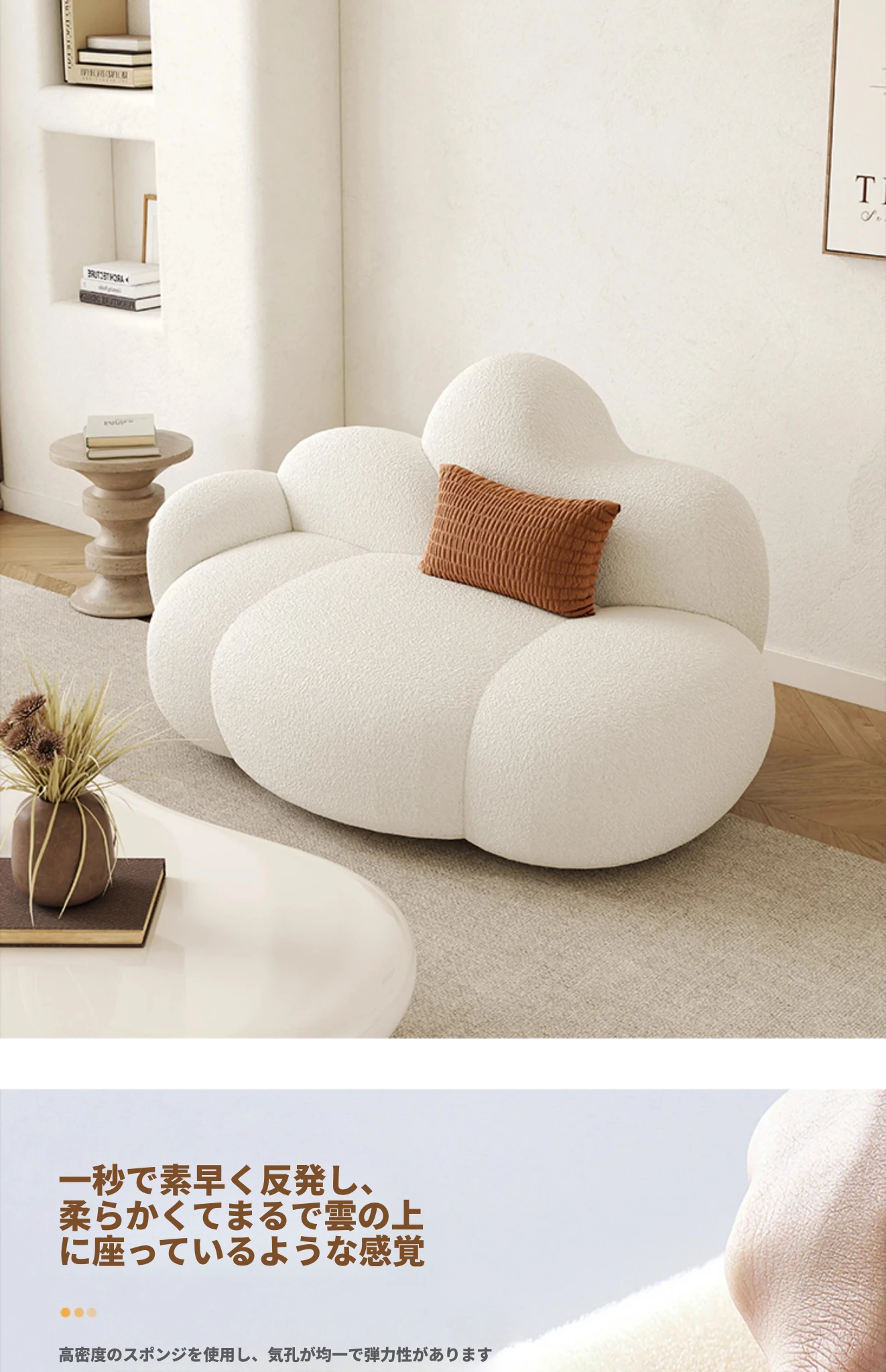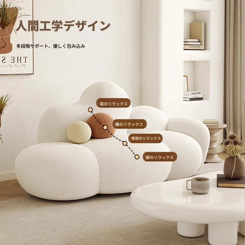 雲朵テーブル+一人用+三人用ソファの組み合わせ デフォルトミルクホワイトのラムフリース