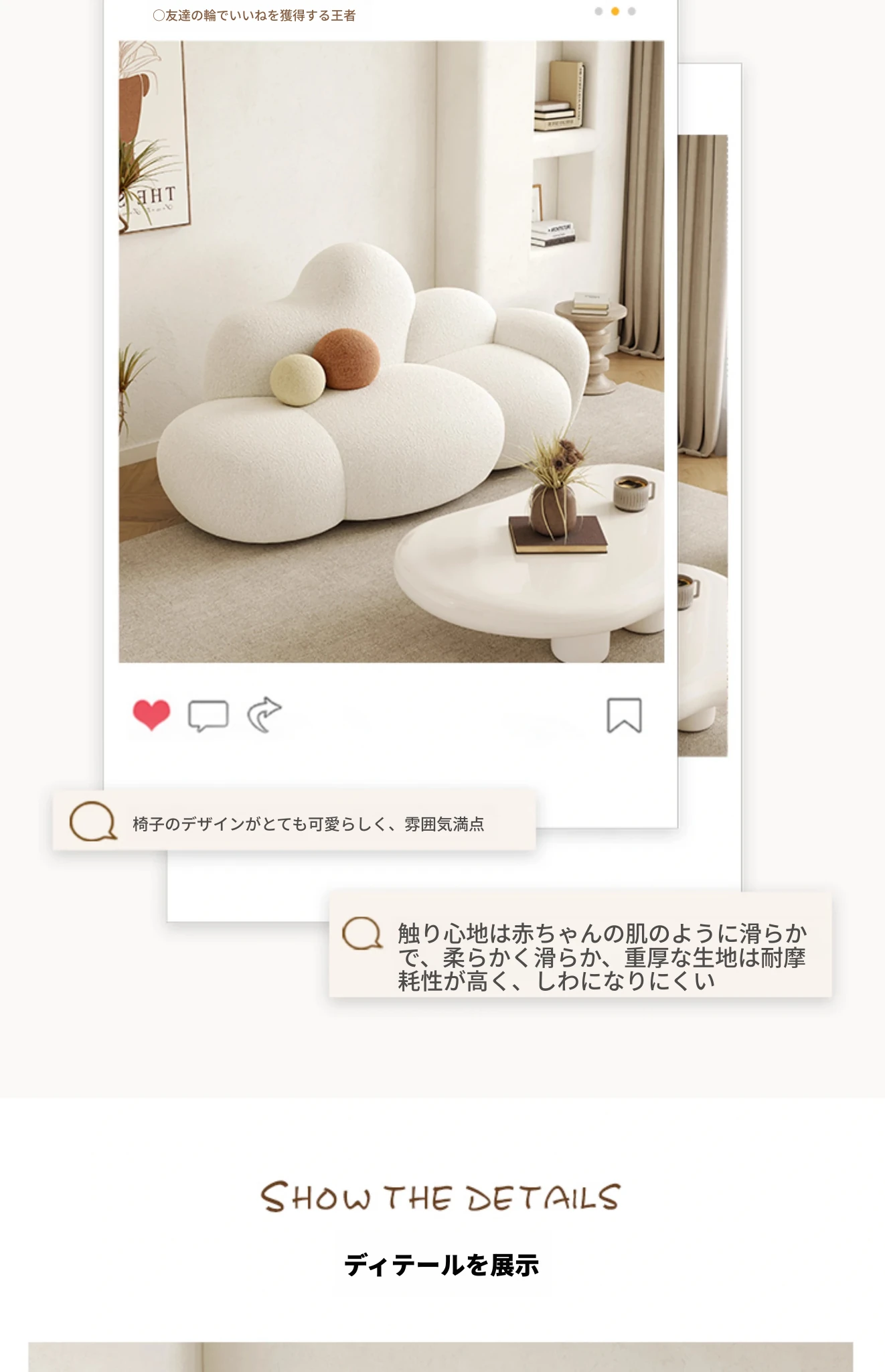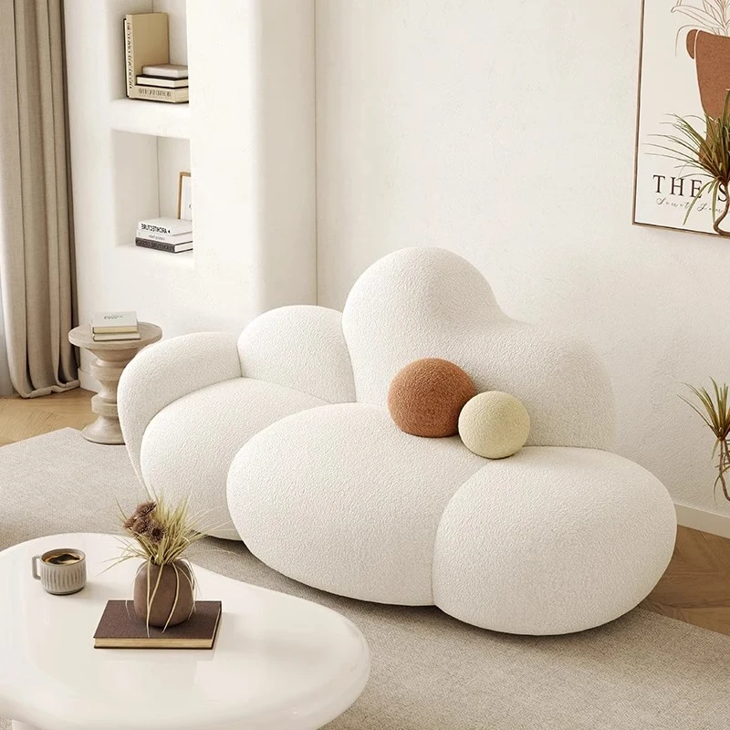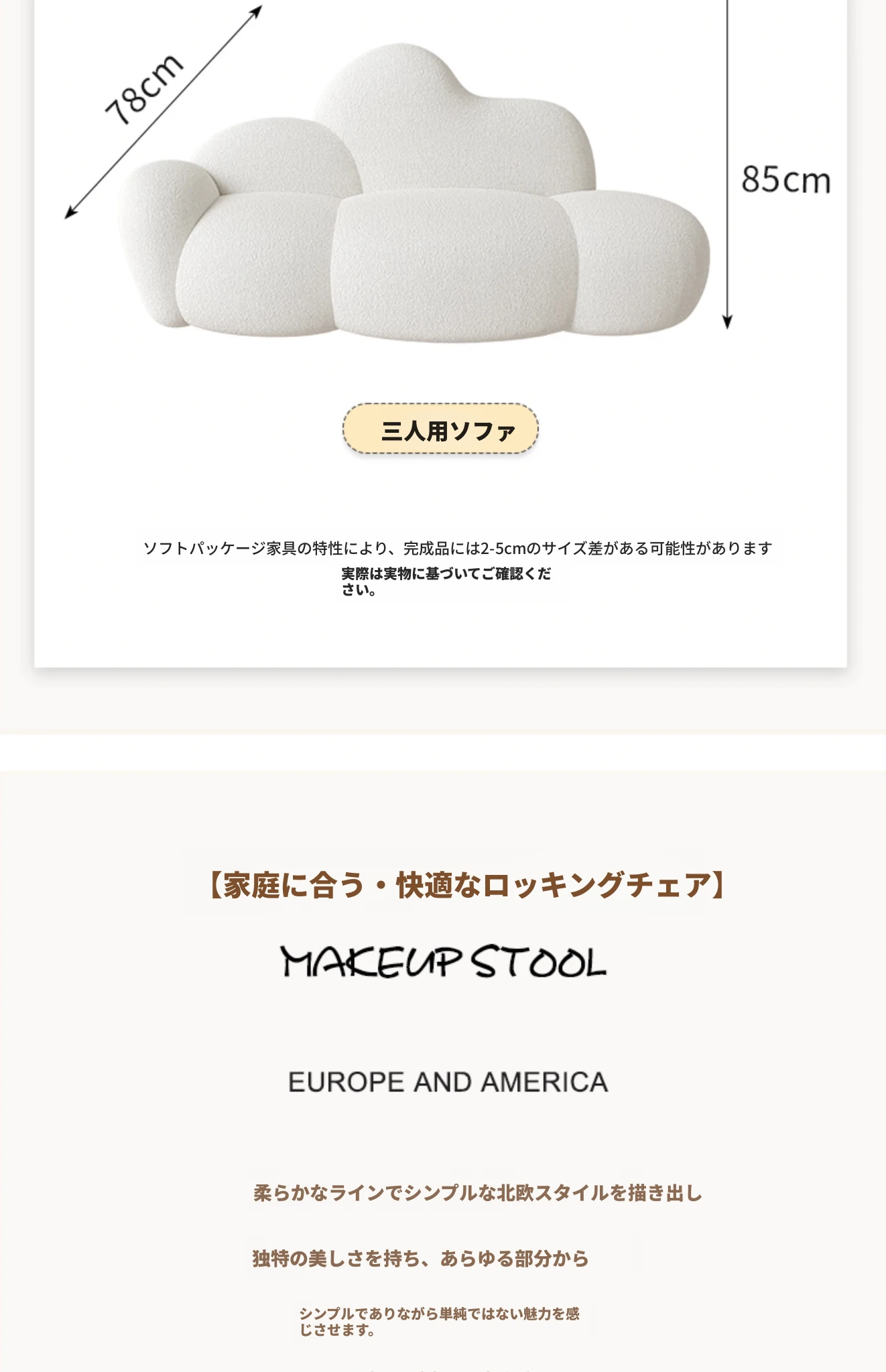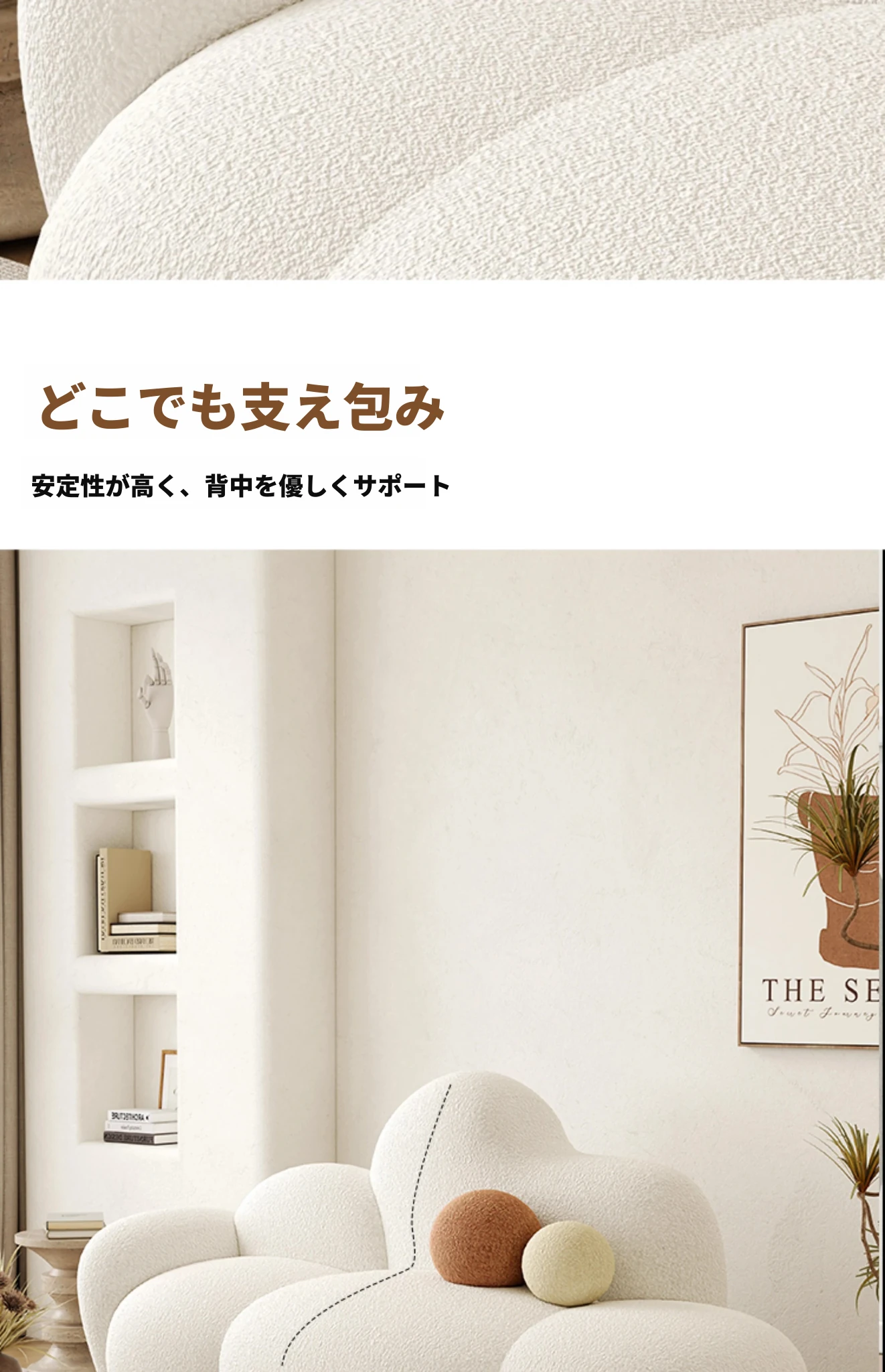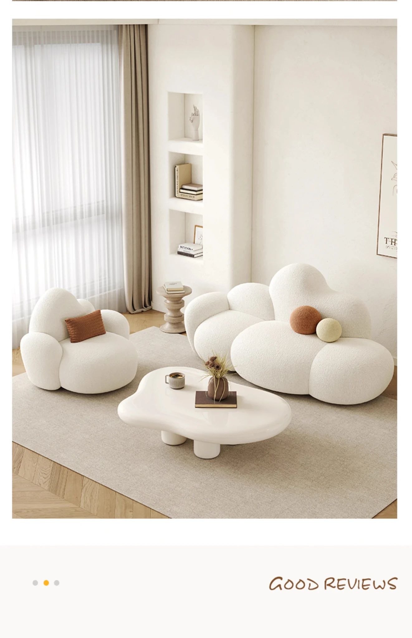 雲朵テーブル+一人用+三人用ソファの組み合わせ デフォルトミルクホワイトのラムフリース