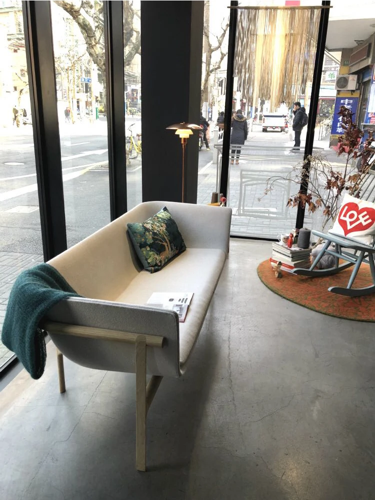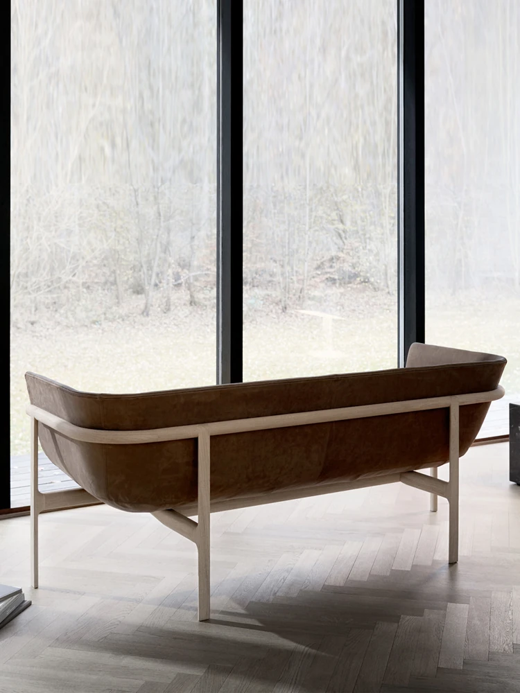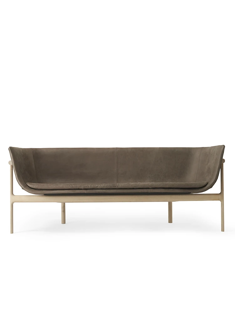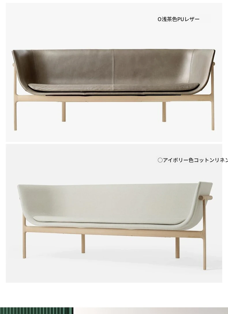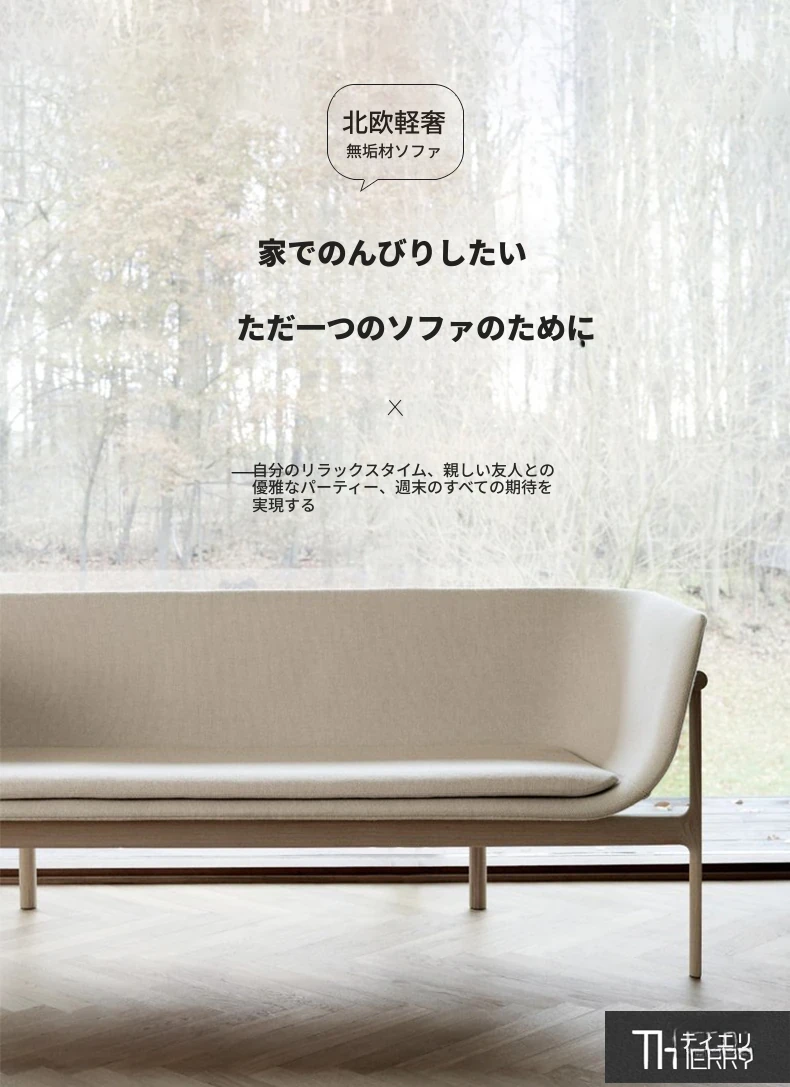 デザイナーの北欧スタイル無垢材ソファ - 小型リビングに最適!オーク材とテクノファブリックを使用したシンプルでモダンなデザイン。西洋料理のレストランにもぴったりなカジュアルなカウンター席!