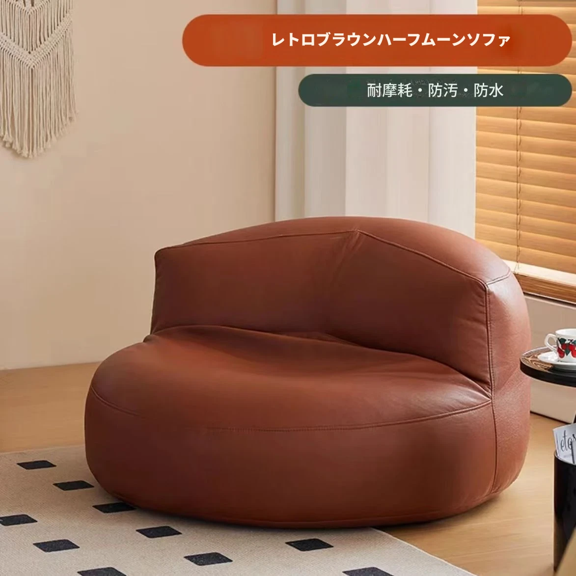 ブラウン【環境に優しい耐摩耗・洗浄不要/三防テクノロジー生地】ハーフムーンソファを一つ快適にお持ち帰り