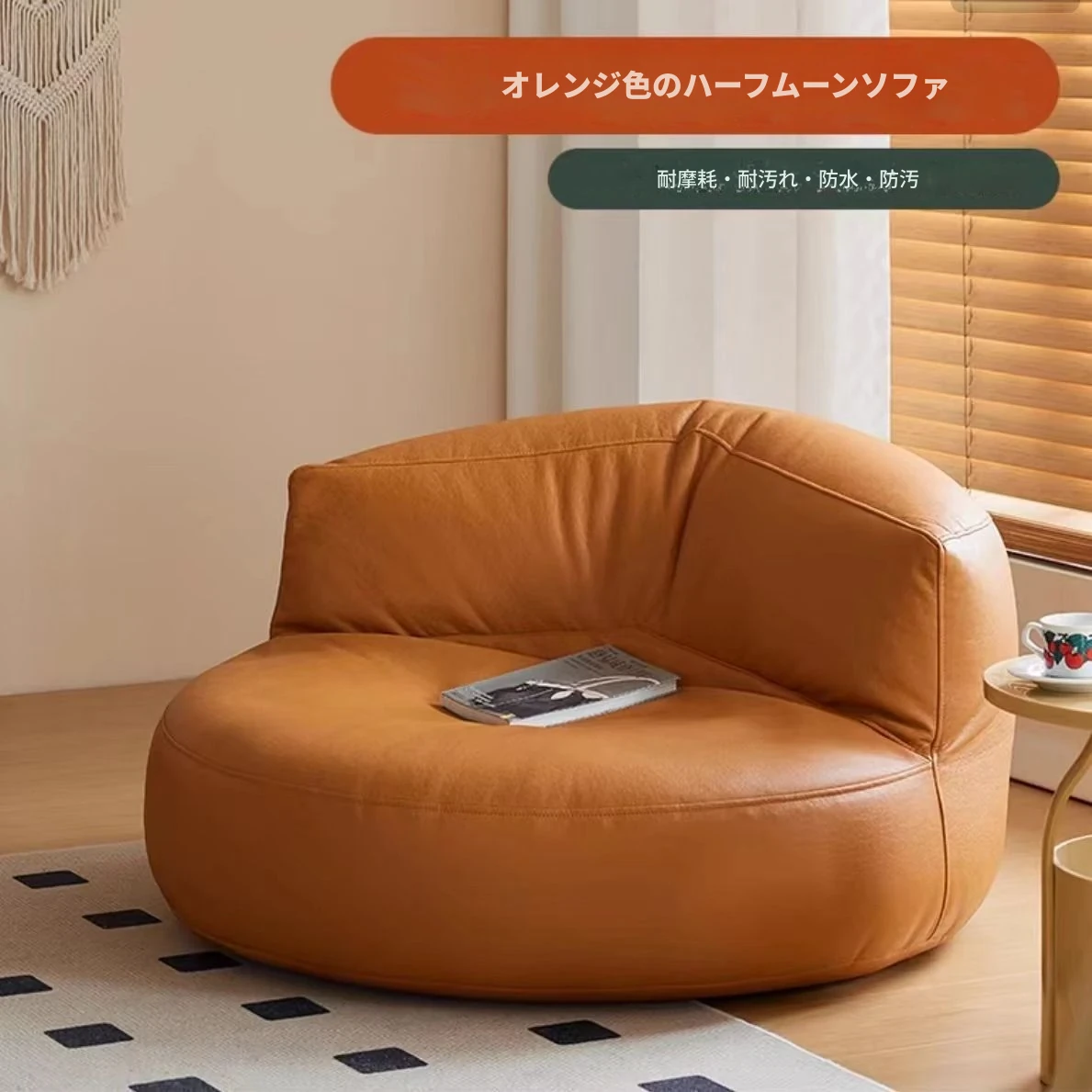 オレンジ色【環境に優しい耐摩耗・洗浄不要/三防テクノロジー生地】ハーフムーンソファを一つ快適にお持ち帰り