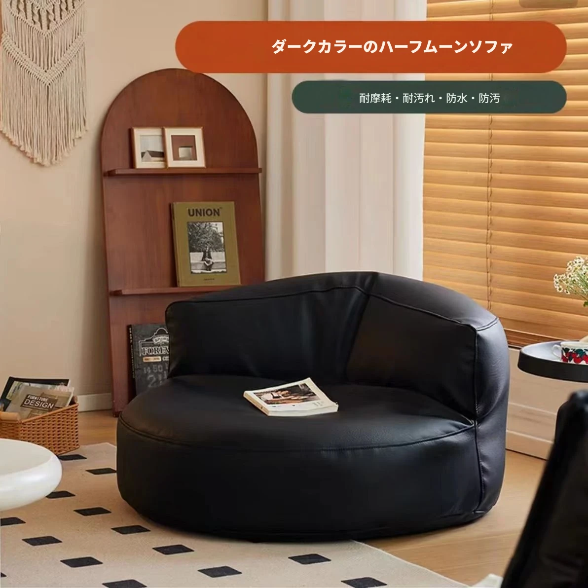 黒色【環境に優しい耐摩耗・洗浄不要/三防テクノロジー生地】ハーフムーンソファを一つ快適にお持ち帰り