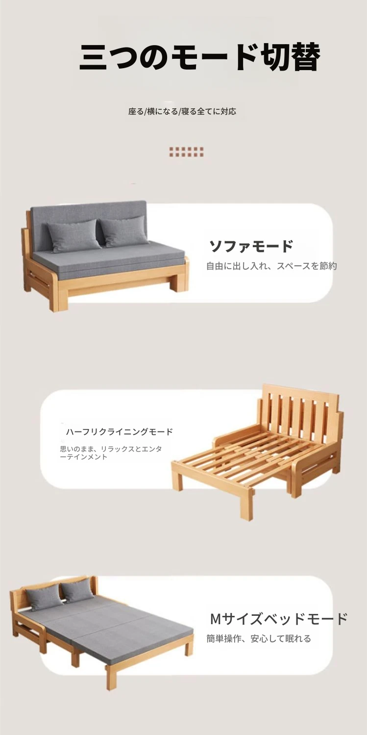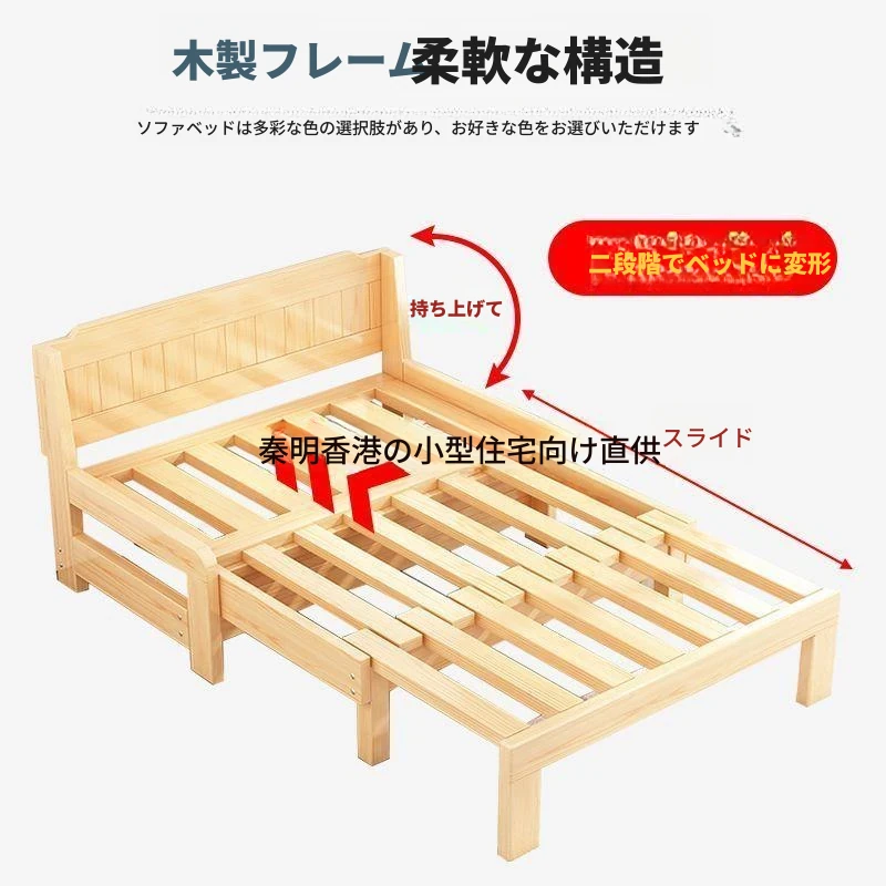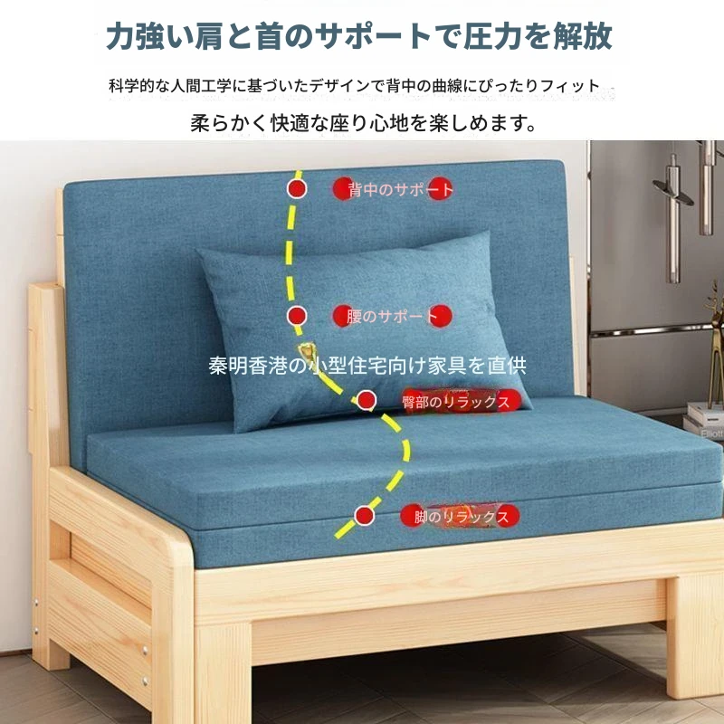 香港・マカオ直送!実木製折りたたみソファベッド - スペースを有効活用する多機能デザインのコンパクトソファベッド。おしゃれで快適、あなたの小さな空間にぴったり!